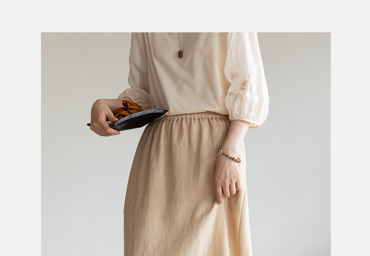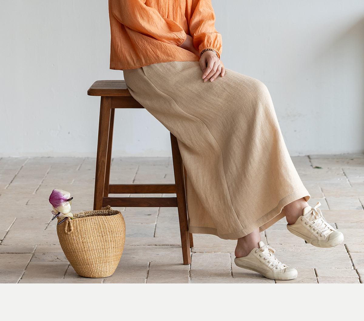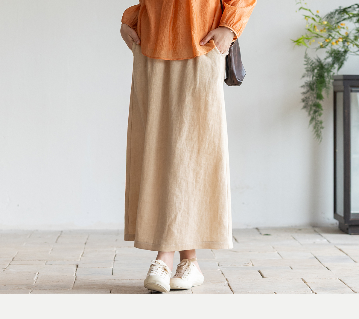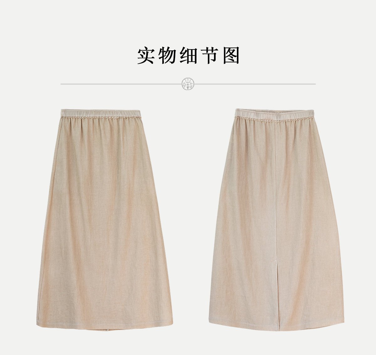 牧衣游原创 炒色棉麻净色半裙松紧腰百搭宽松休闲直筒半身裙 流芳