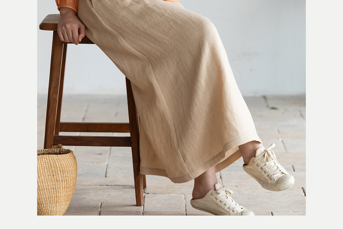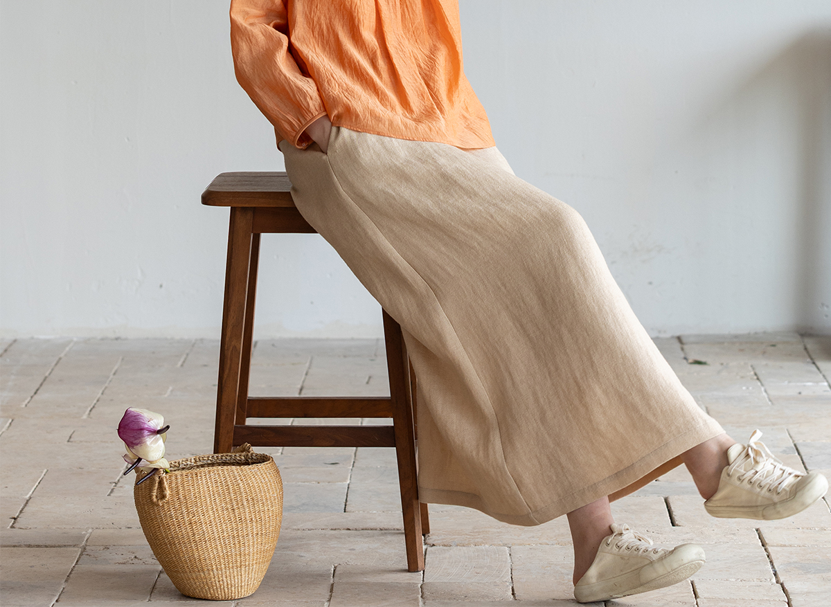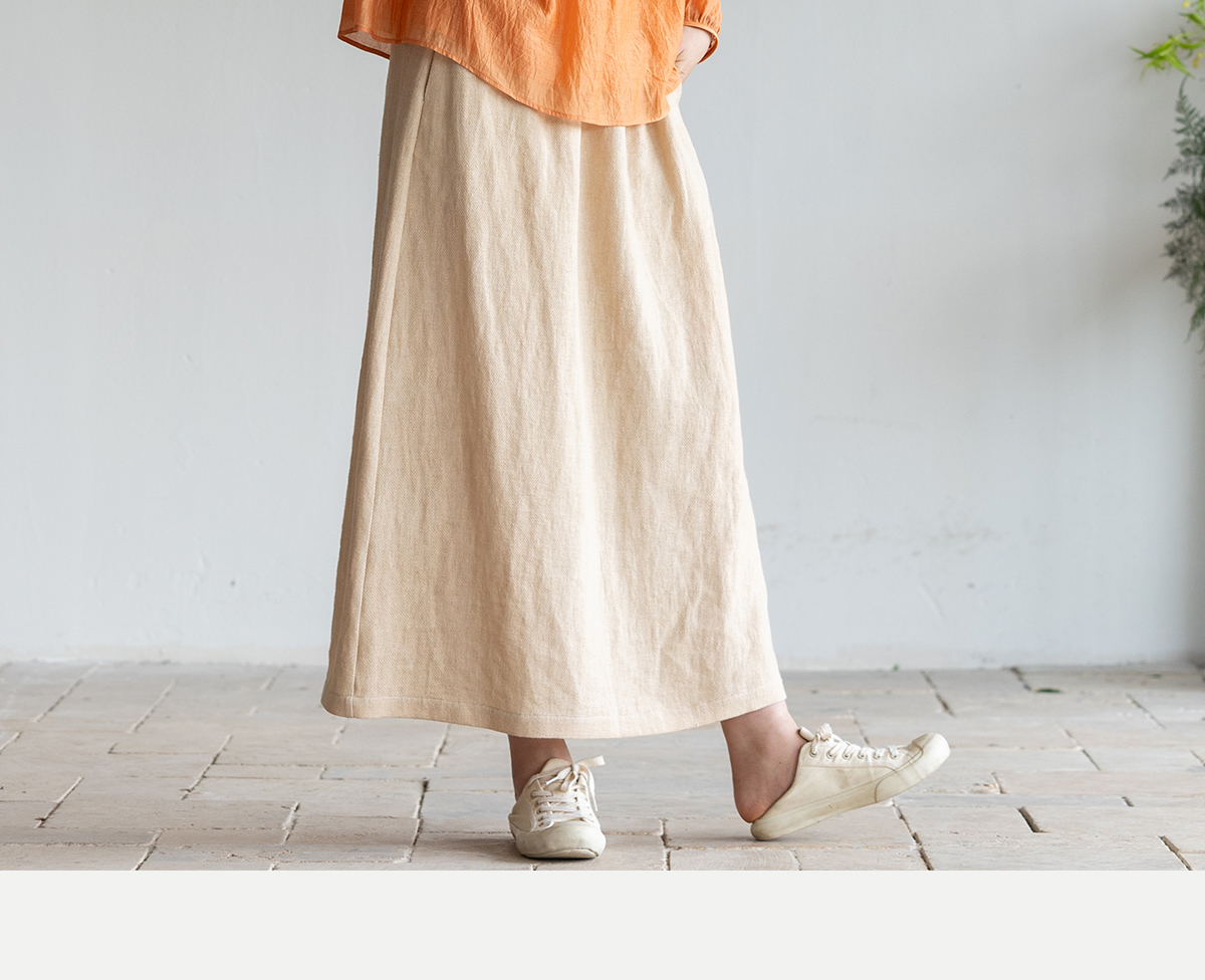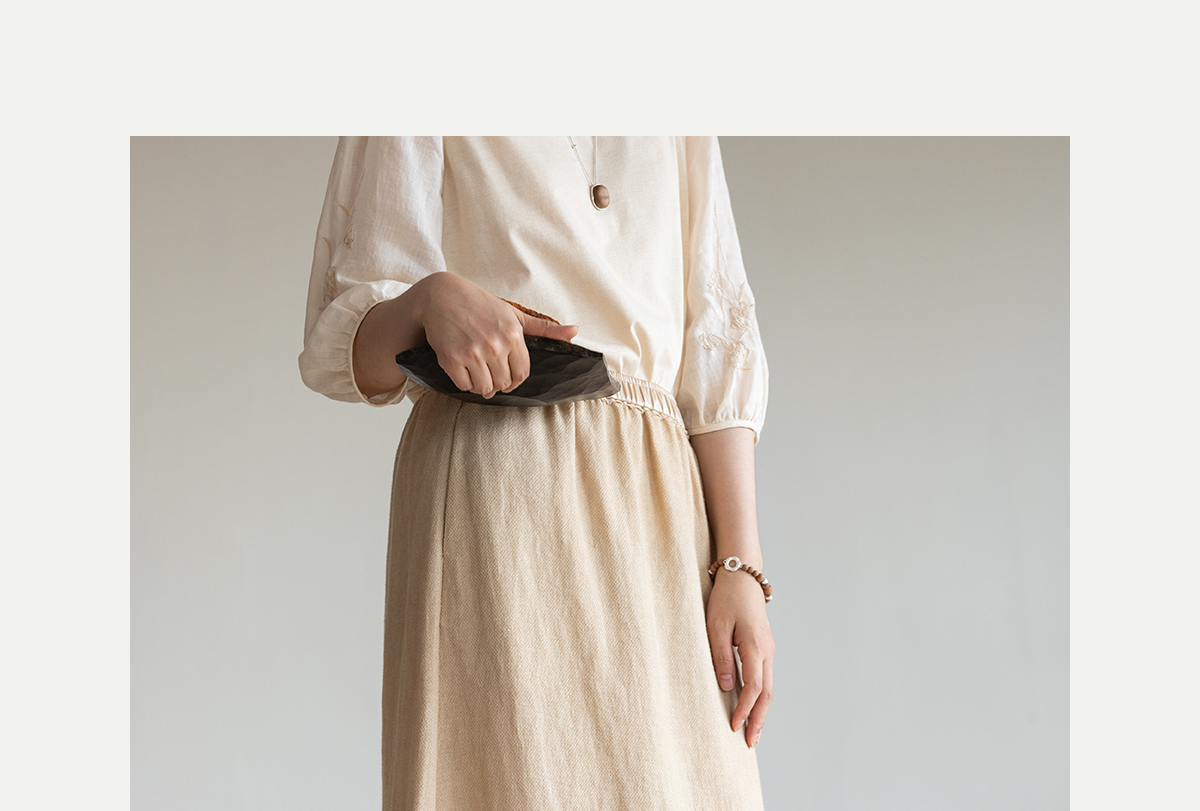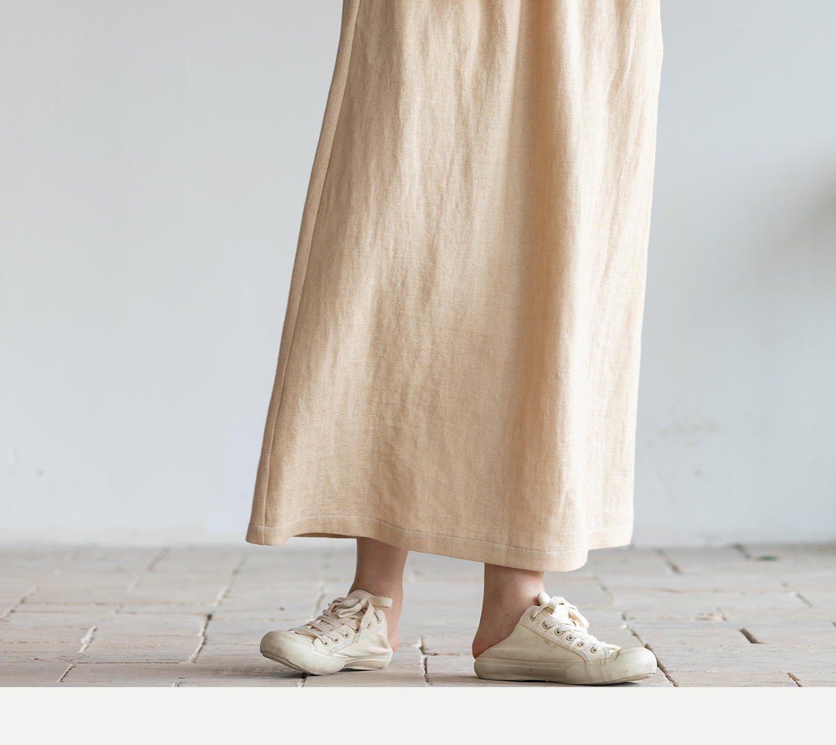 牧衣游原创 炒色棉麻净色半裙松紧腰百搭宽松休闲直筒半身裙 流芳