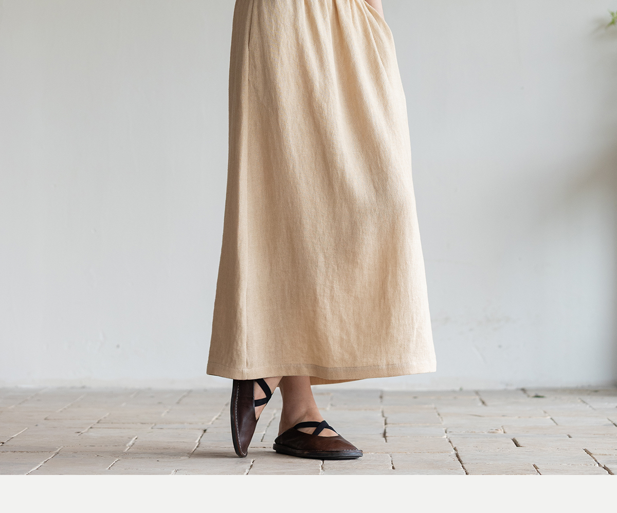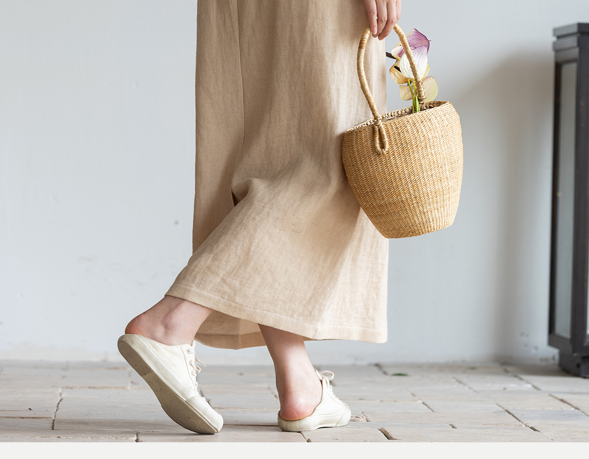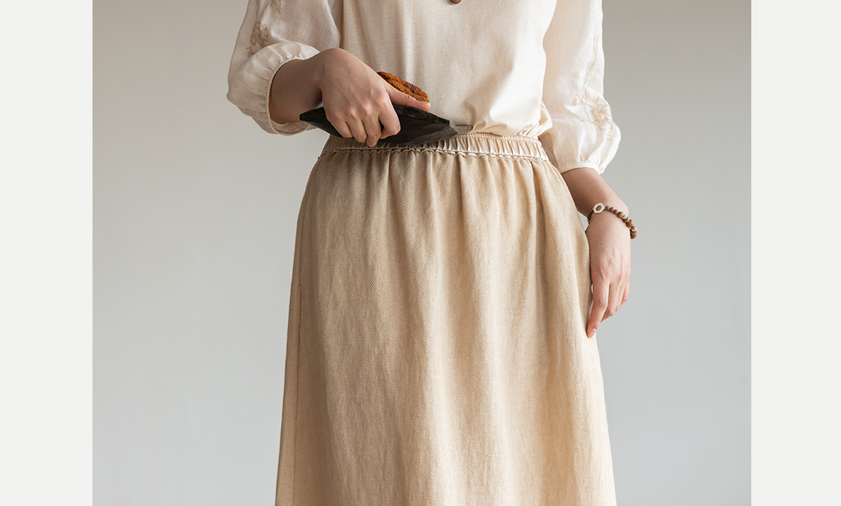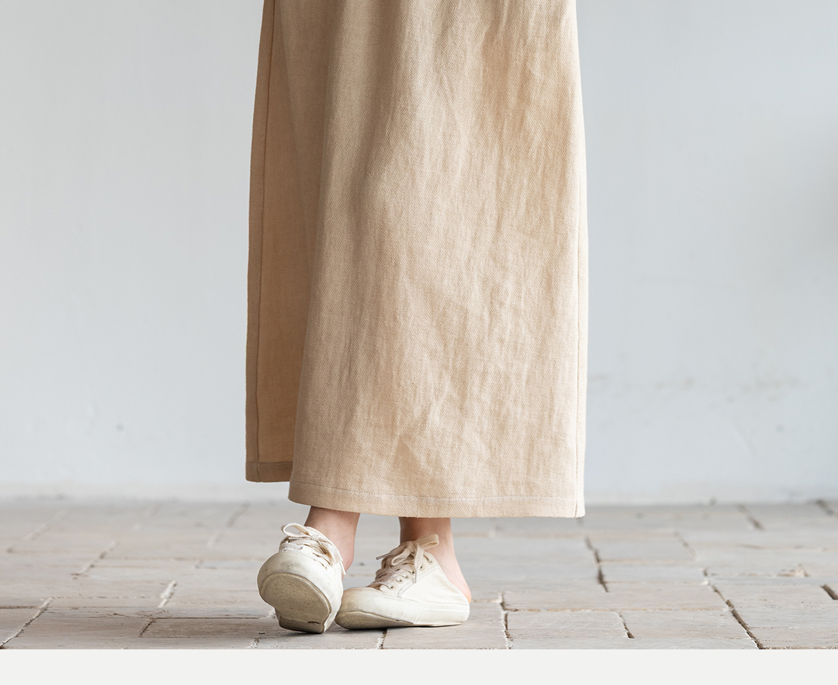 牧衣游原创 炒色棉麻净色半裙松紧腰百搭宽松休闲直筒半身裙 流芳