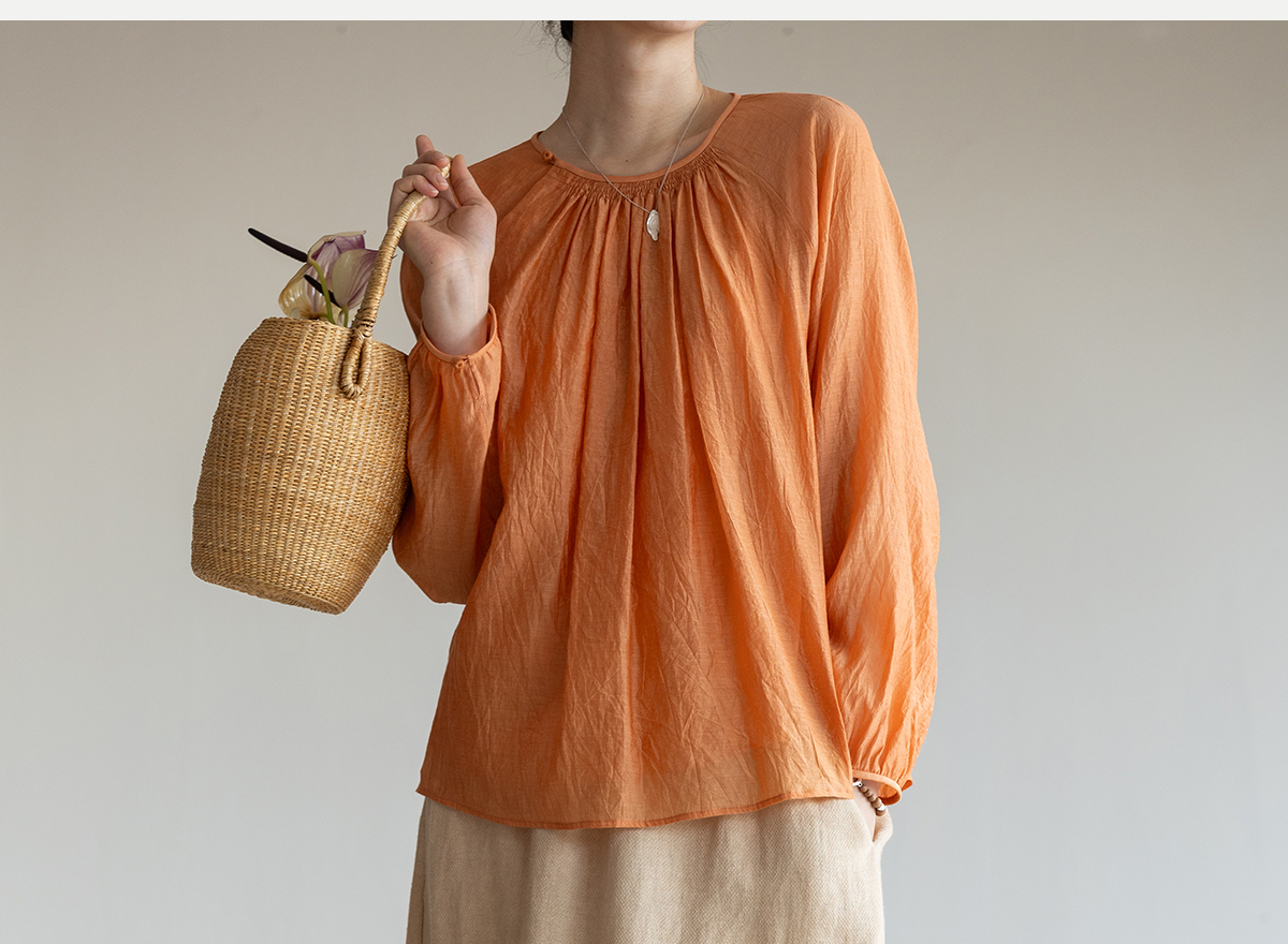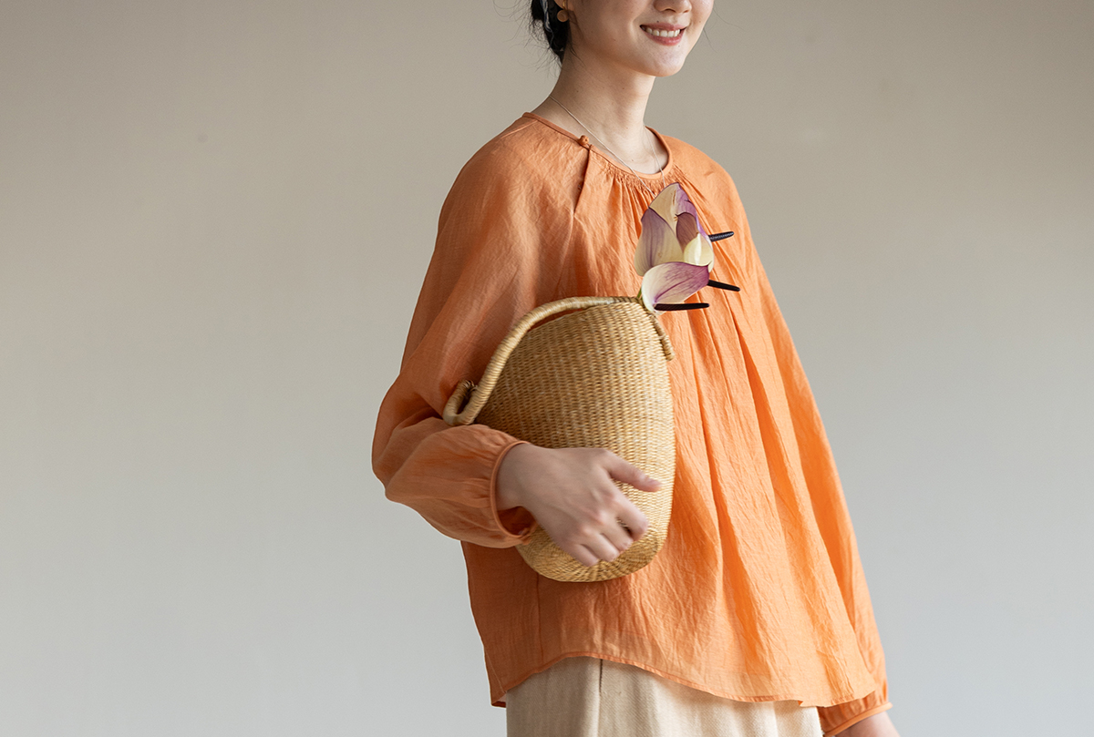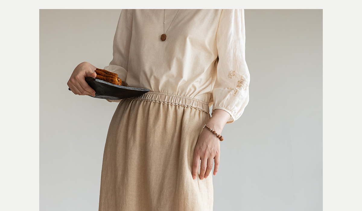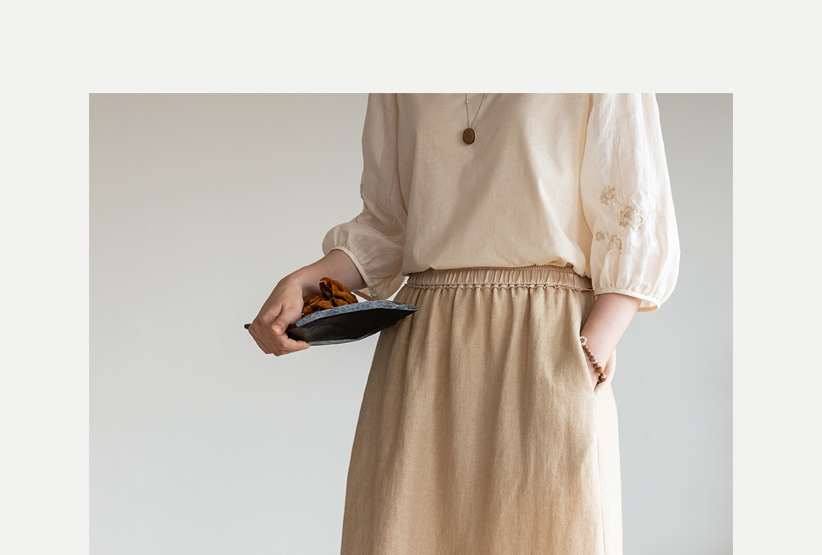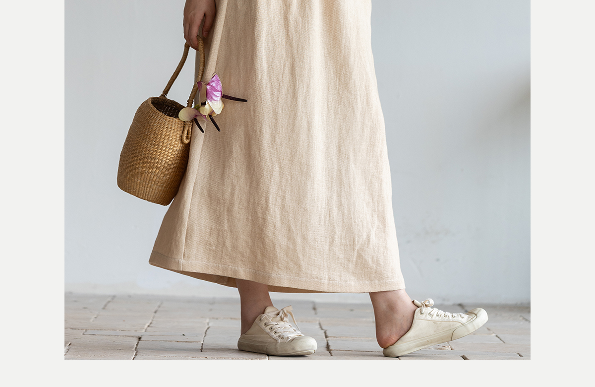 牧衣游原创 炒色棉麻净色半裙松紧腰百搭宽松休闲直筒半身裙 流芳