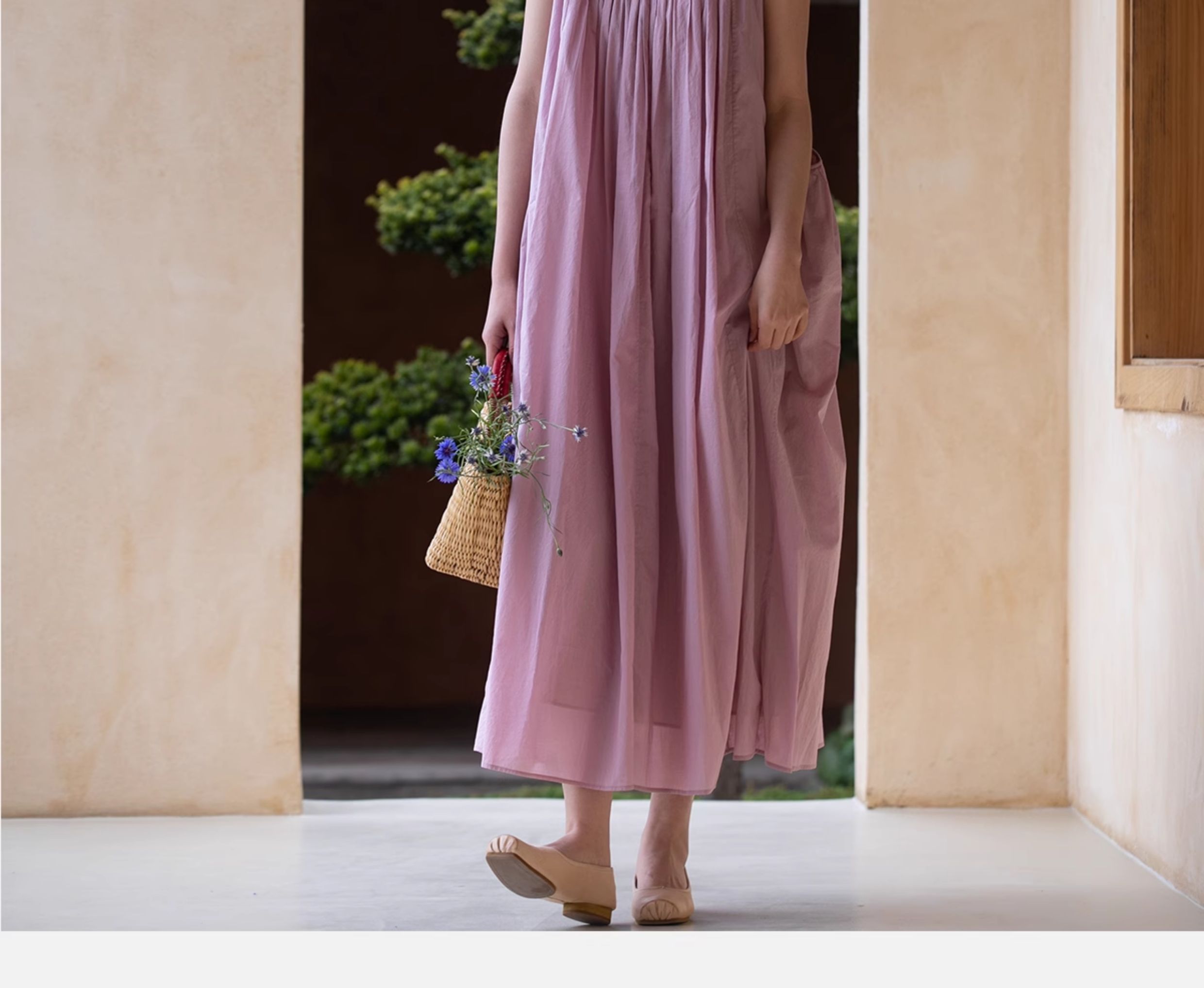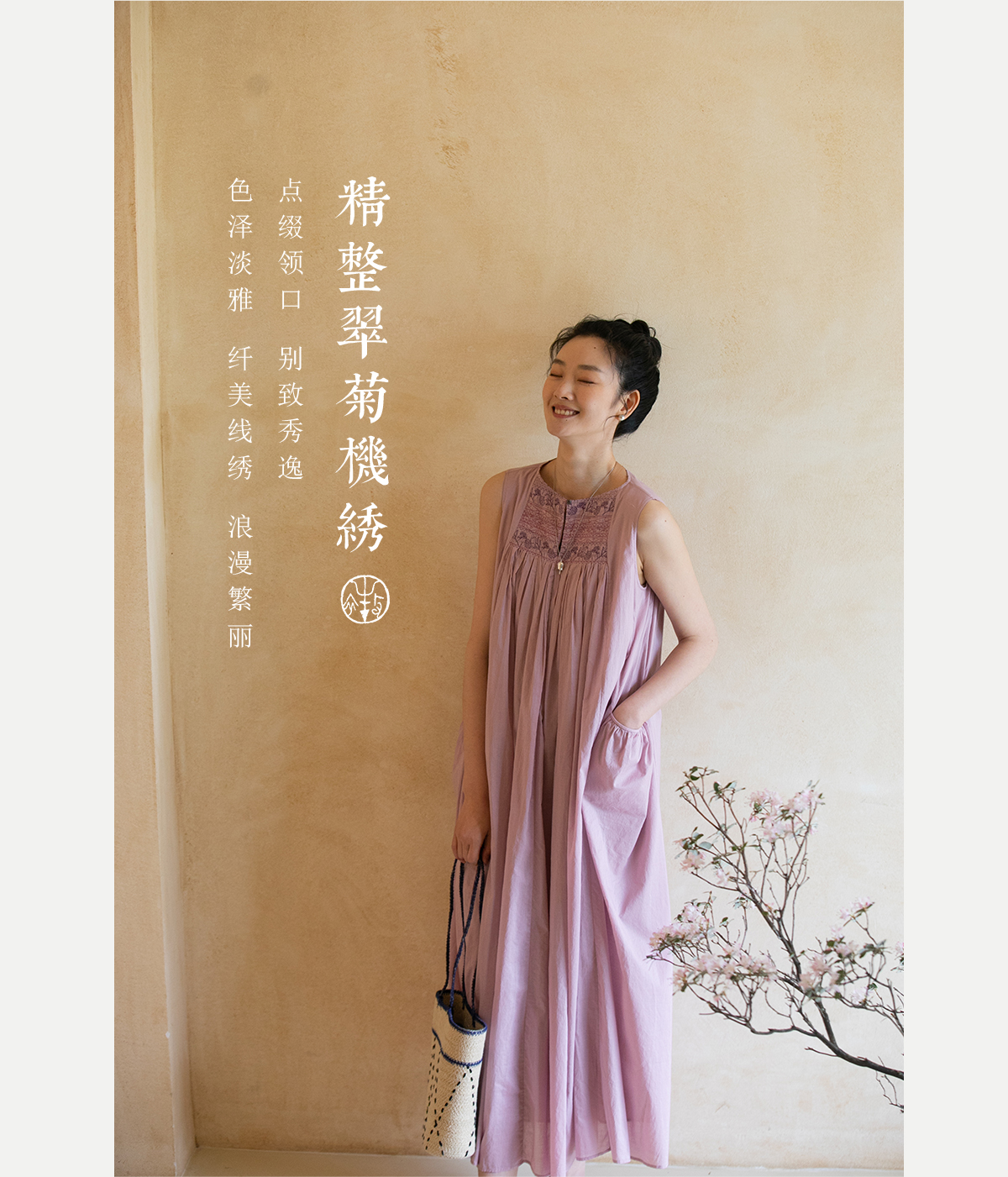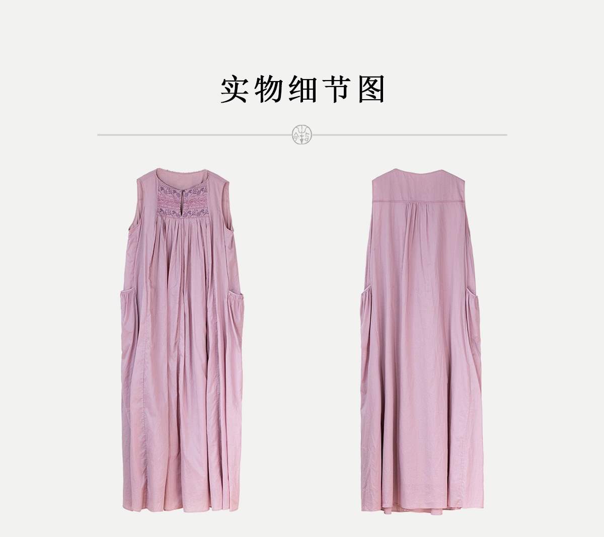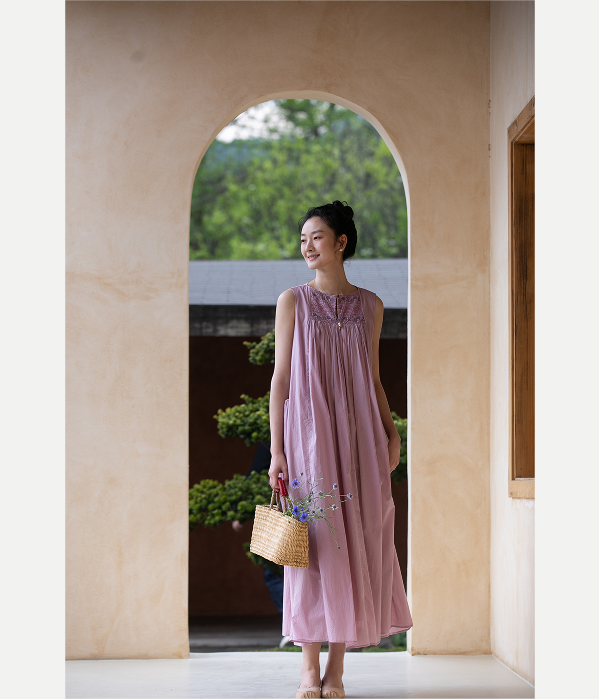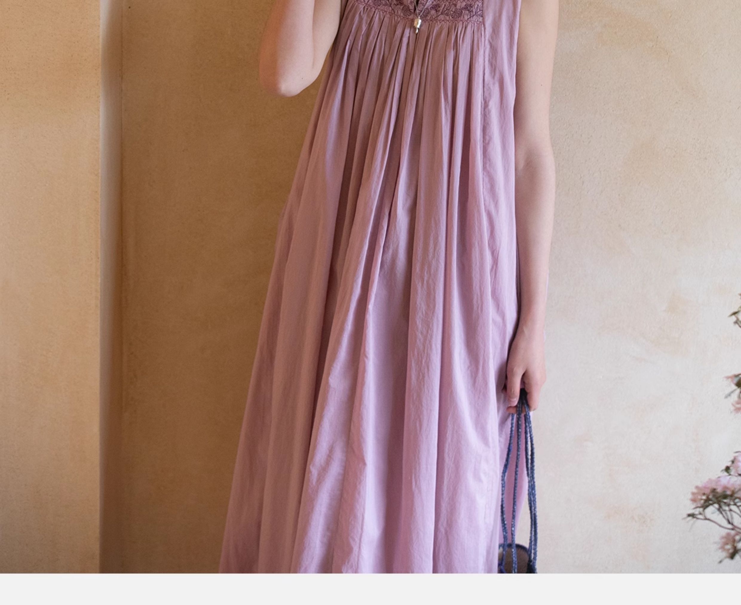 牧衣游原创 机绣80支新疆棉连衣裙夏粉色设计感文艺无袖长裙 诗月