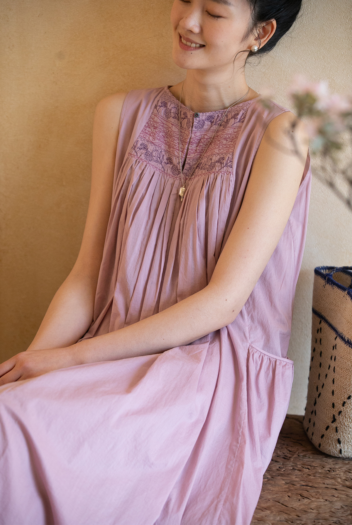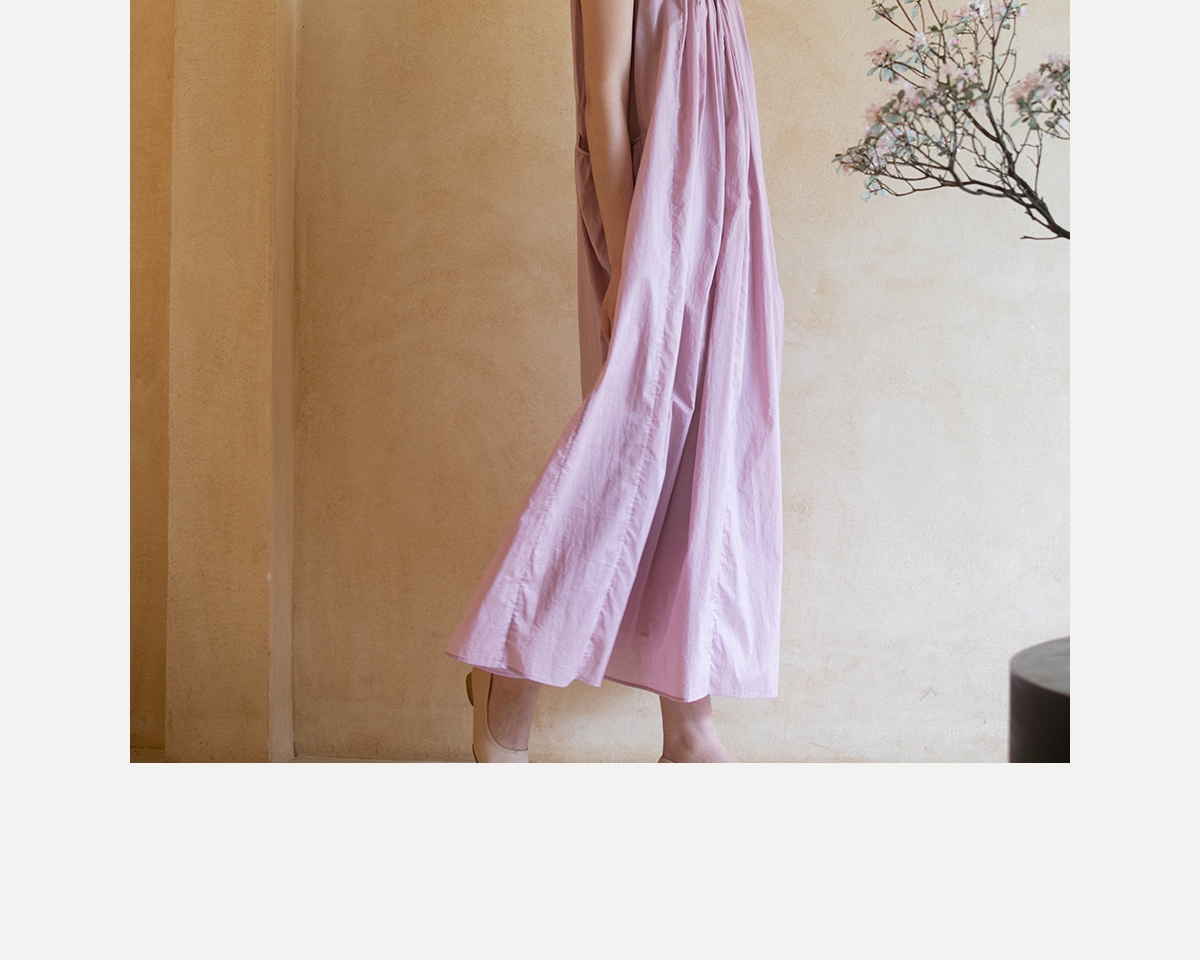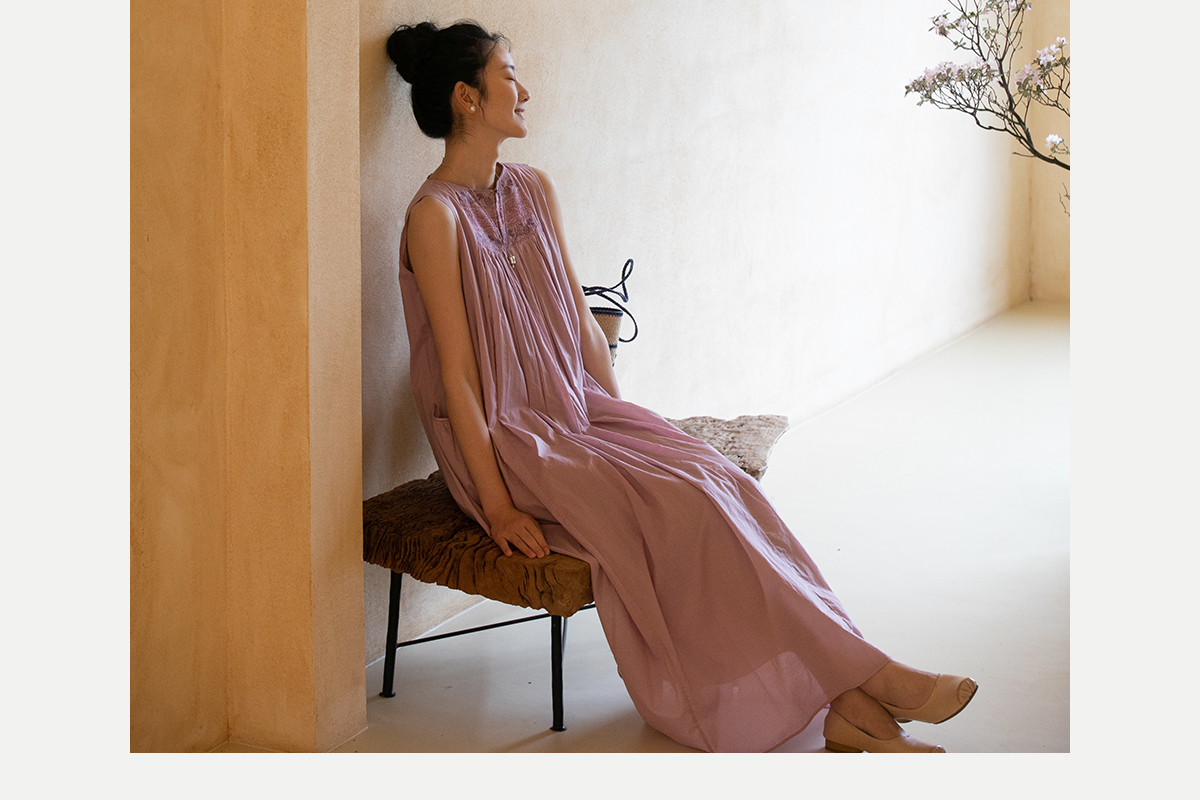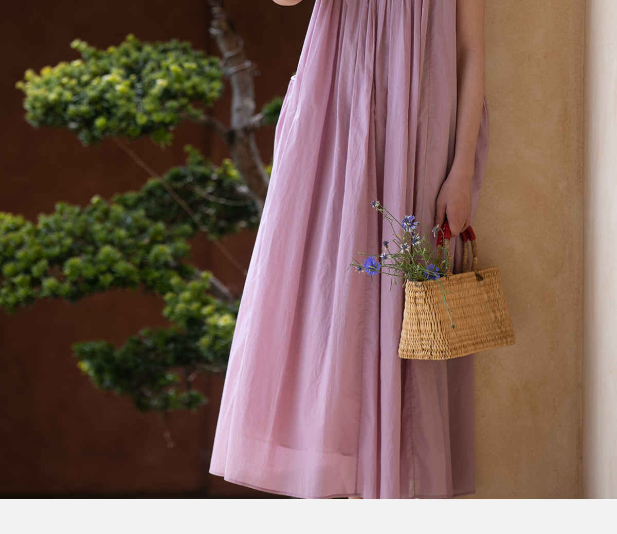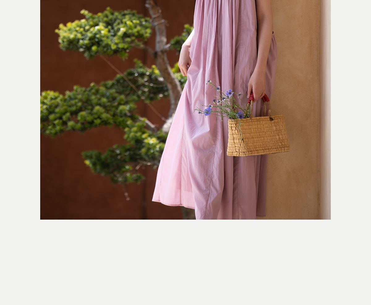 牧衣游原创 机绣80支新疆棉连衣裙夏粉色设计感文艺无袖长裙 诗月
