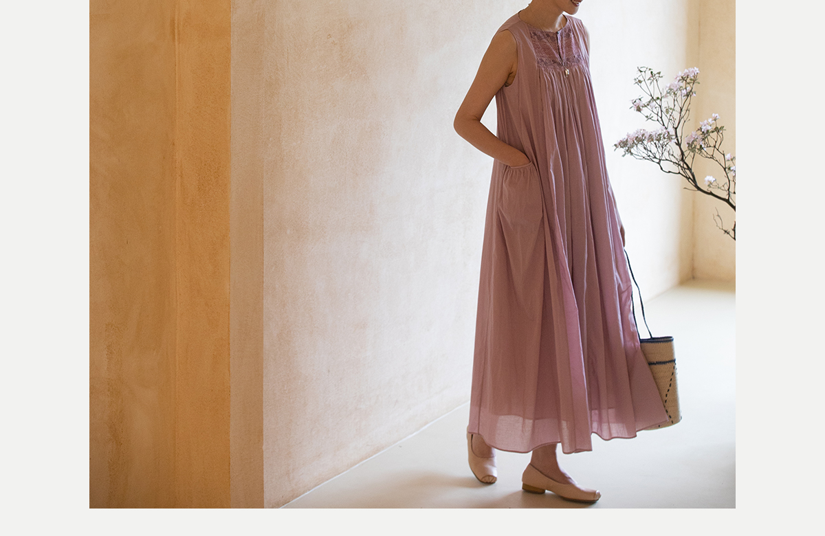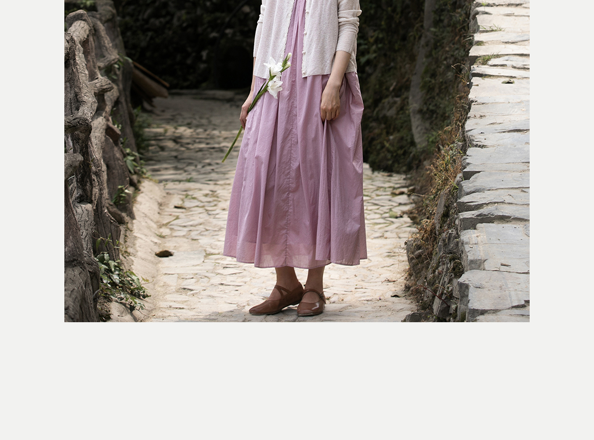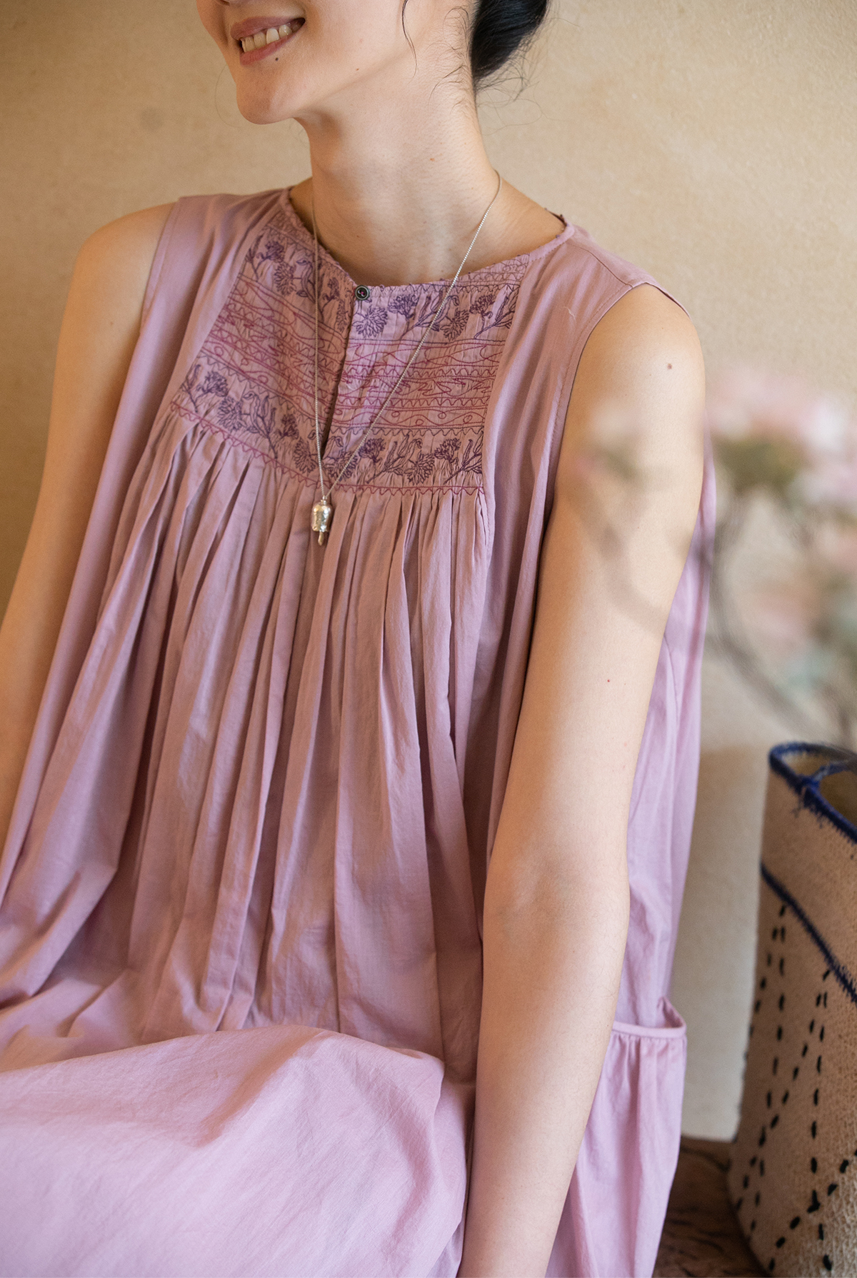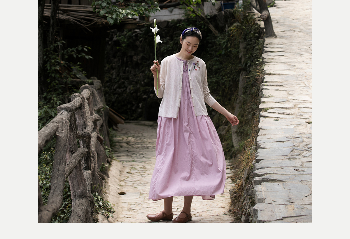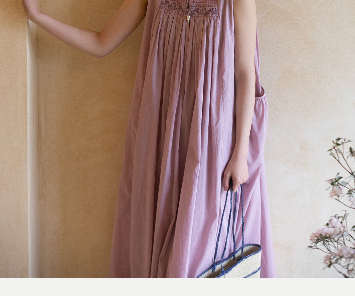 牧衣游原创 机绣80支新疆棉连衣裙夏粉色设计感文艺无袖长裙 诗月