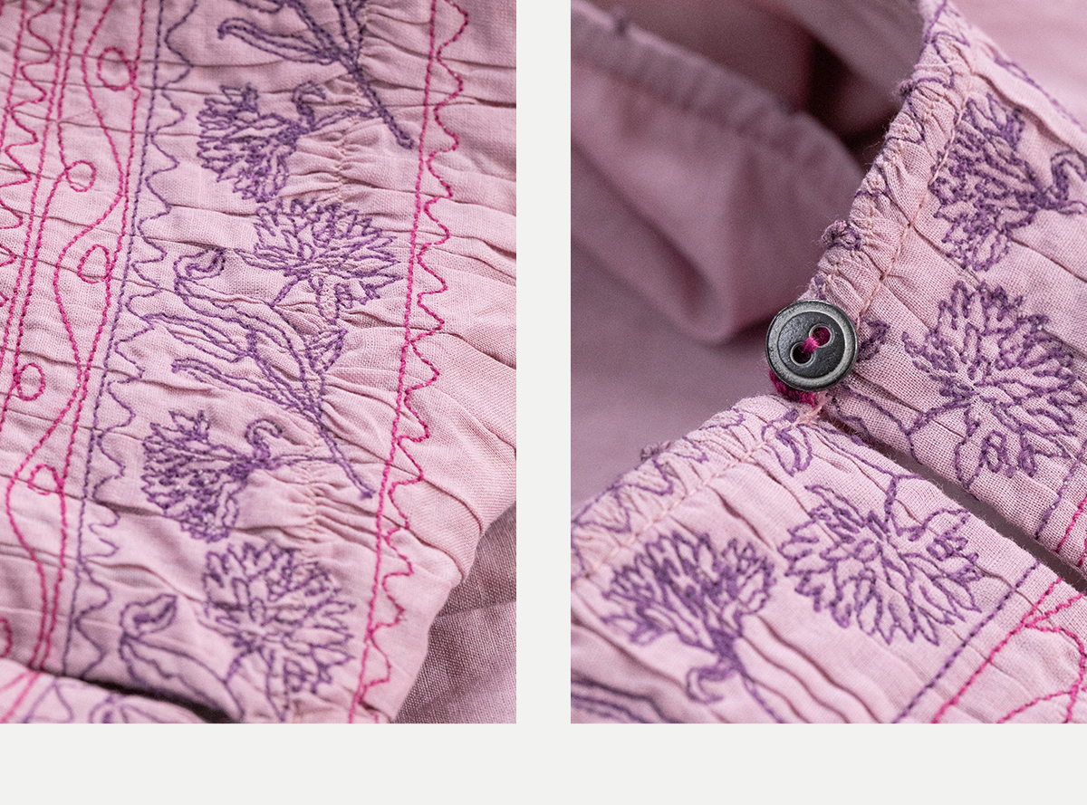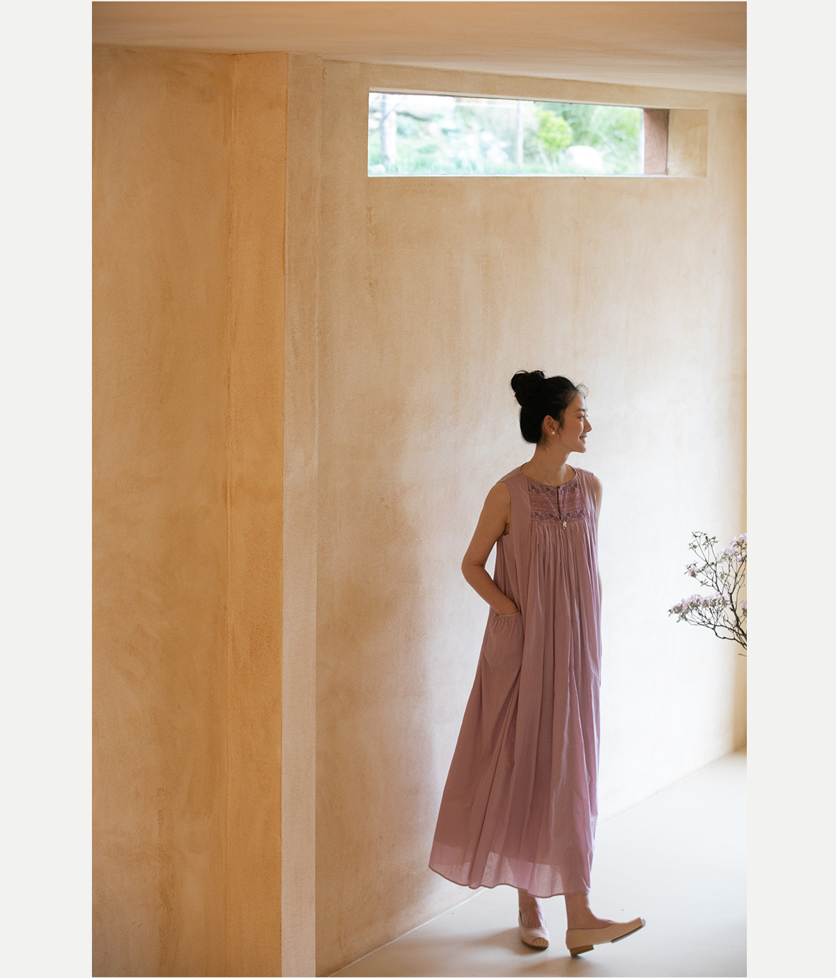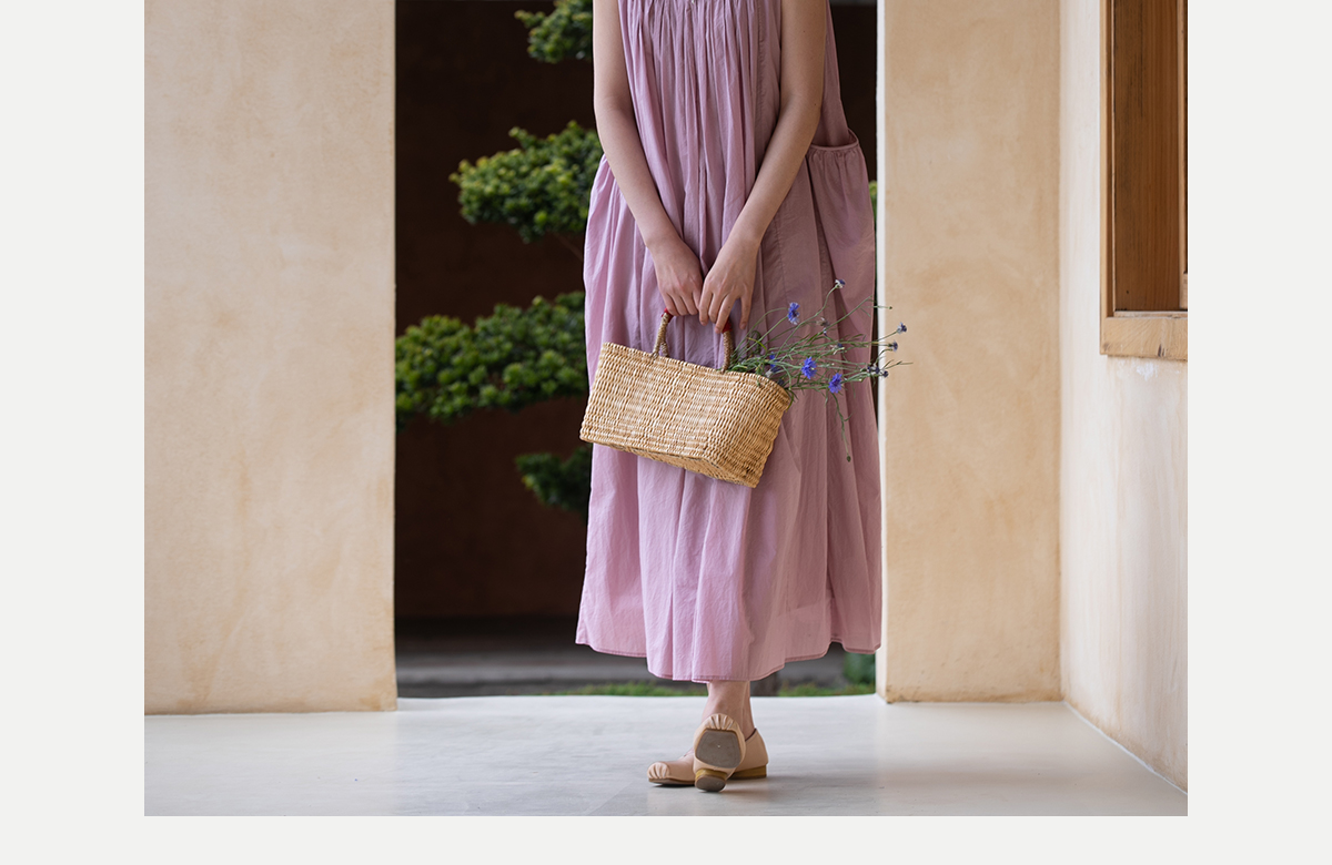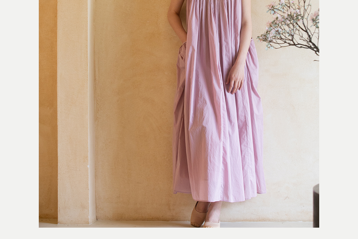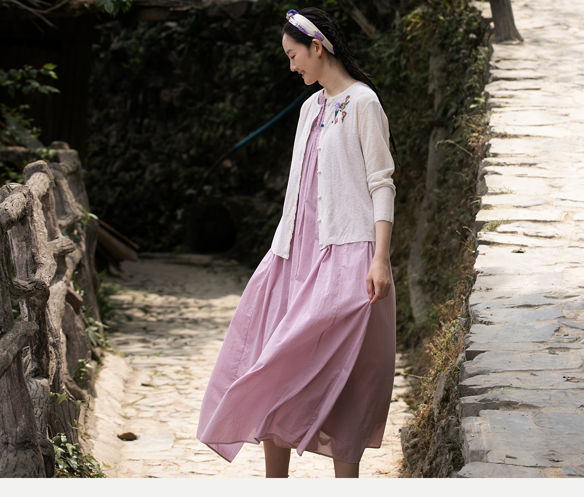牧衣游原创 机绣80支新疆棉连衣裙夏粉色设计感文艺无袖长裙 诗月