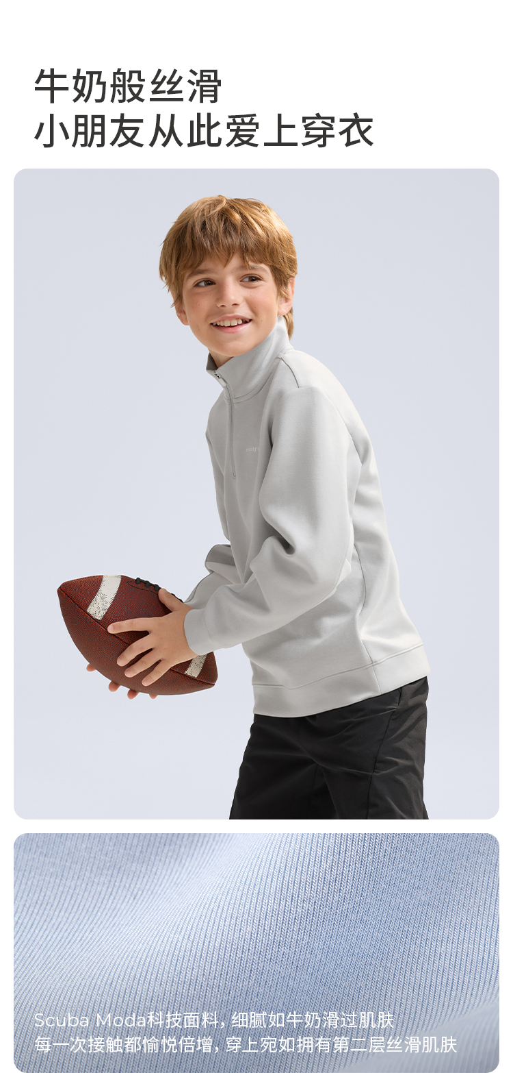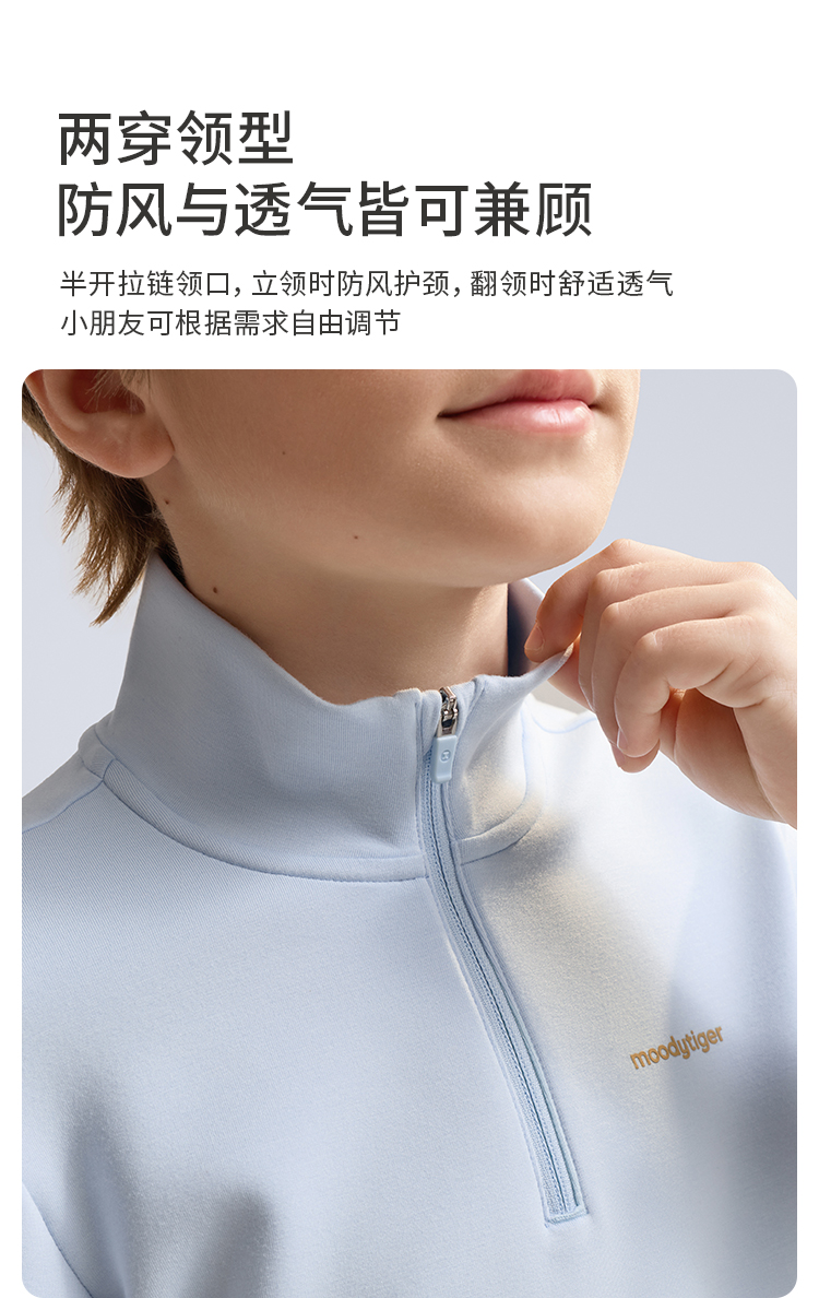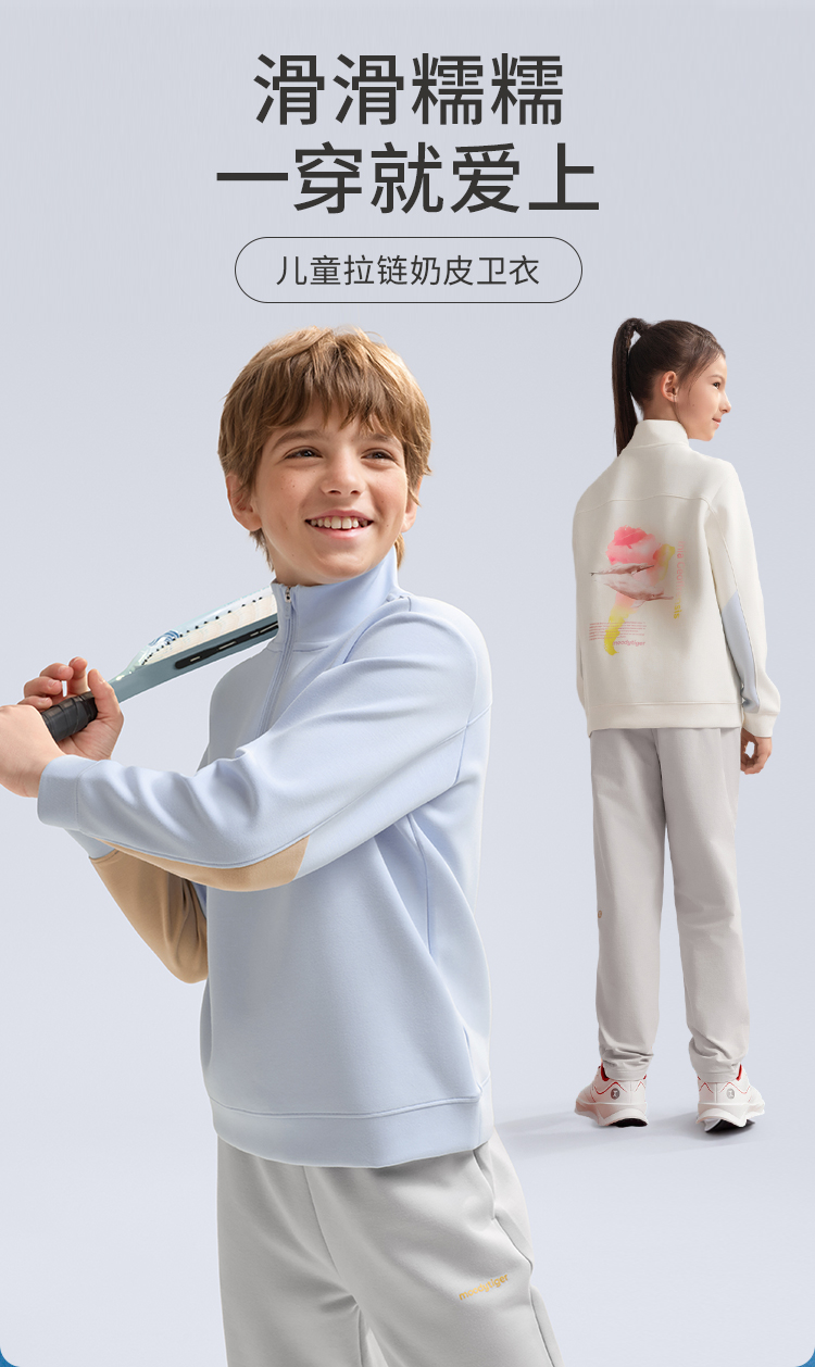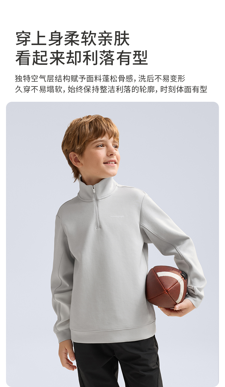 【大J专属】moodytiger儿童领口拉链奶皮卫衣亲肤舒适休闲套头51510305