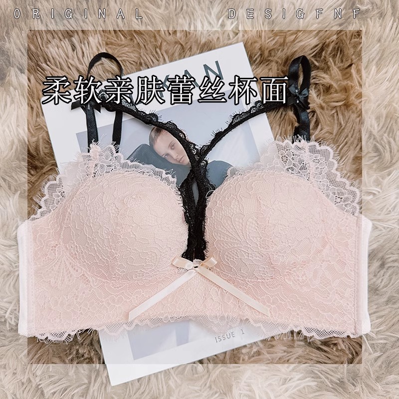 性感蕾丝交叉带美胸聚拢显大内衣女小胸罩无钢圈收副乳文胸罩套装2025新款爆款小红书女神同款