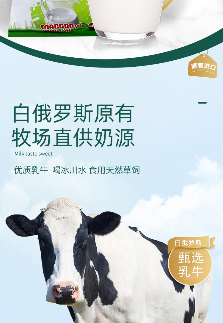 【中欧班列精选】白俄罗斯9m全脂/脱脂无蔗糖奶粉 500g/袋