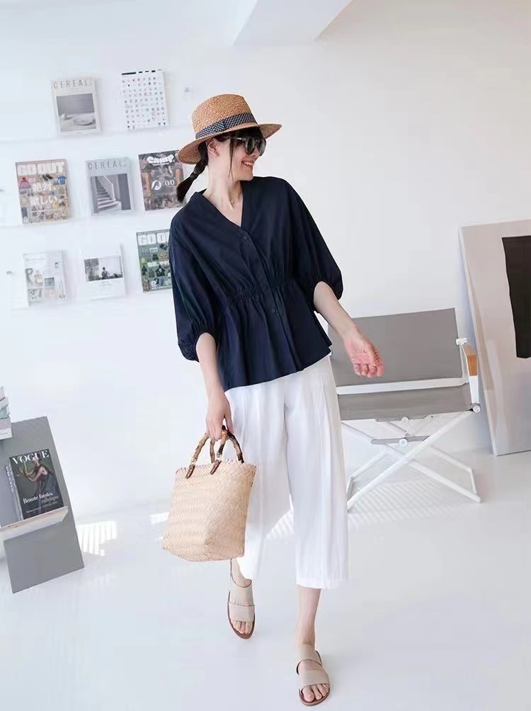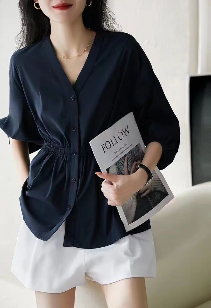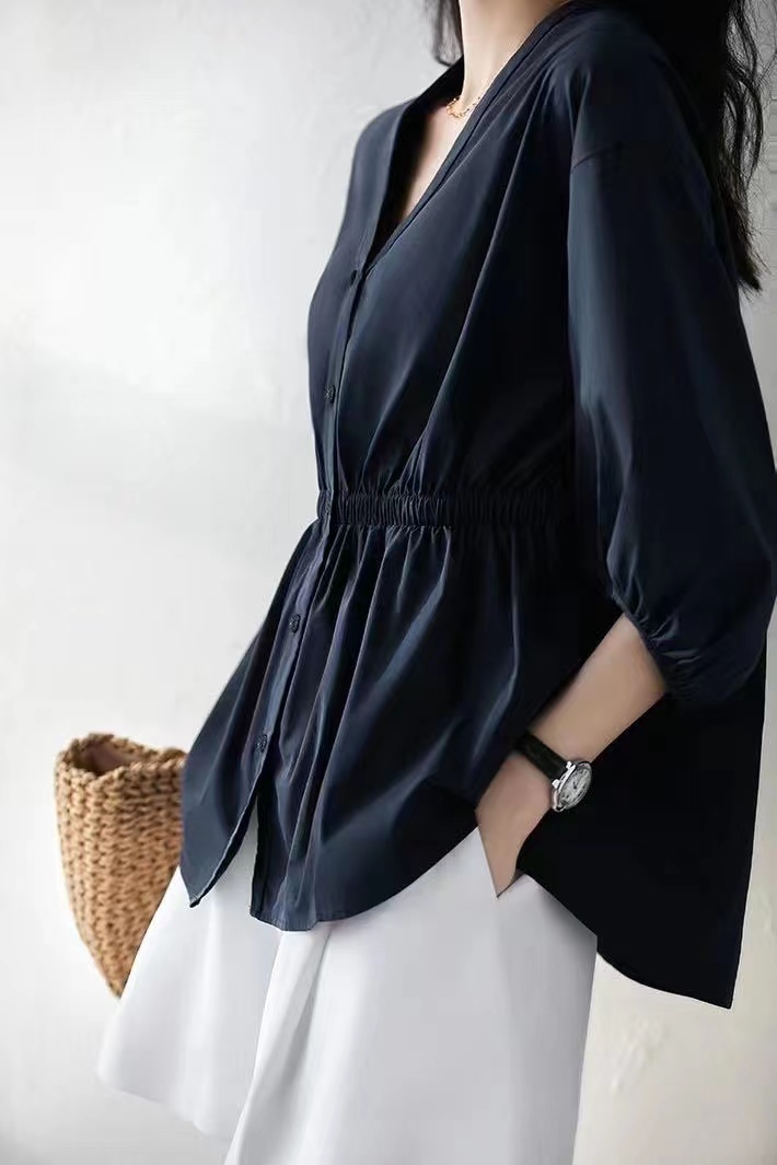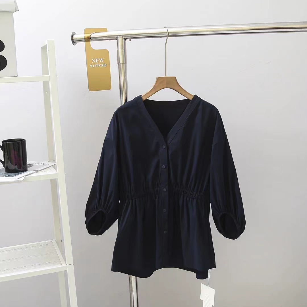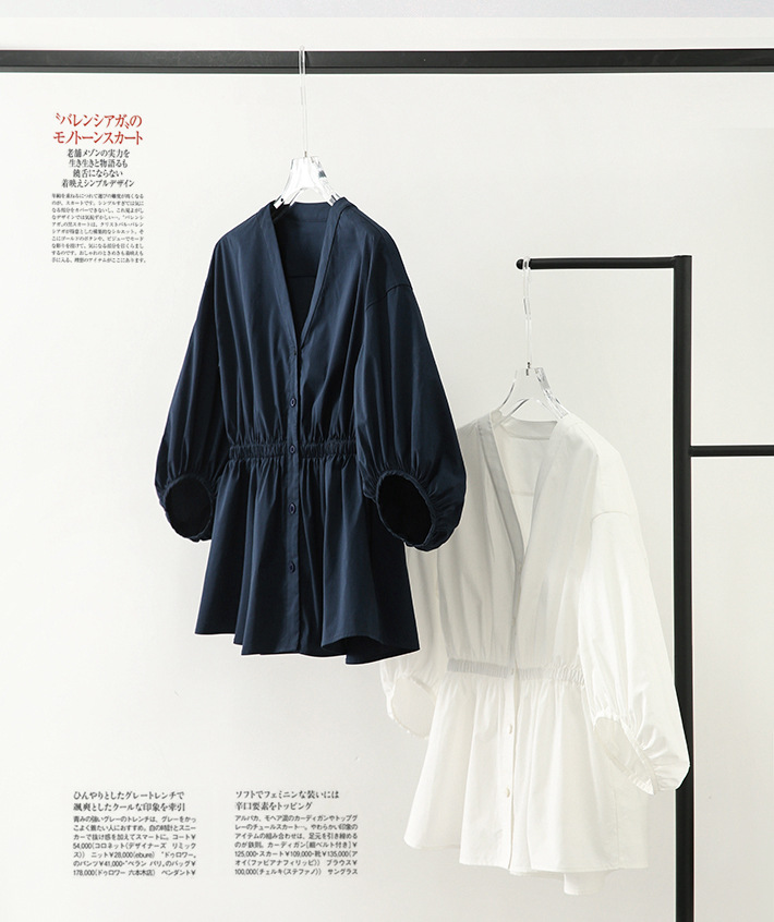 前片松紧织带➕灯笼袖➕V字领设计!减龄显瘦~质感hin绝!绝美🏻可正式可休闲!简约又高级,实穿度超高