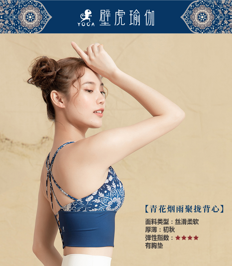 壁虎瑜伽 2110SY082-青花烟雨聚拢印花背心(有胸垫)清仓不退不换