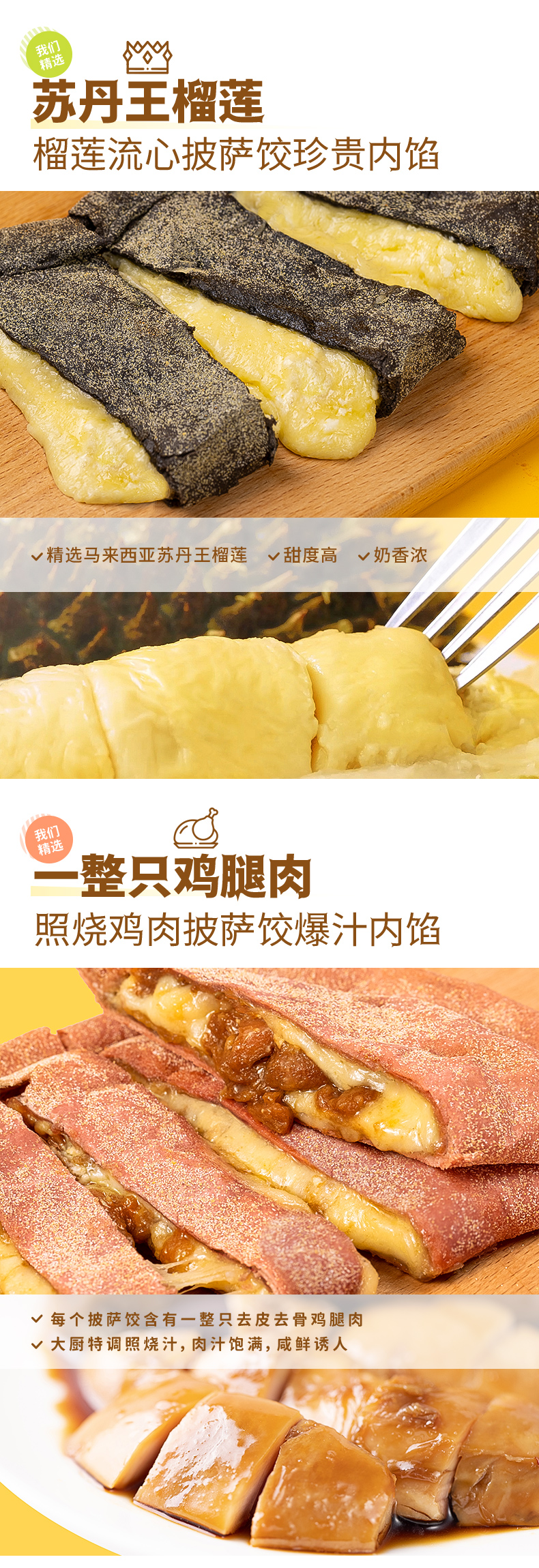 轻烹烹满满芝士榴莲照烧鸡肉流心披萨饺半成品加热即食2盒 冷链运输