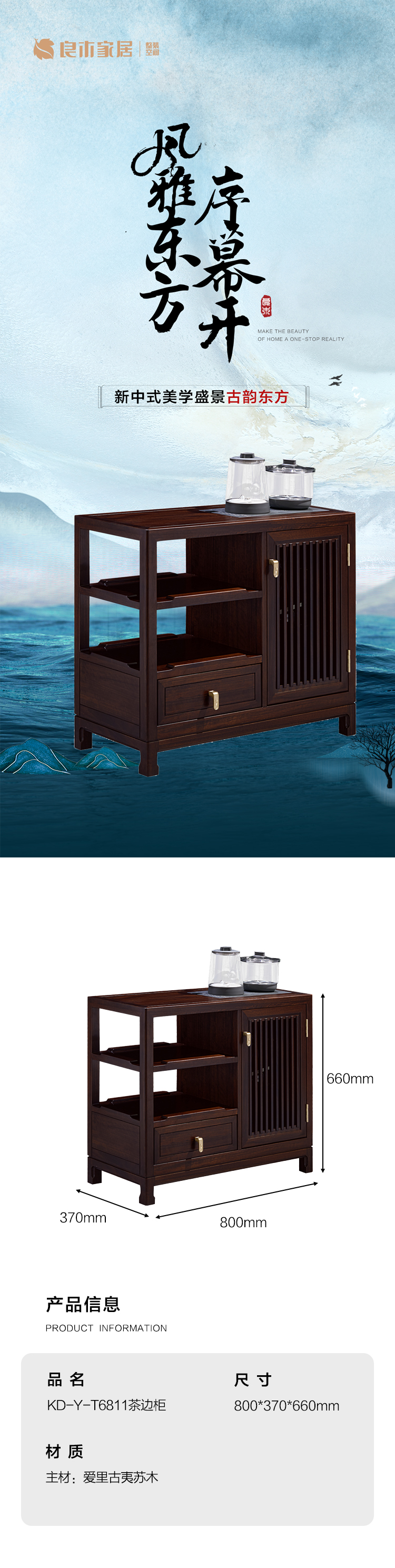 【新中式-茶边柜KD-Y-T6811】黑檀/客厅/茶室/茶柜/边柜