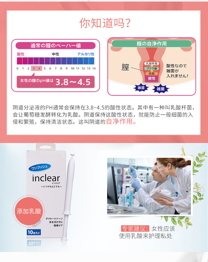 日本inclear女性私处护理清洁凝胶私密益生乳酸菌10支装