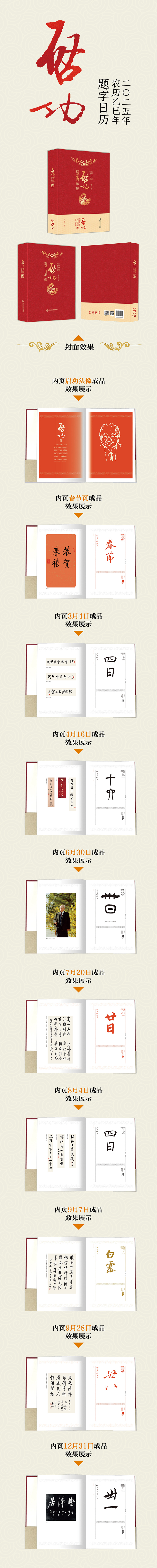 本书日期部分为历代著名书法家的书法作品集字,传统节日和二十四节气则采用启功先生的作品集字。
