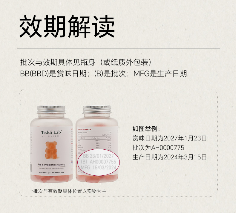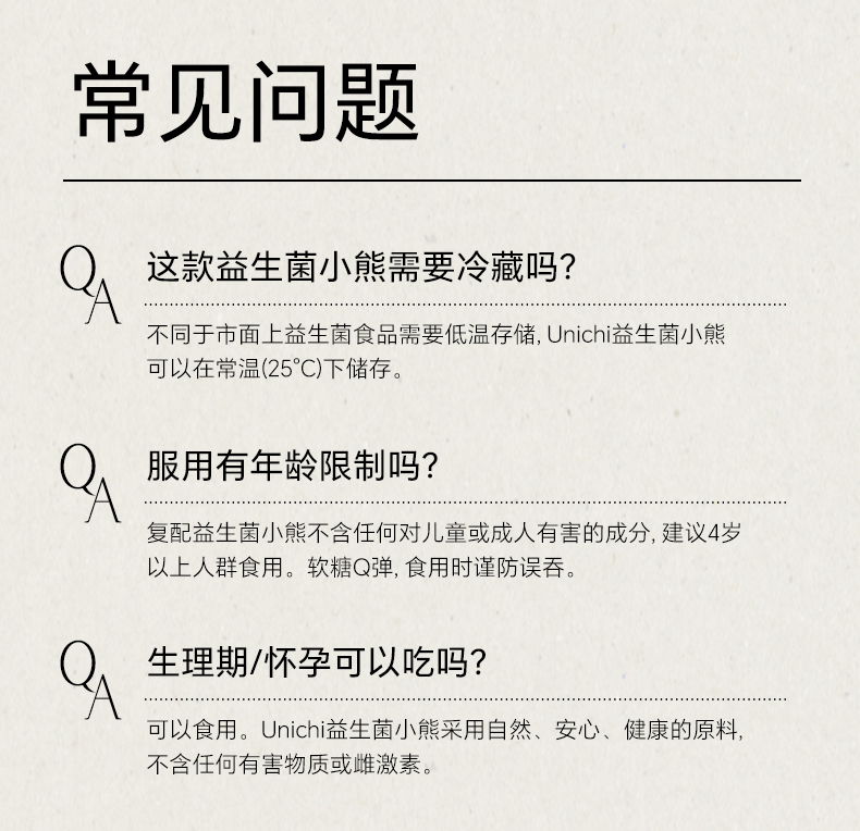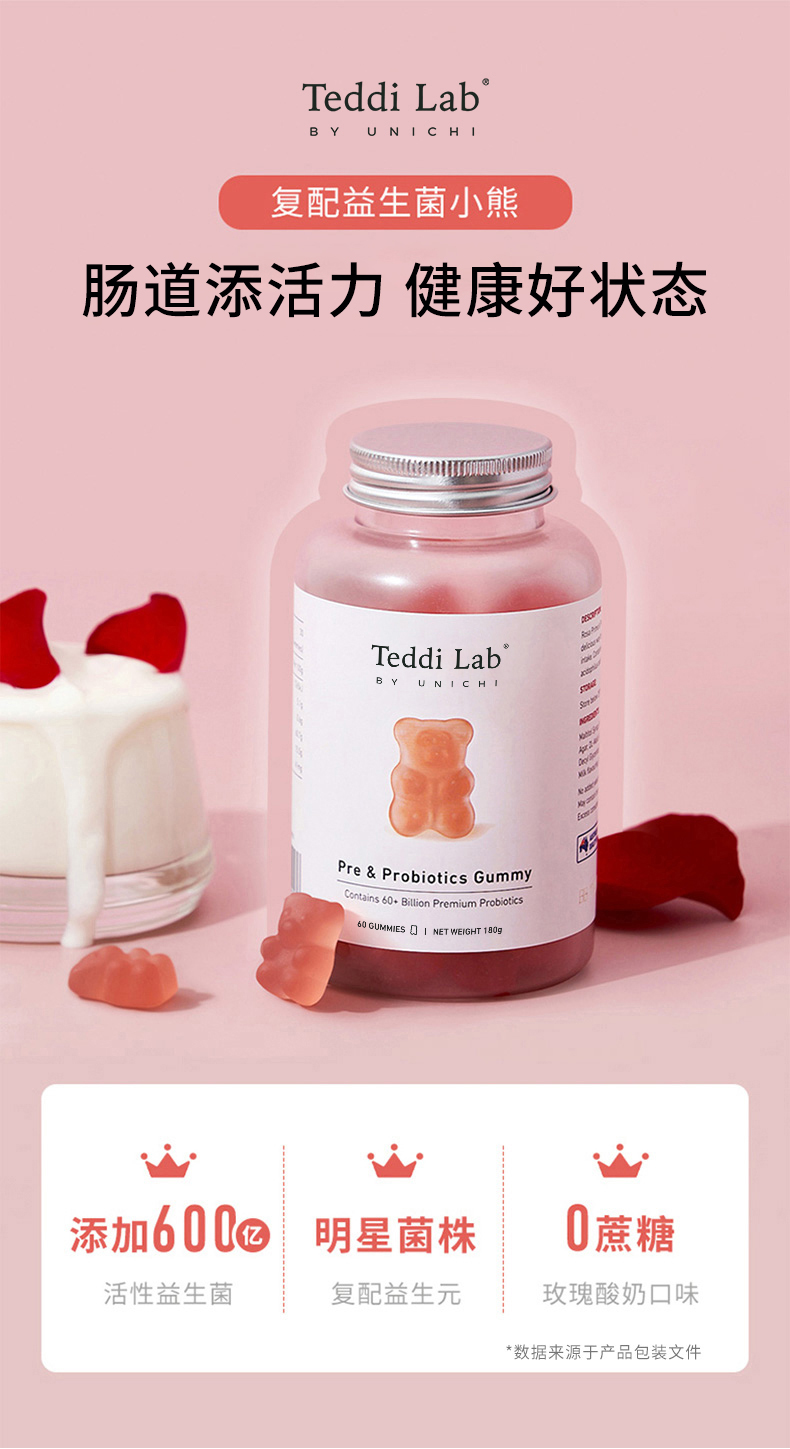 【3瓶一周期】Unichi益生菌小熊60粒/瓶 呵护肠道健康(效期到27年2月)