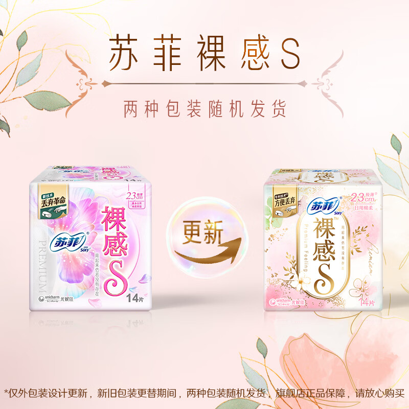苏菲极上裸感S日用卫生巾230mm 14片 极薄棉柔透气无感姨妈巾 2179325