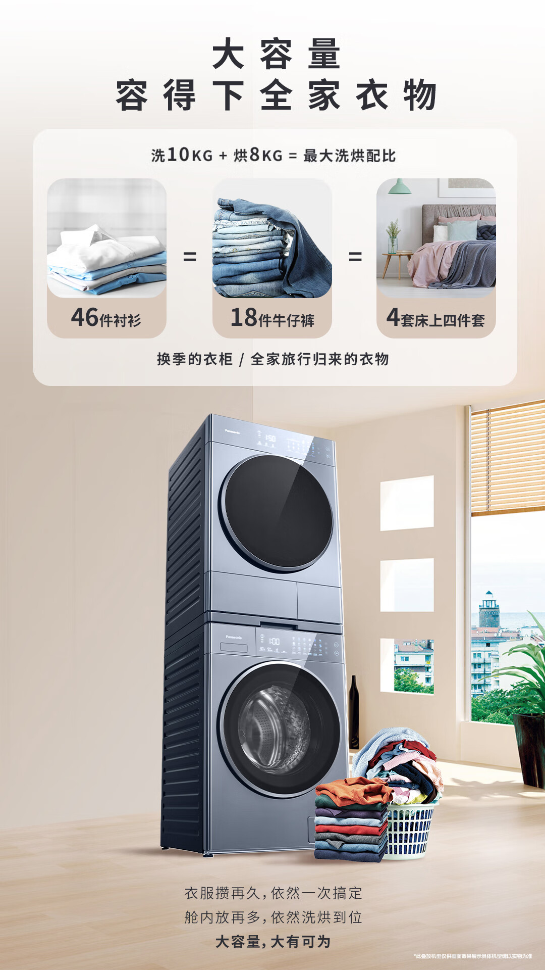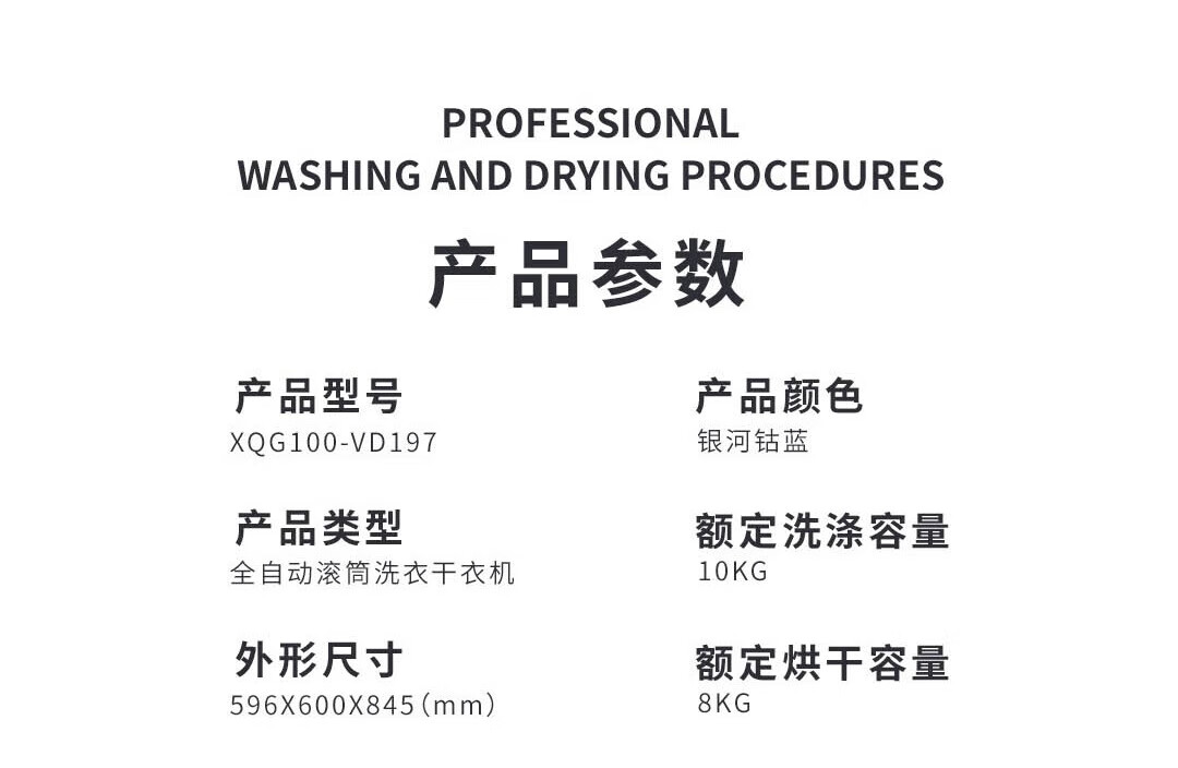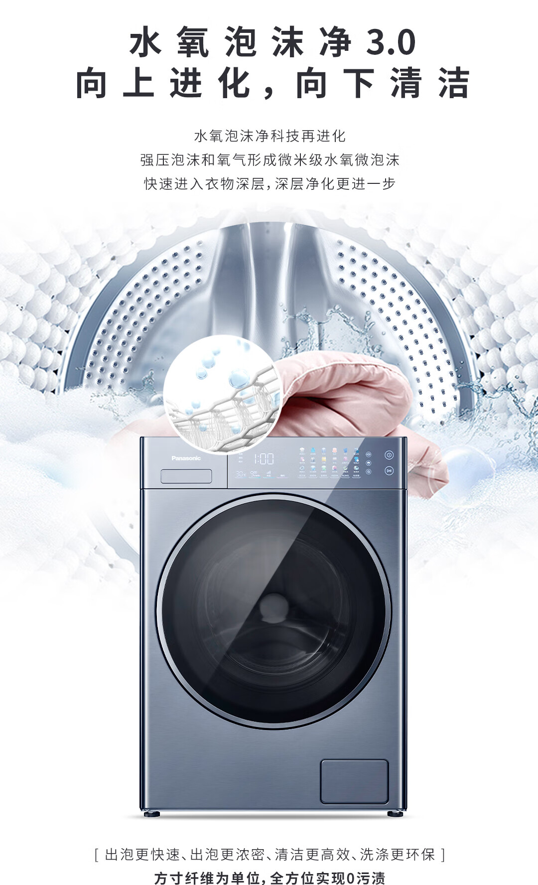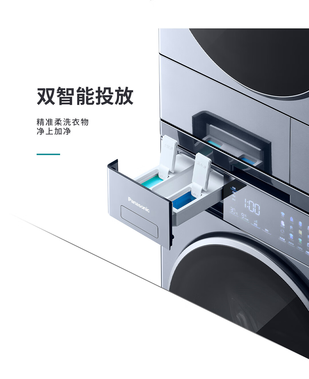 松下(Panasonic)10KG洗+8KG烘滚筒洗衣机 幻彩屏幕外观 高速涡轮循环自滤净水科技洗 水氧泡沫净3.0技术原生级护衣 XQG100-VD197 洗烘一体机 双智能投放