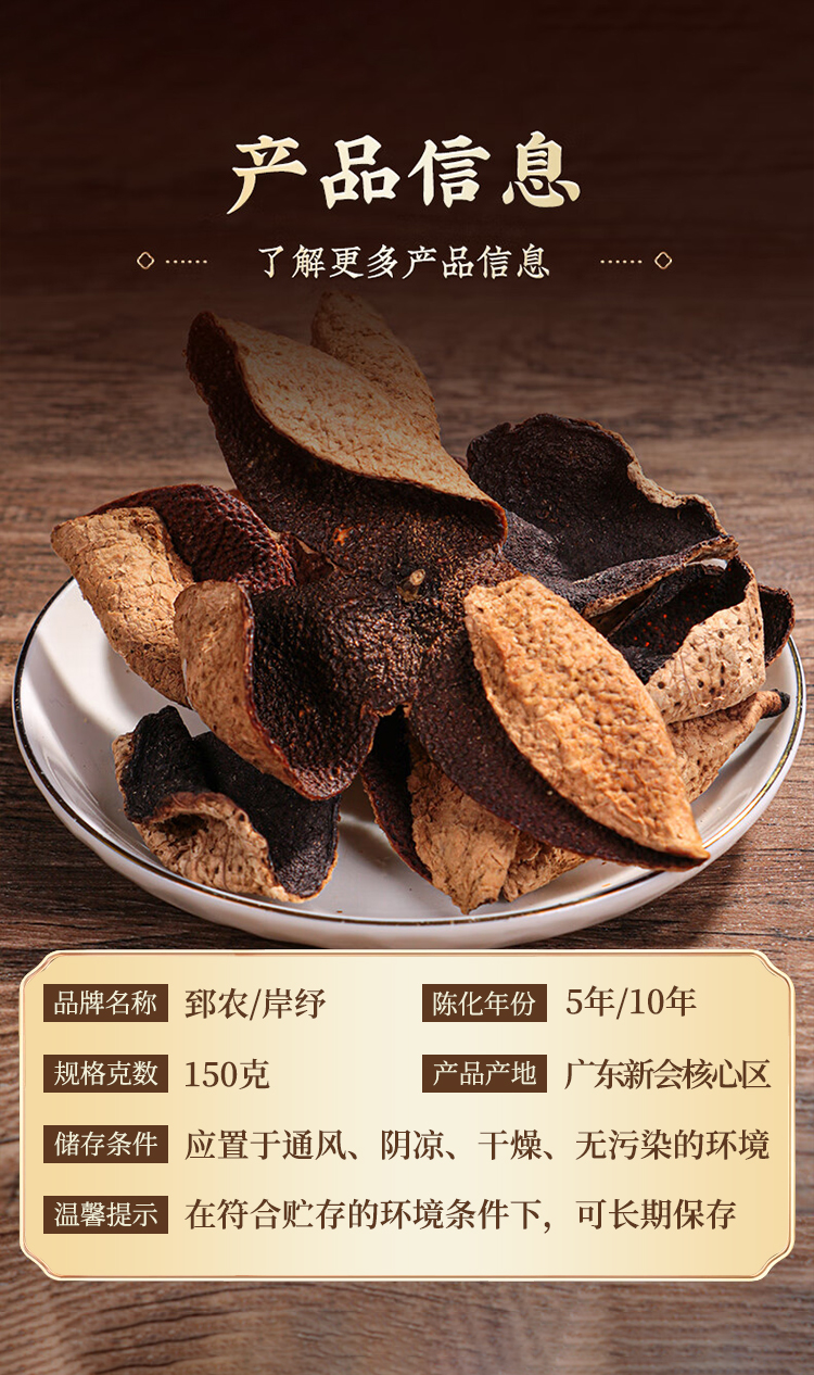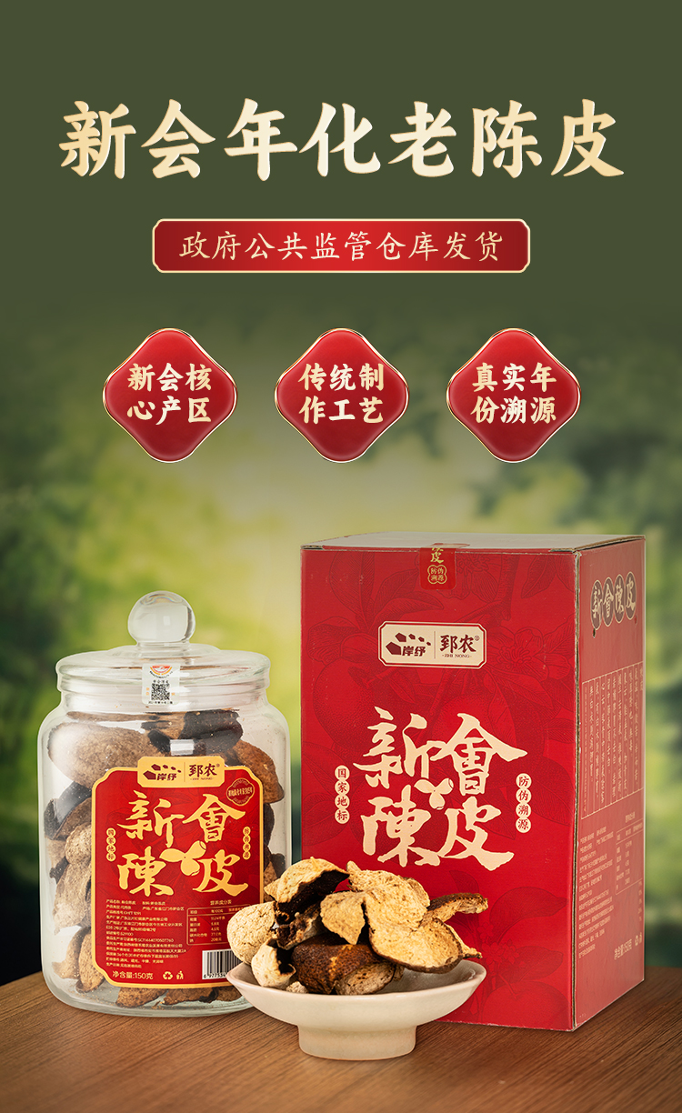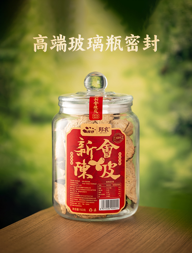 地理标志产品 正宗广东新会地标核心种植区老陈皮150克玻璃瓶密封盒装 自然陈化 陈香四溢