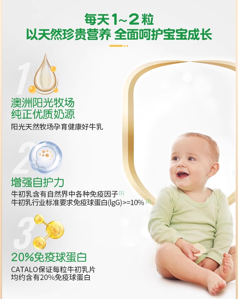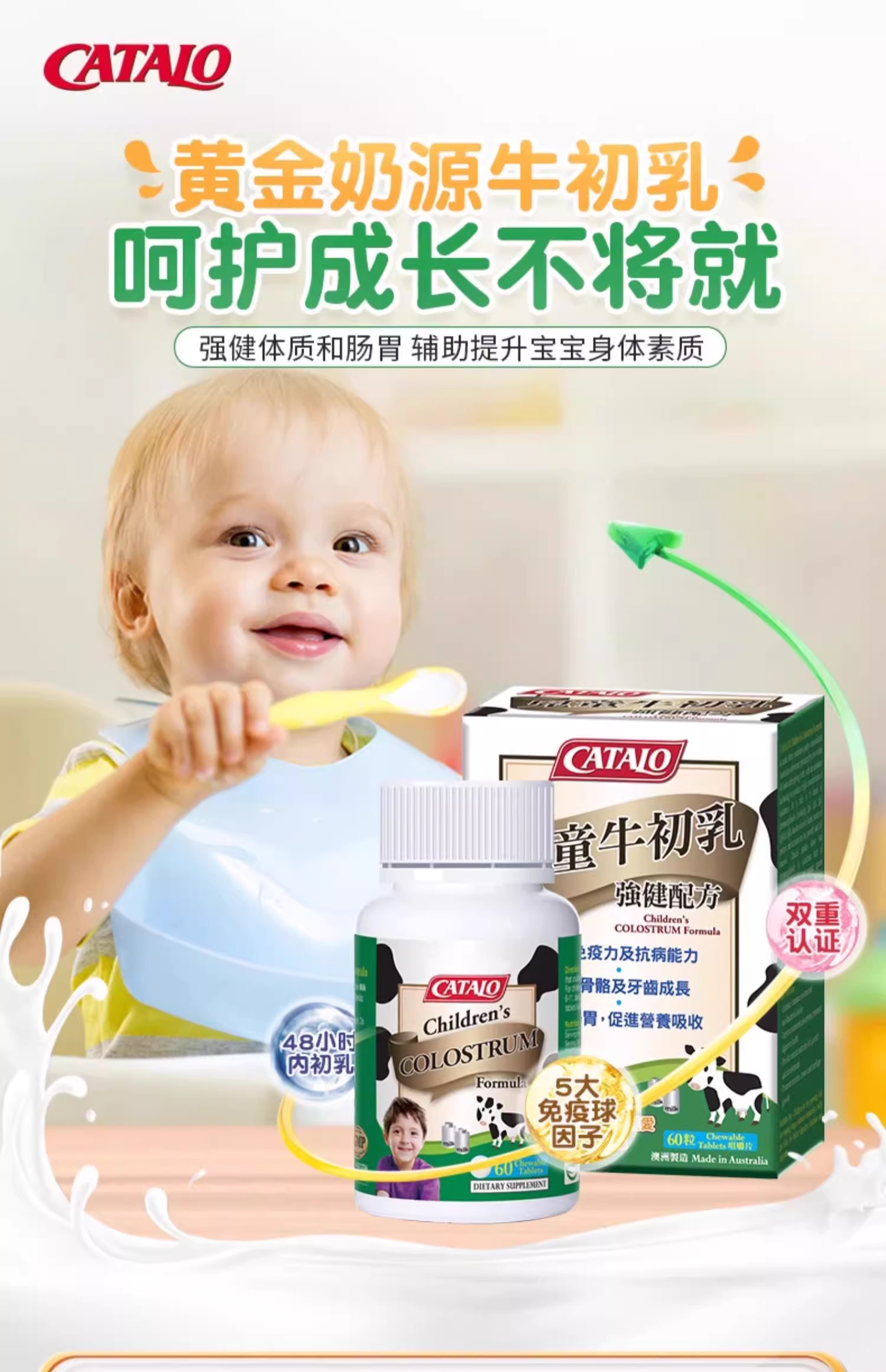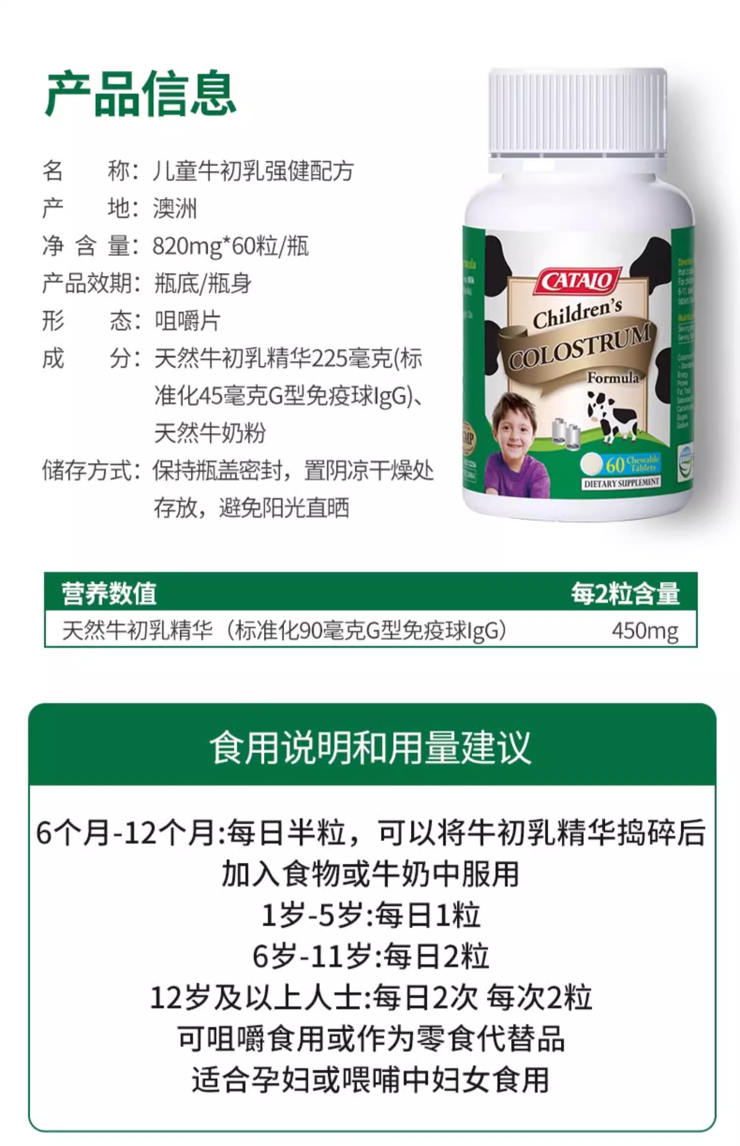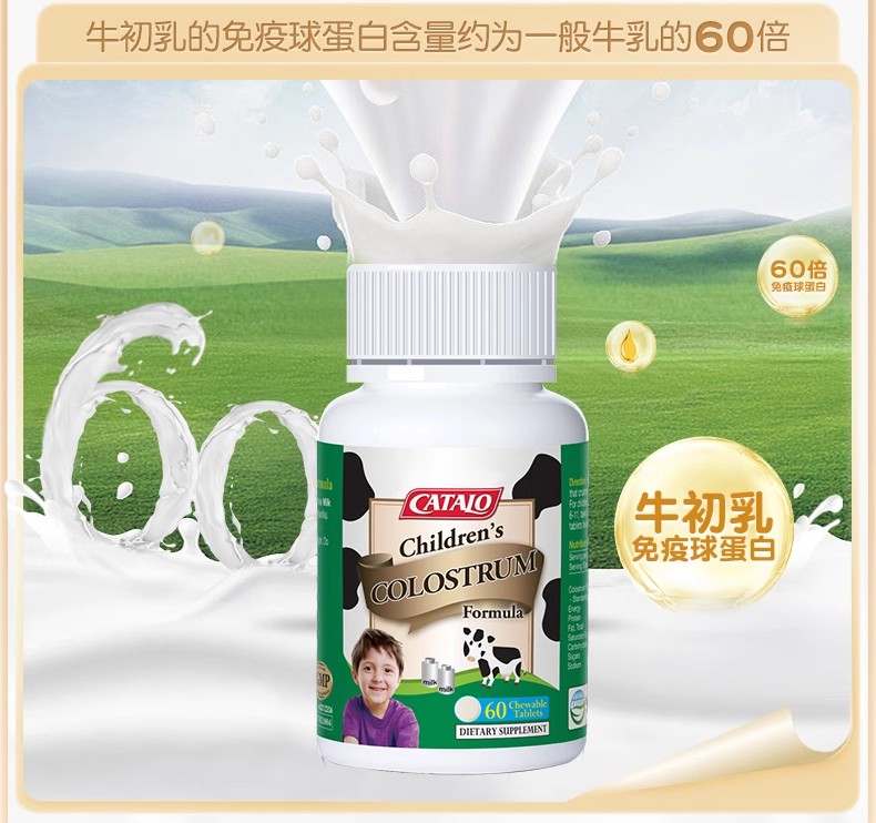 家得路CATALO儿童营养牛初乳澳洲牛初乳咀嚼片宝宝免疫球蛋白60粒