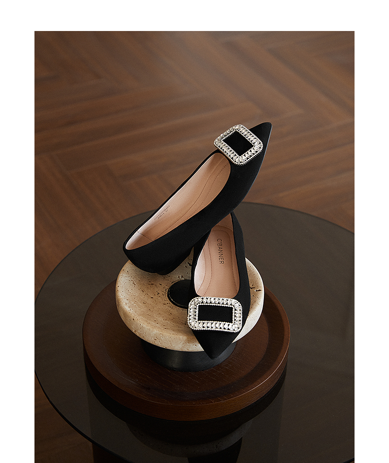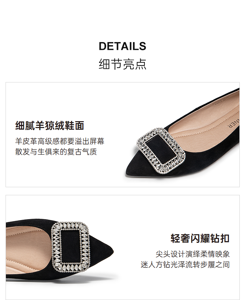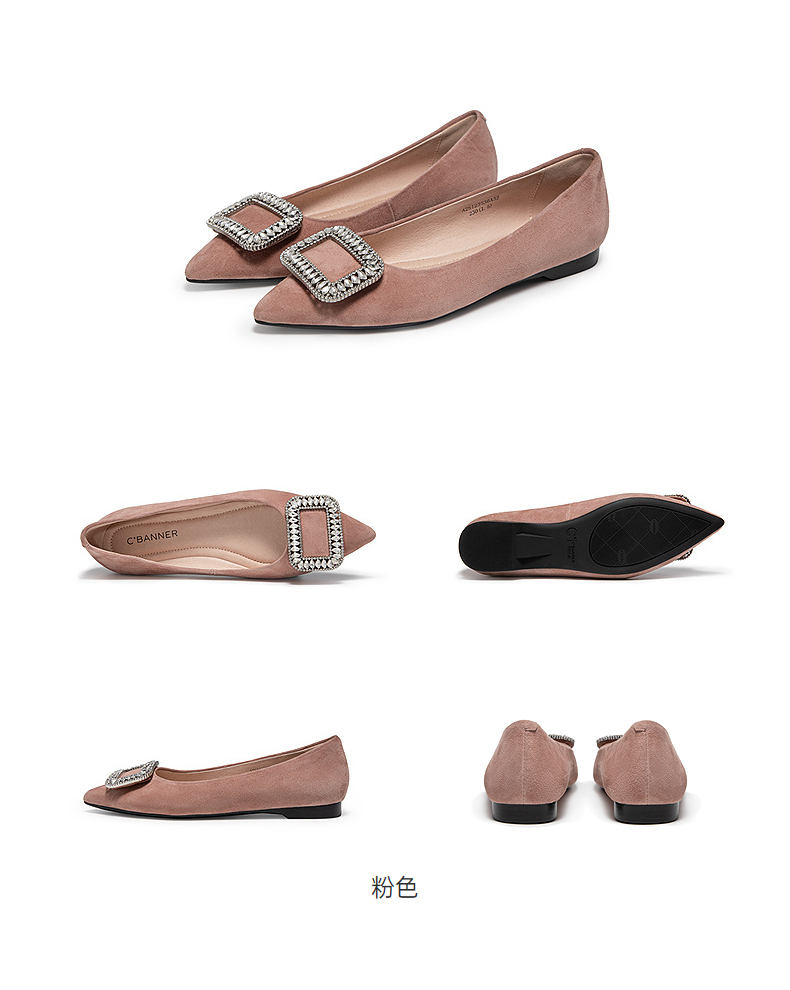 千百度羊皮绒面低跟浅口单鞋女平底鞋晚晚鞋A25123536