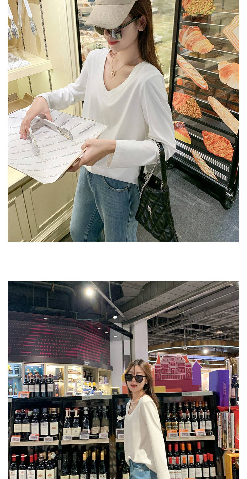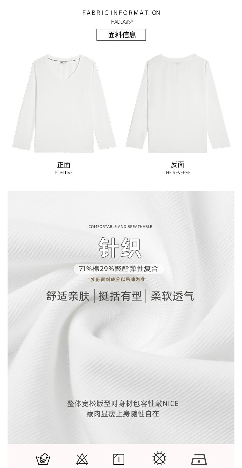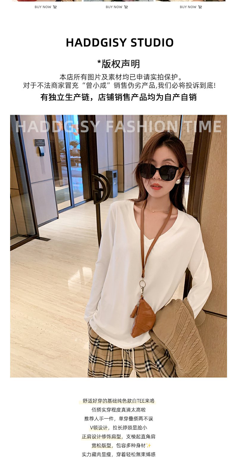 <曾小咸推荐>【韩系百搭白色V领宽松显瘦长袖T恤