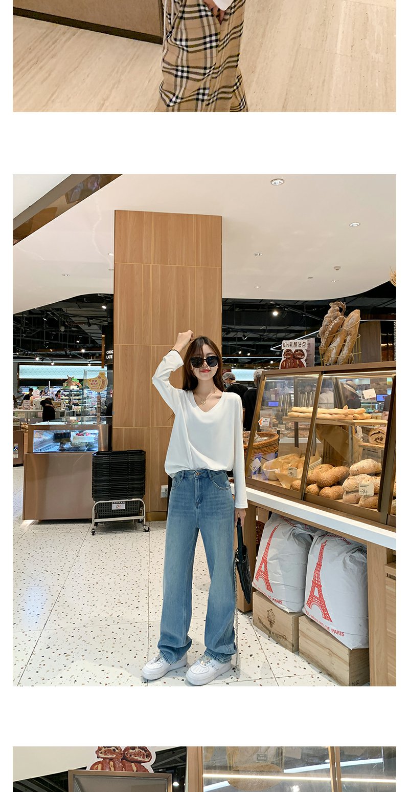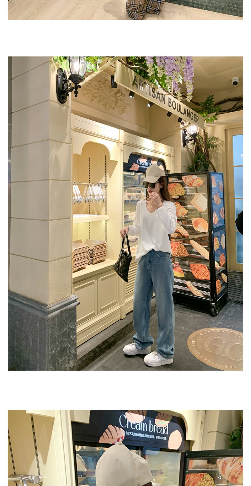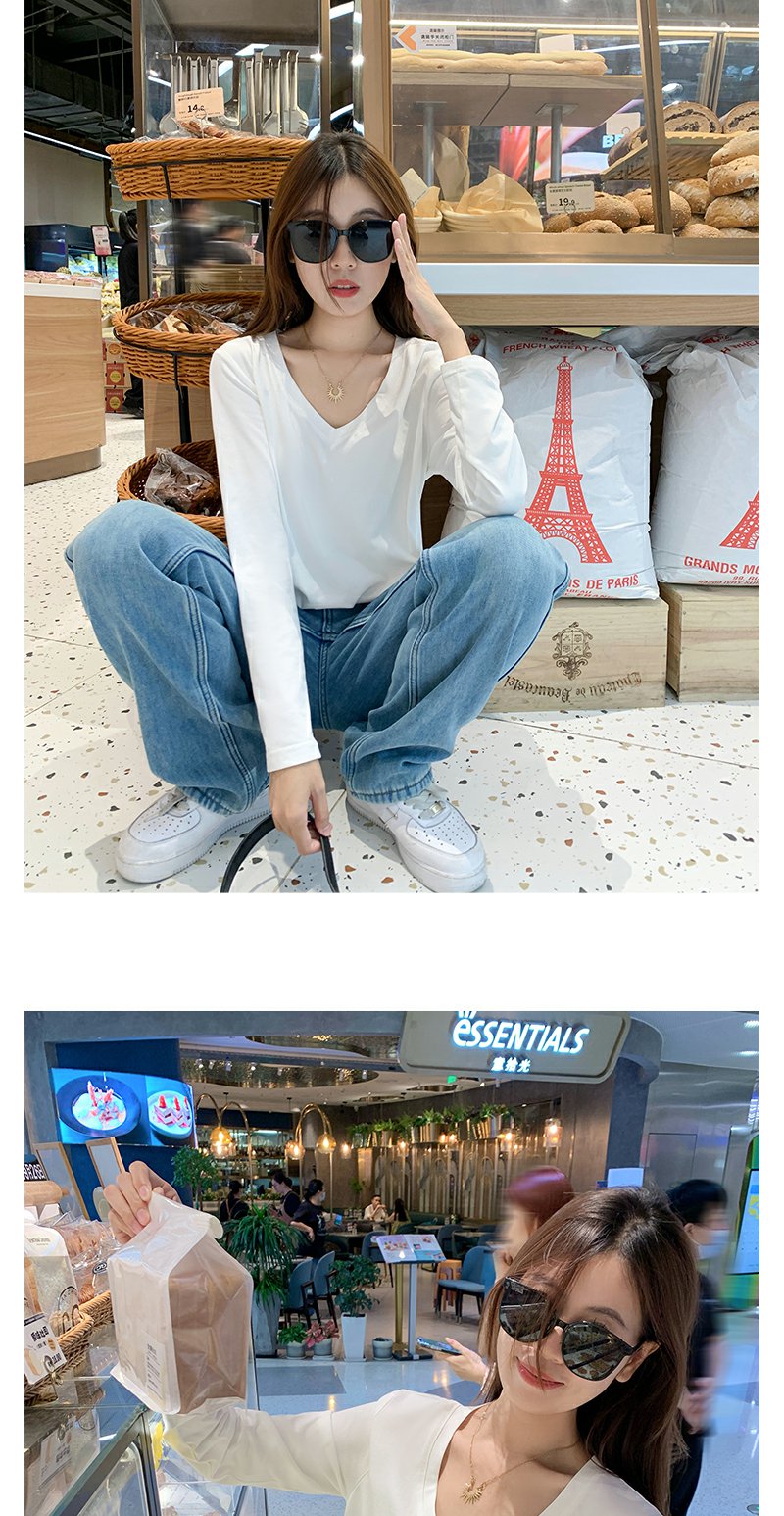 <曾小咸推荐>【韩系百搭白色V领宽松显瘦长袖T恤