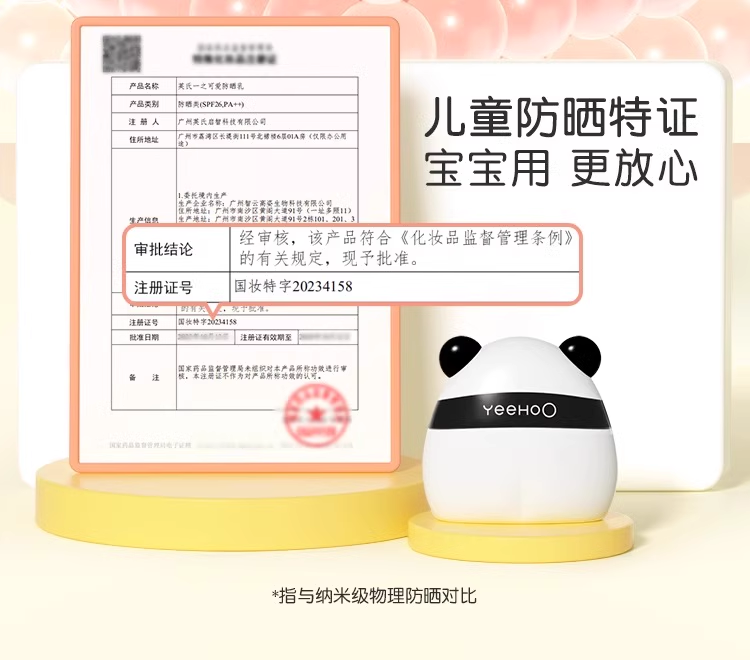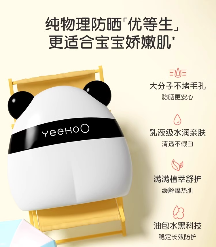 英氏熊猫儿童防晒霜男女童纯物理防晒乳