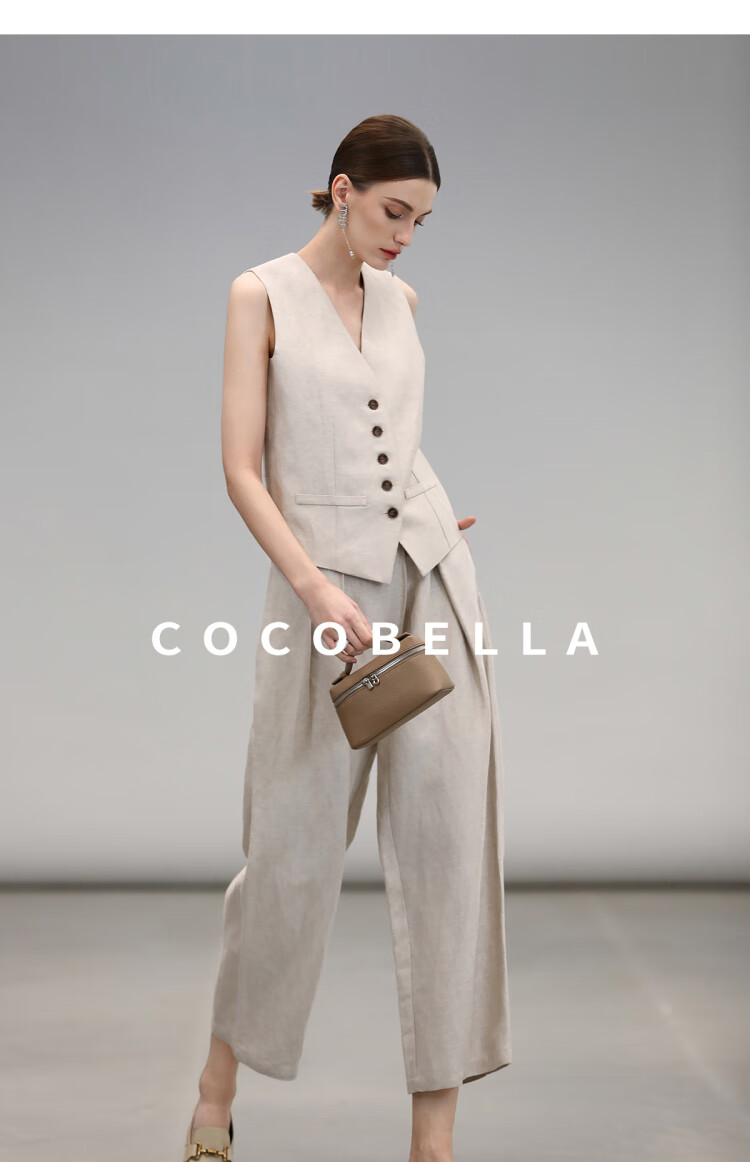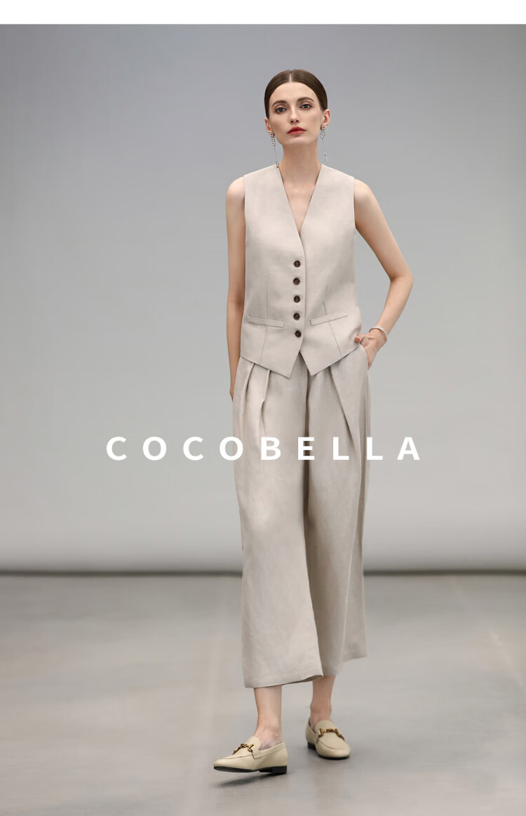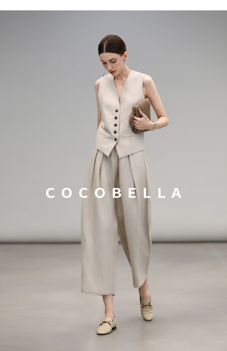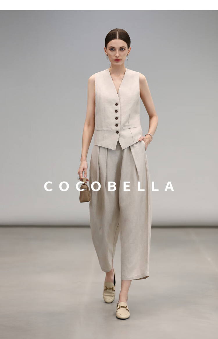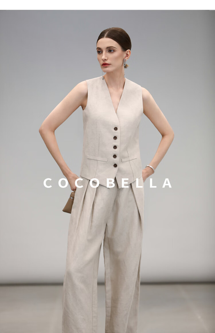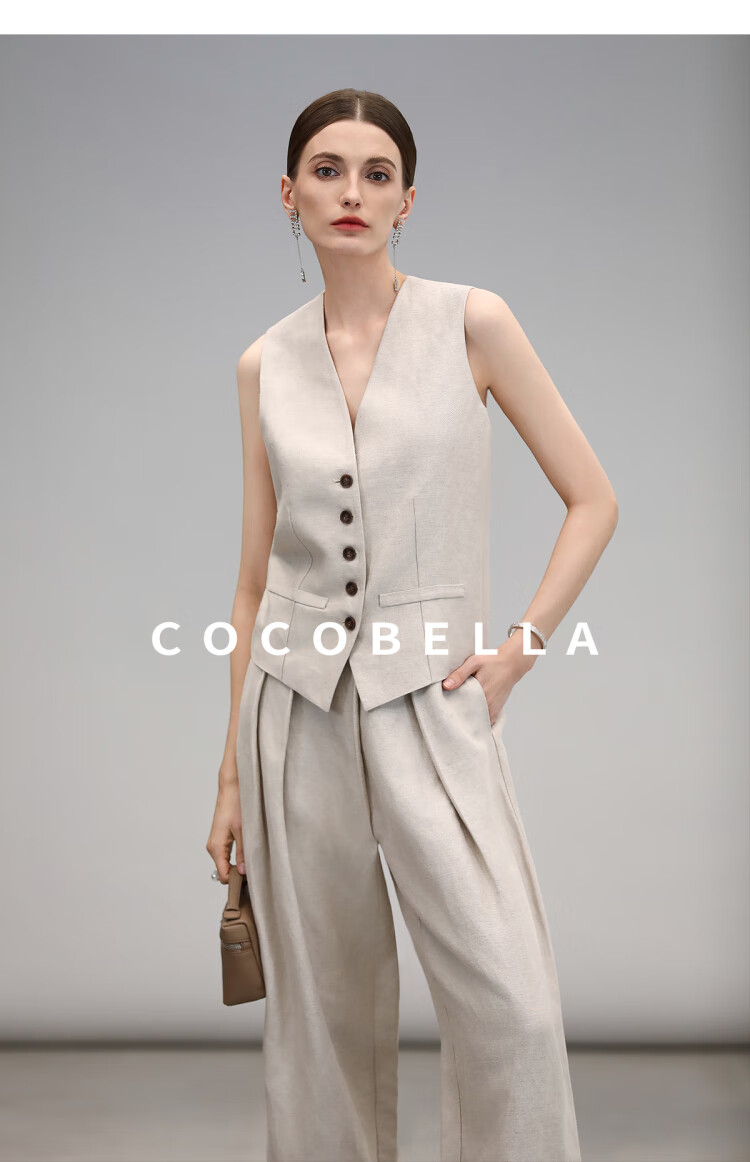 COCOBELLA简约凉爽亚麻无领西装马夹25夏气质通勤马甲WS0006