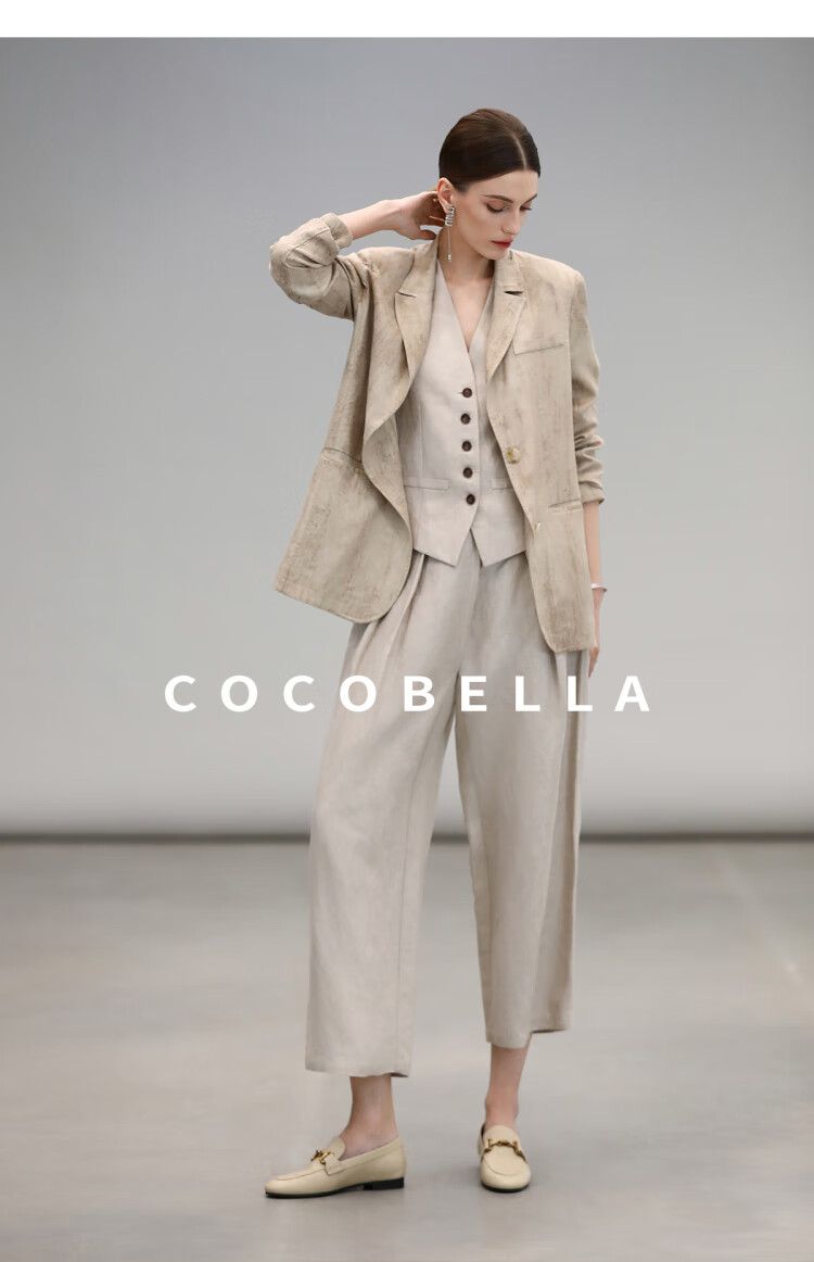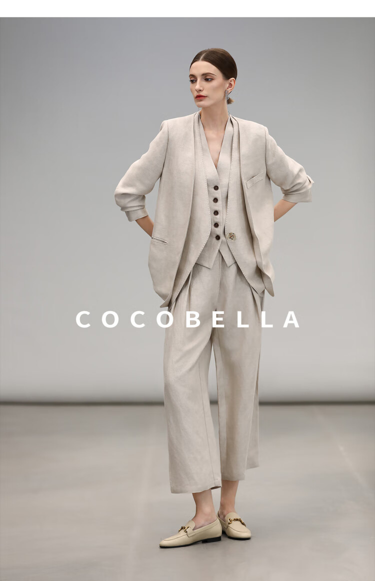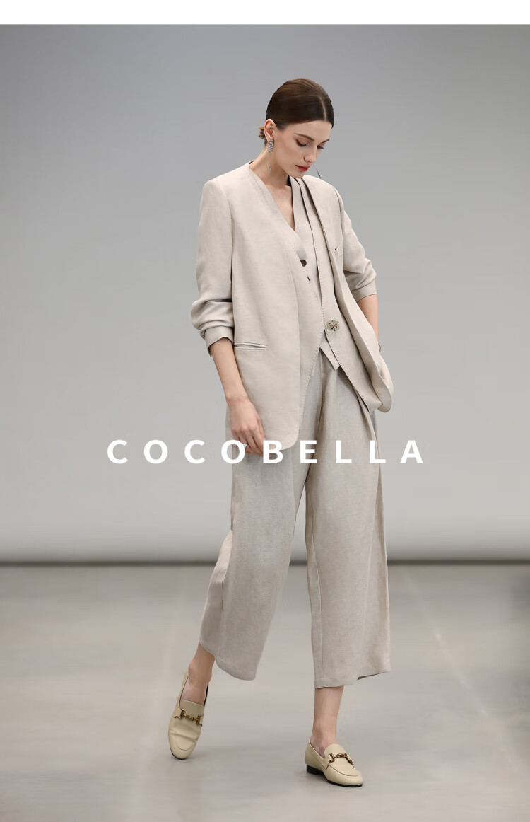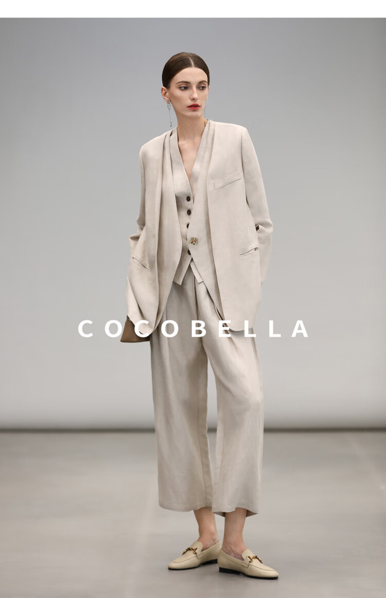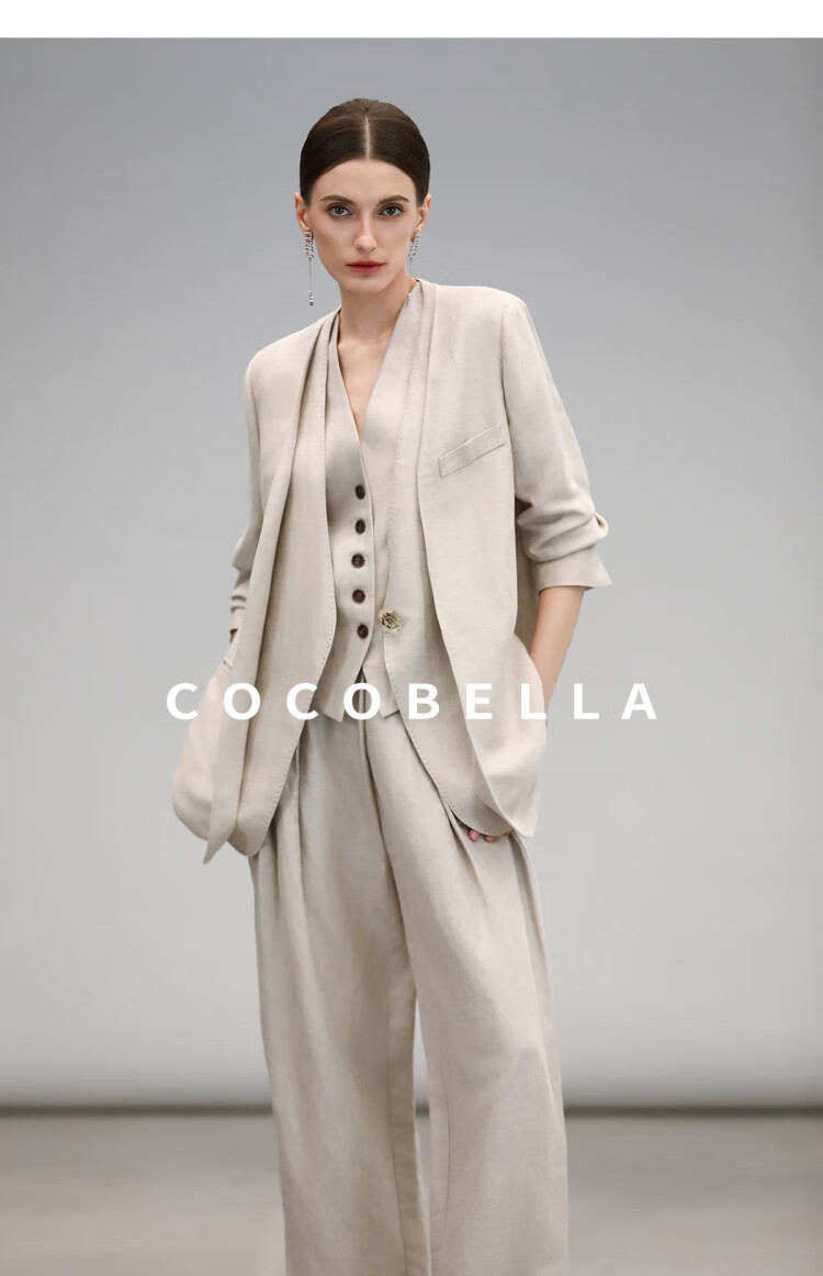 COCOBELLA简约凉爽亚麻无领西装马夹25夏气质通勤马甲WS0006