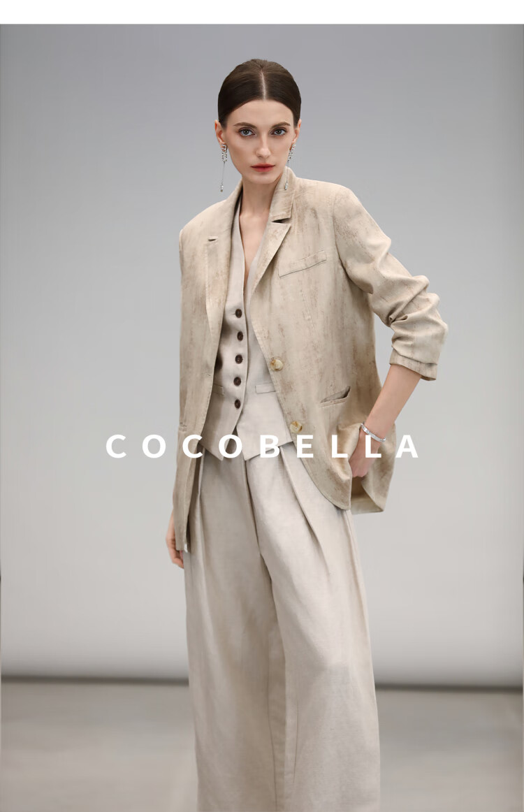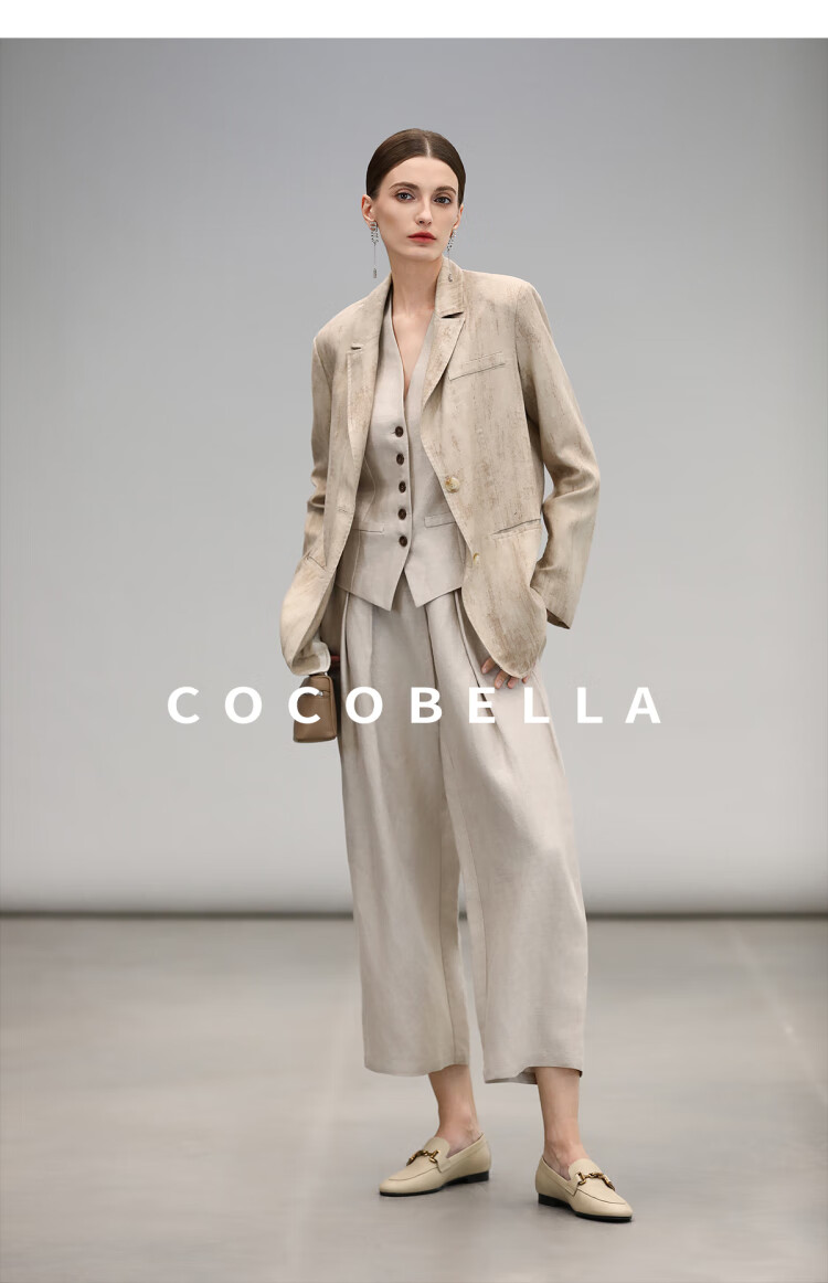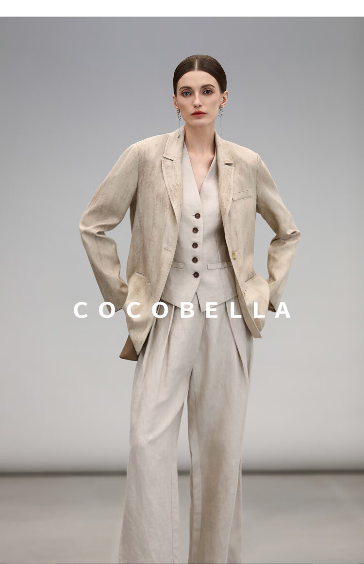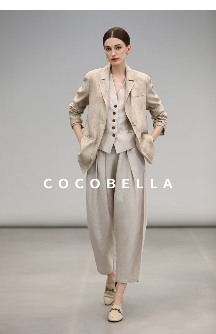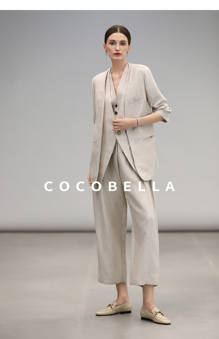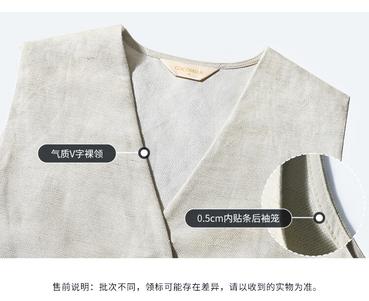 COCOBELLA简约凉爽亚麻无领西装马夹25夏气质通勤马甲WS0006