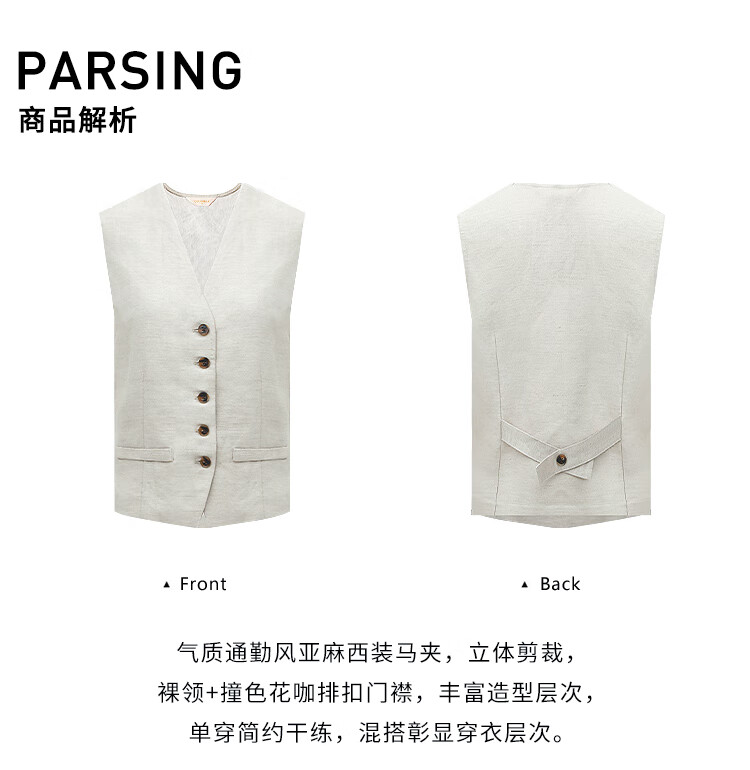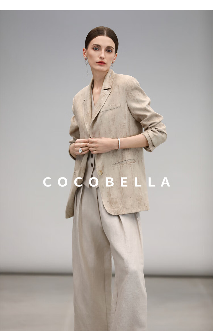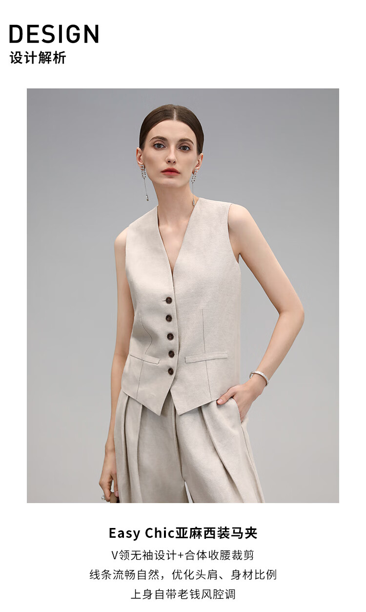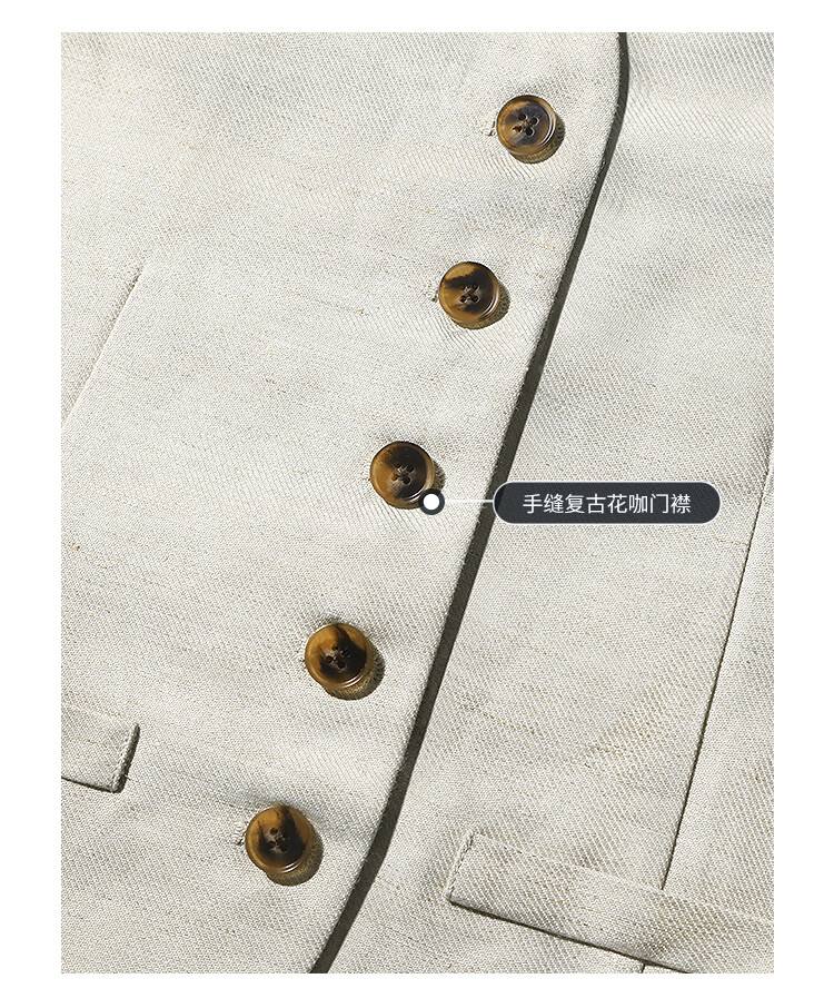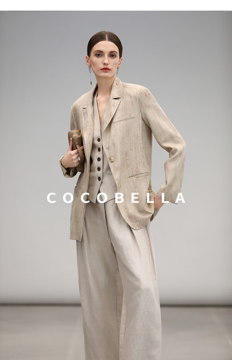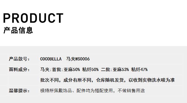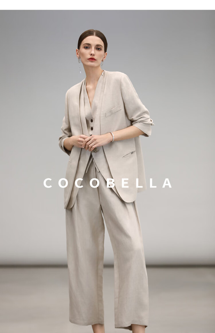 COCOBELLA简约凉爽亚麻无领西装马夹25夏气质通勤马甲WS0006