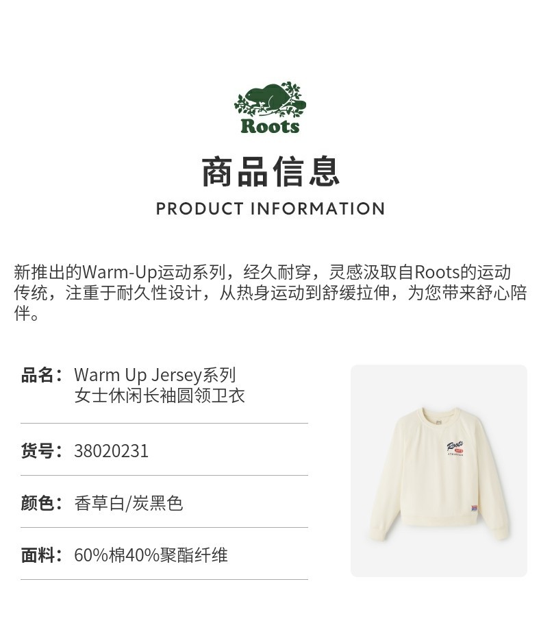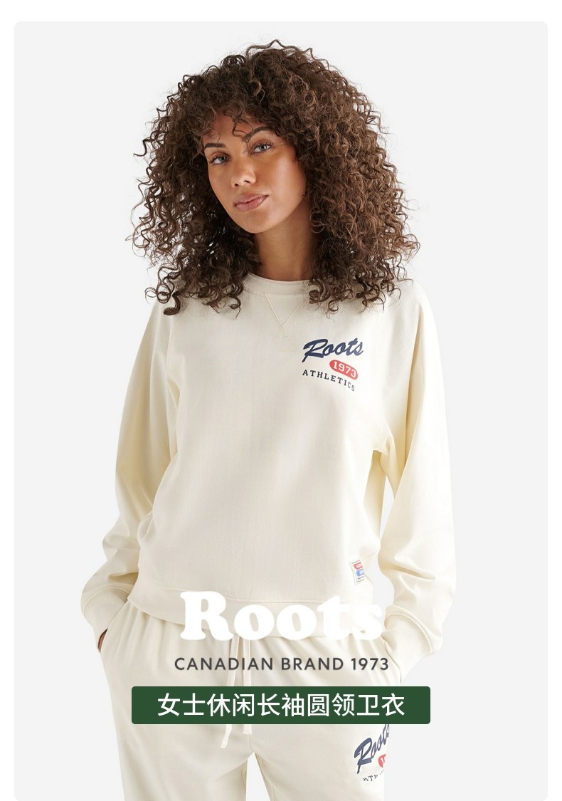 【2件9折】【ROOTS】女式休闲长袖圆领卫衣