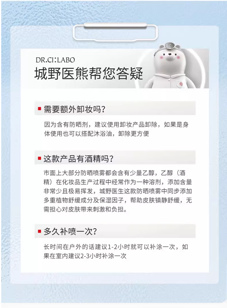 【春节不打烊】城野医生防晒喷雾100g 无盒有塑封(限25年3月)
