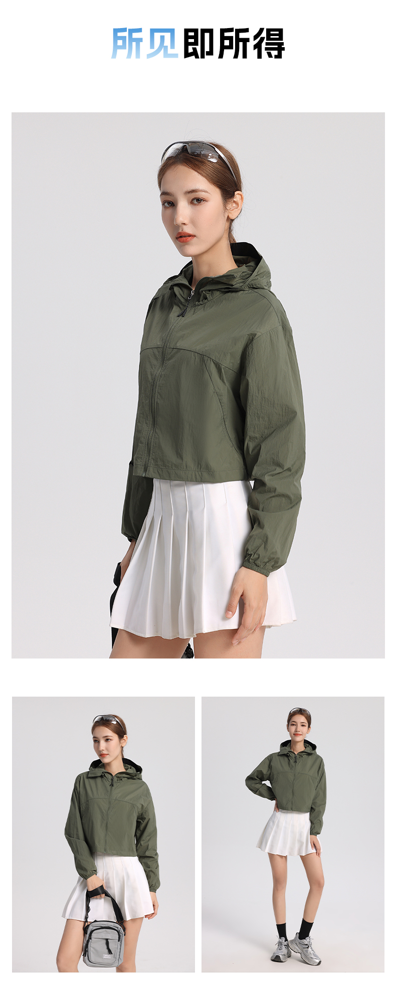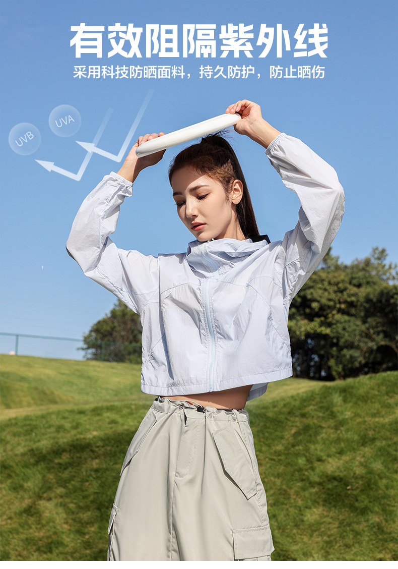 LUCKY DEER/幸运鹿女防泼水黑胶帽檐短款upf50+防晒衣