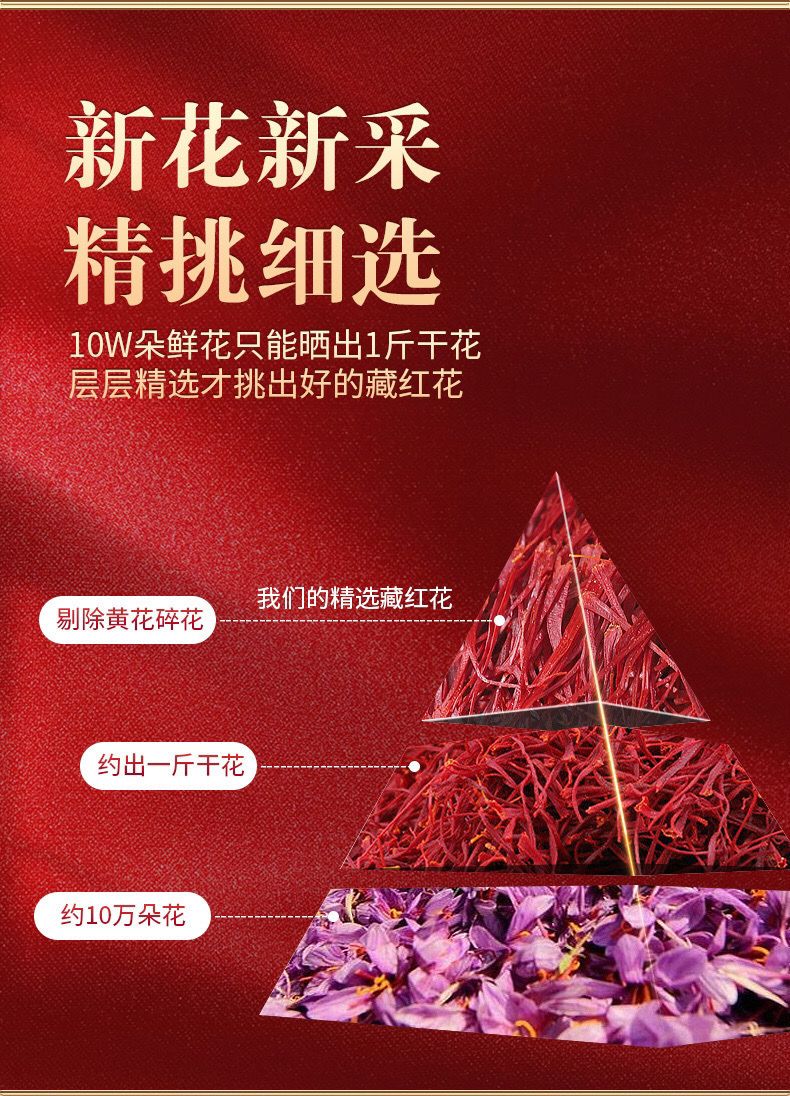 《本草纲目》记载:“已有藏红花,称其主心气忧郁,结闷不散,能活血治惊悸。藏红花对治疗心脑血管疾病,调节肝肾功能调节三高,抗肿瘤癌症等疗效显著,记得一定要给爸妈备上