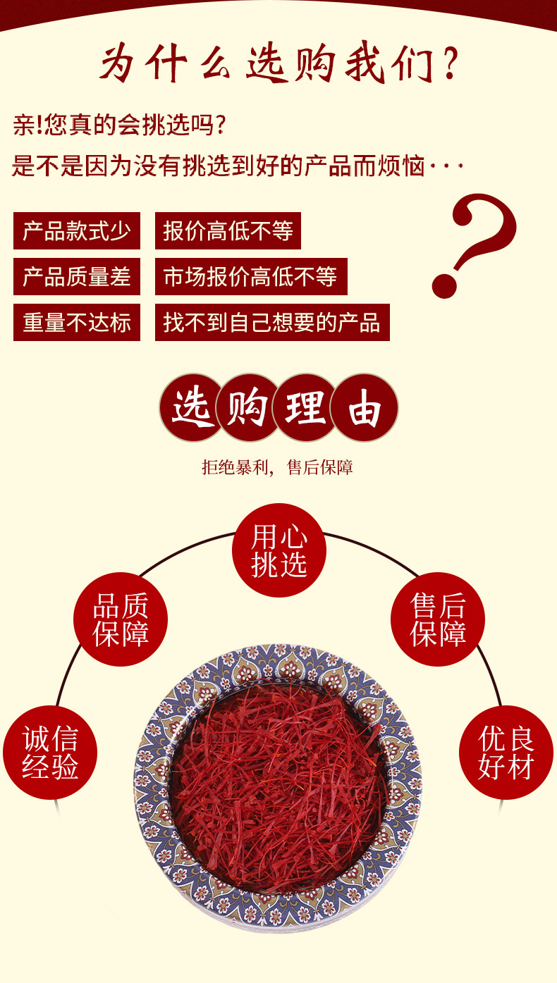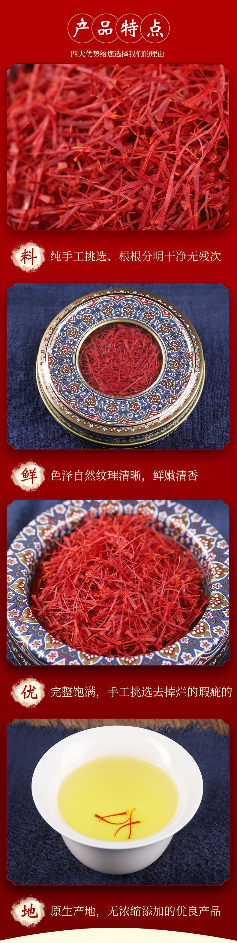 1g仅需29.9,前所未有的价格优惠!所有女生们,容易生气,月经量少的可以喝起来。喝一段时间后你就会发现肉眼可见的面色红润心情开朗。《饮膳正要》:主心忧郁积,气闷不散久食令人心喜!就是喝了心情会变好。每天3-5根泡水喝,平均一天才几毛钱,对自己好点儿,快乐女孩养生水,藏红花该喝起来了