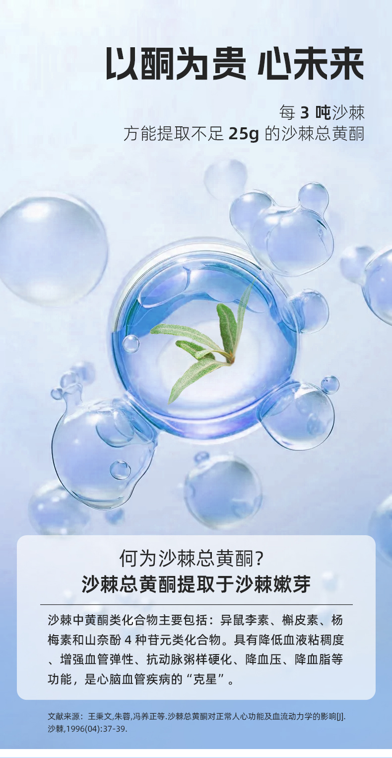 每3吨沙棘≈提取不到25g沙棘黄酮!沙棘中黄酮类化合物主要包括·异鼠李素、棚皮素、杨梅素和山奈酚4种甘元类化合物。具有降低血液粘稠度增强血管弹性、抗动脉粥样硬化、降血压、降血脂等功能,是心脑血管疾病的“克星”——文献来源:王秉文,朱蓉,冯养正等.沙棘总黄酮对正常人心功能及血流动力学的影响]].沙棘,1996(04):37-39.