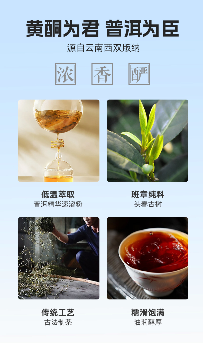 *好工艺♻① 浸提⼯艺:采⽤短时中温逆流提取技术,让沙棘叶、普洱茶和萃取介质逆向流动接触,⼤⼤增加了萃取效率,⾹⽓得到最⼤保留,滋味清爽,不会像⾼温⻓时那样带来闷煮感,同时汤⾊⻩绿明亮;② 离⼼:超低温制冷冷却离⼼,温度:20℃以下,茶汤澄清、保留⾹⽓和鲜爽度;③ 浓缩:反渗透膜浓缩,低温膜浓缩,利⽤膜技术常温去除茶汤中的⽔,保留茶汤中的⾊⾹味;④ 杀菌:⾼温瞬时杀菌UHT,快速灭菌,保持茶汤品质稳定,瞬间锁鲜锁⾹;⑤ 喷粉:沙棘茶浓缩液和普洱茶浓缩液快速⼲燥成速溶粉,品质保持稳定,易于保存;同时在⾼温⼲燥条件下,沙棘茶和普洱茶的⾹⽓得到进⼀步提升,在终端产品应⽤中⾹⽓更易体现⑥ 过膜:确认产品的速溶性好,⽅便饮⽤