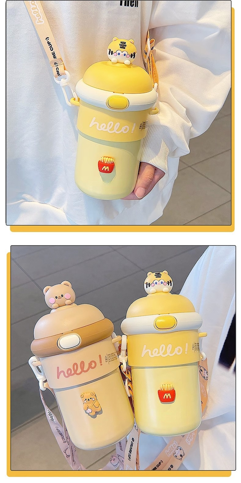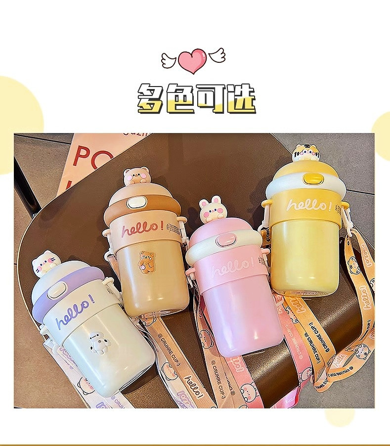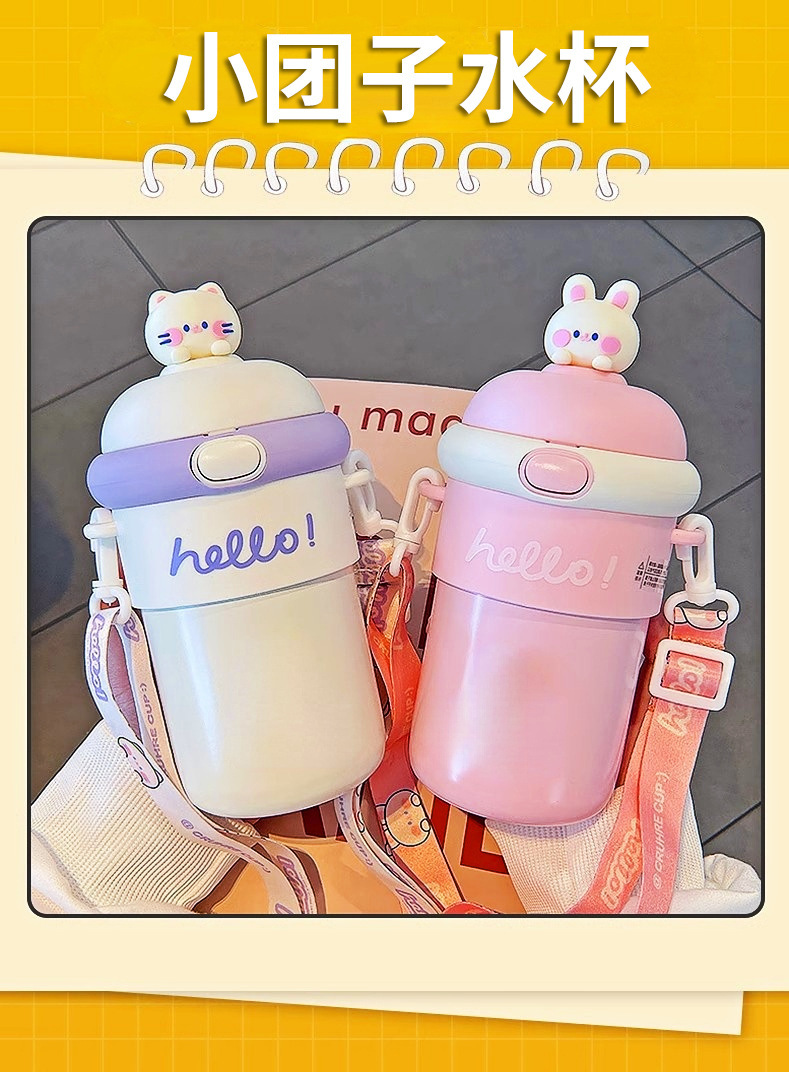 【小团子水杯】网红高颜值卡通女生大容量背带水杯可爱吸管杯学生ins便携玻璃杯。ry