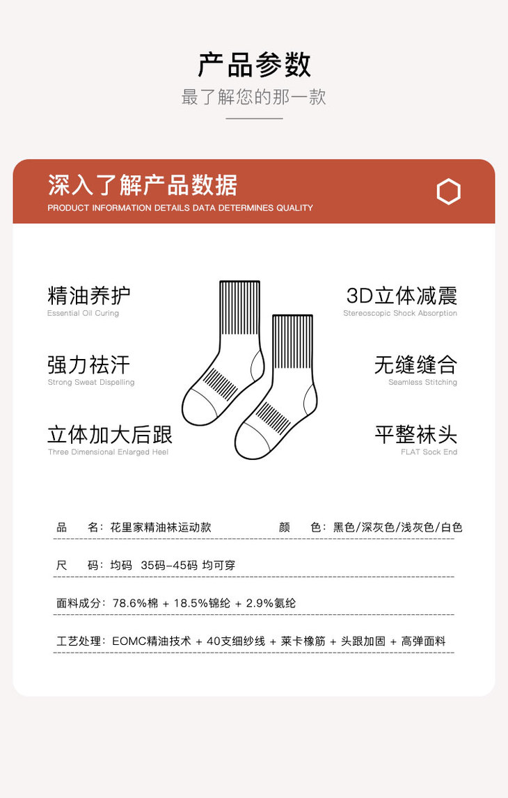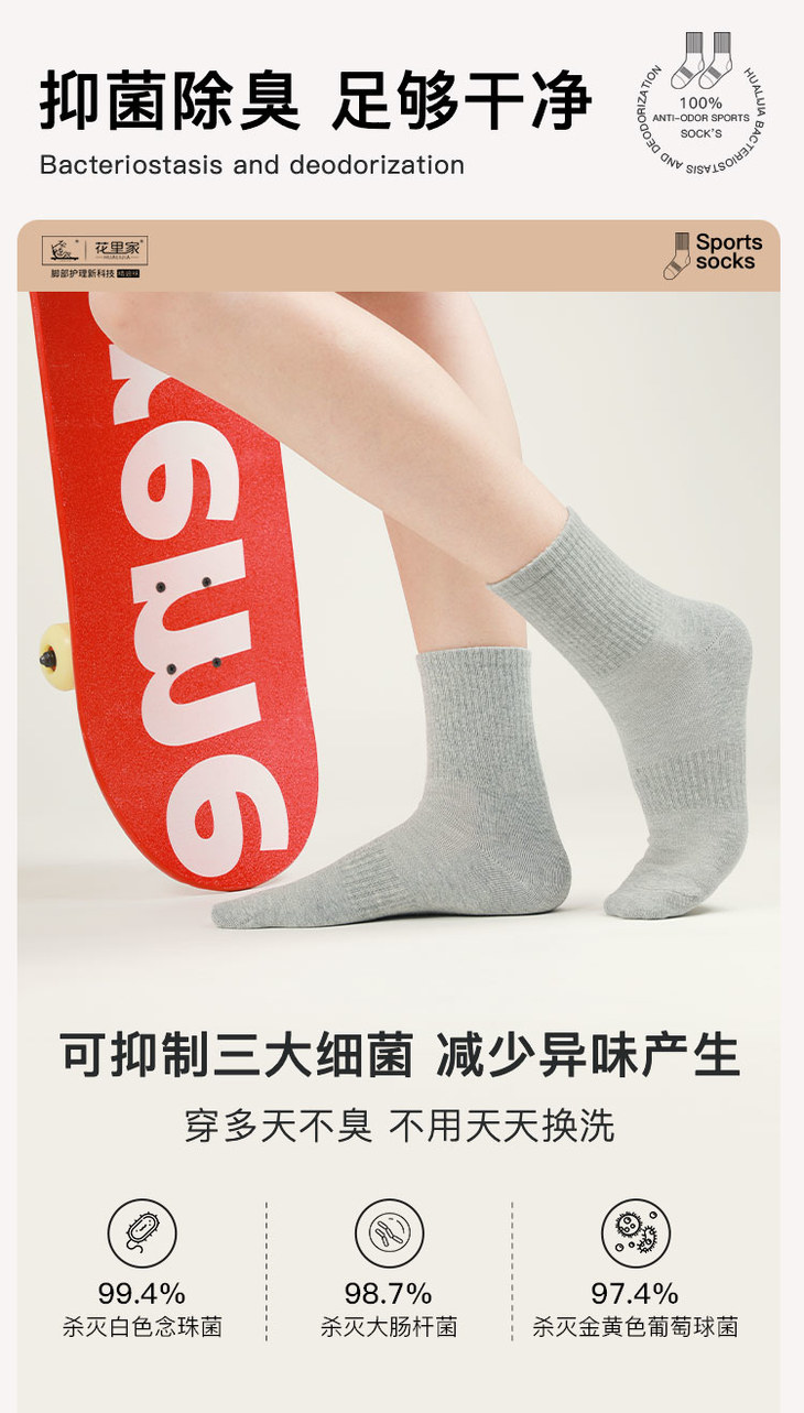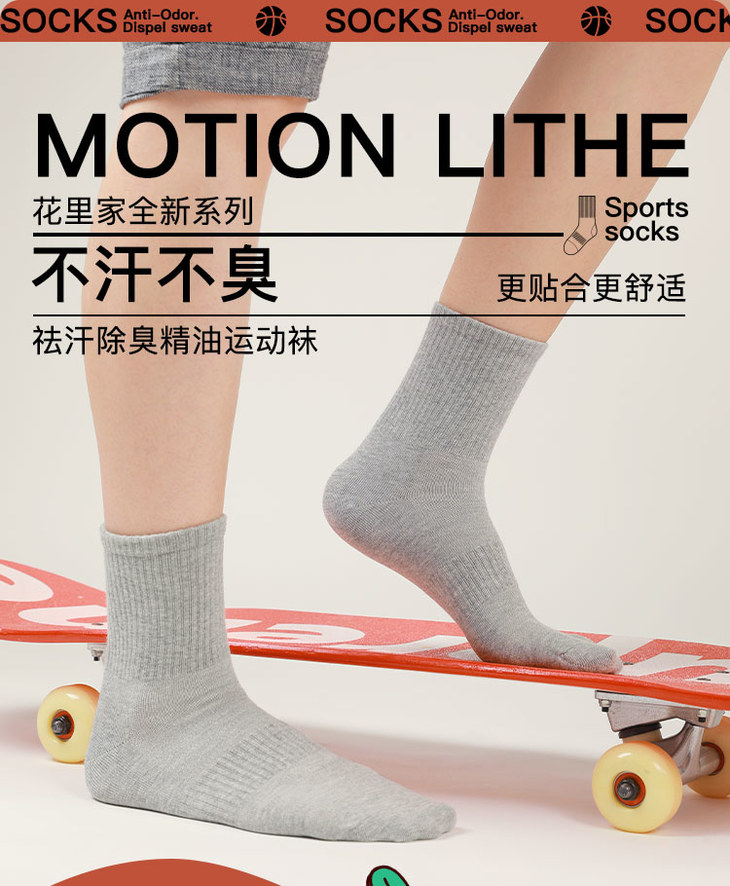 花里家防臭精油纯棉运动袜WZ-05