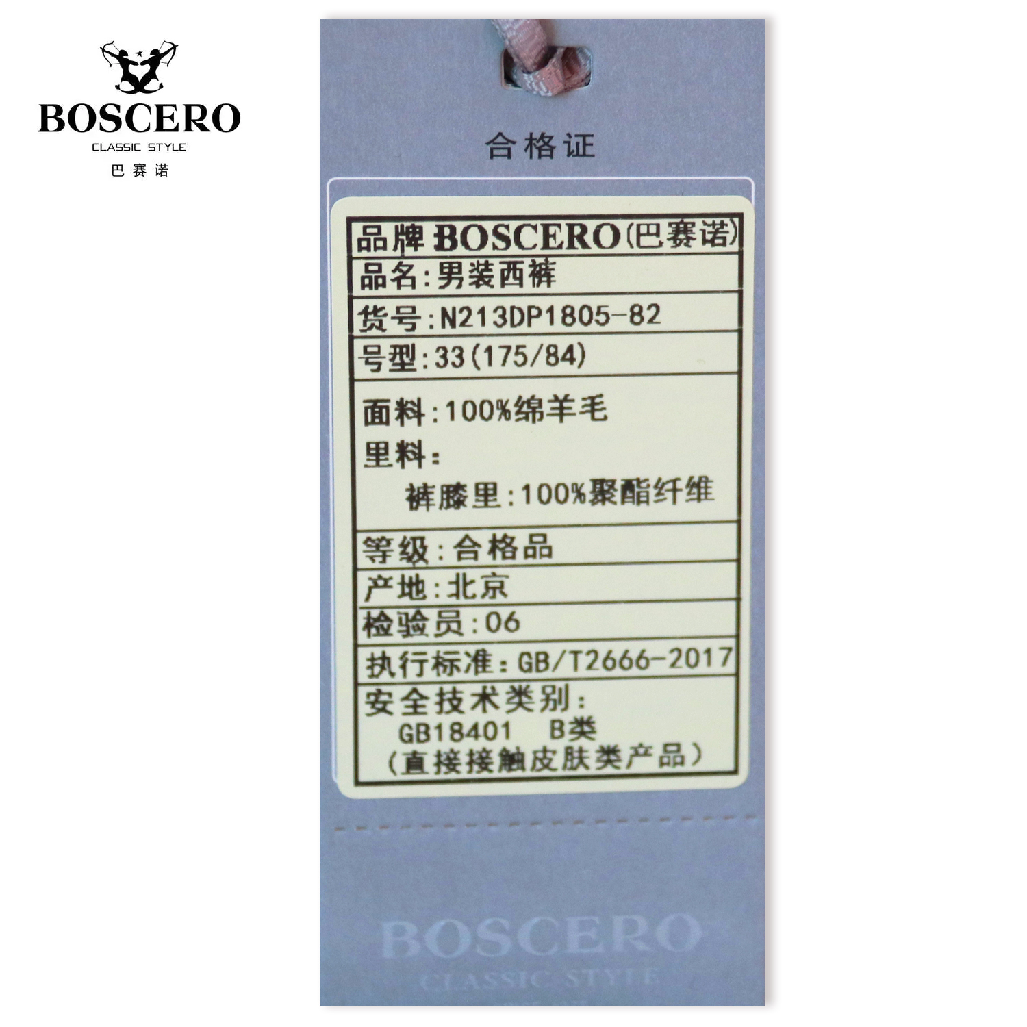 巴赛诺套西裤子N213DP1805-82