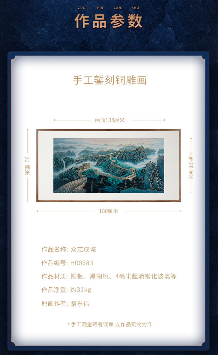 铜师傅 手工錾刻 铜雕画《众志成城》装饰画 玄关画 背景画 壁画