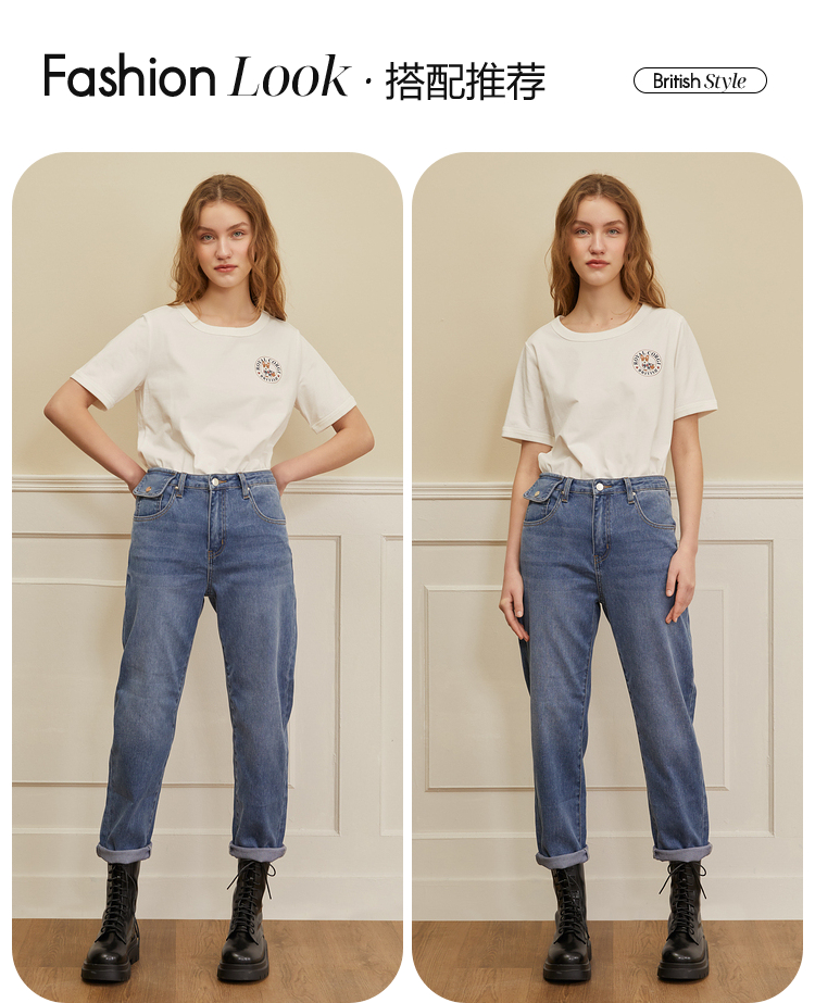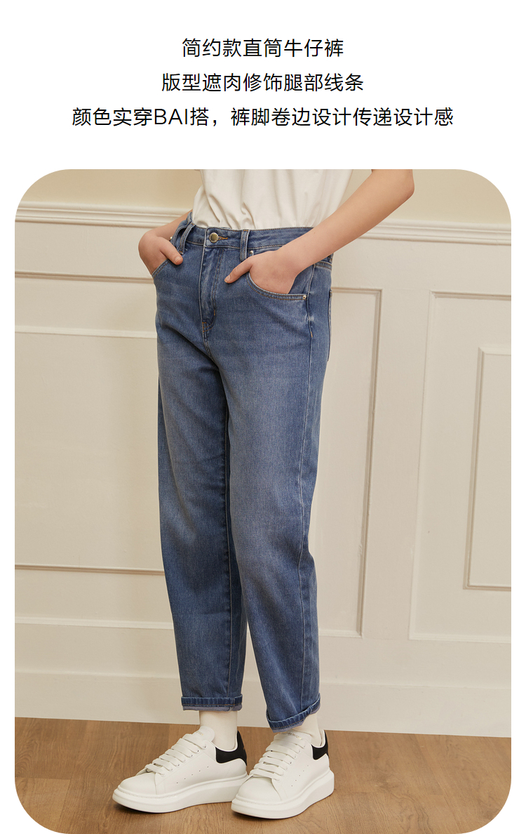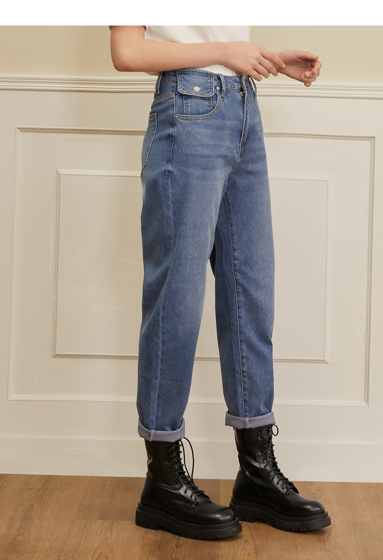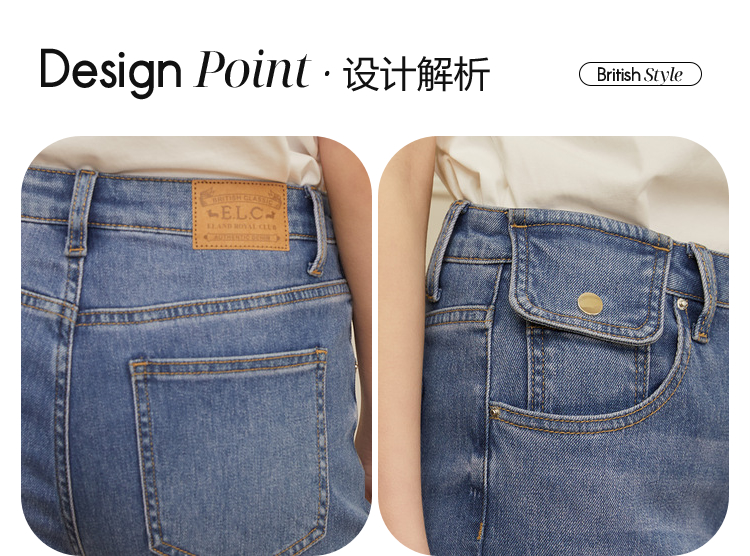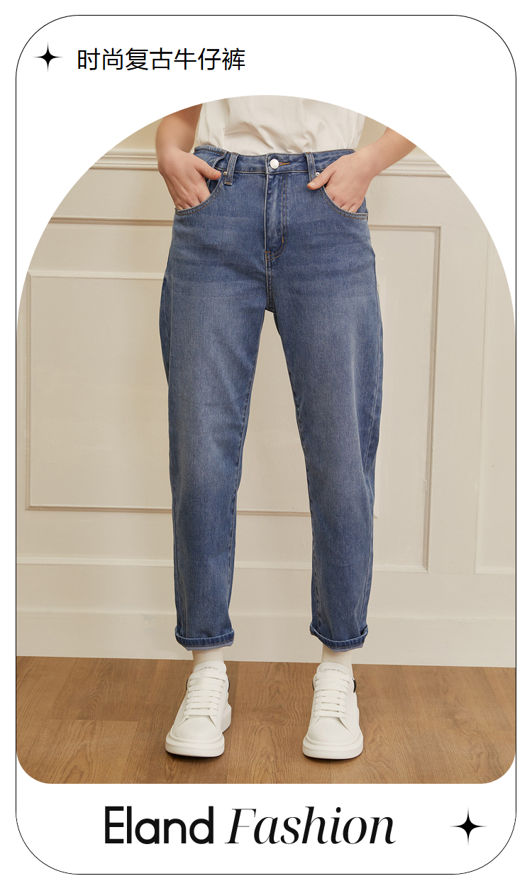 ELAND衣恋2022年春季新款时尚复古设计感高腰宽松显瘦牛仔裤女EETJC23H2C
