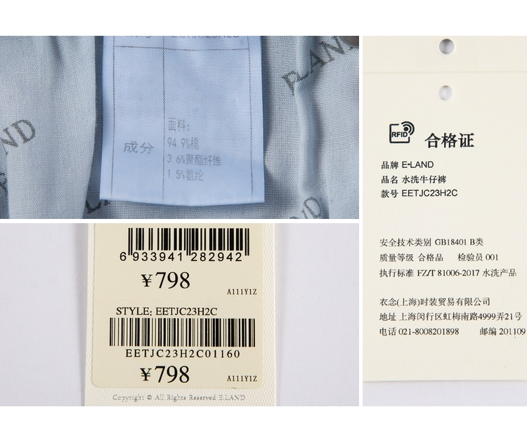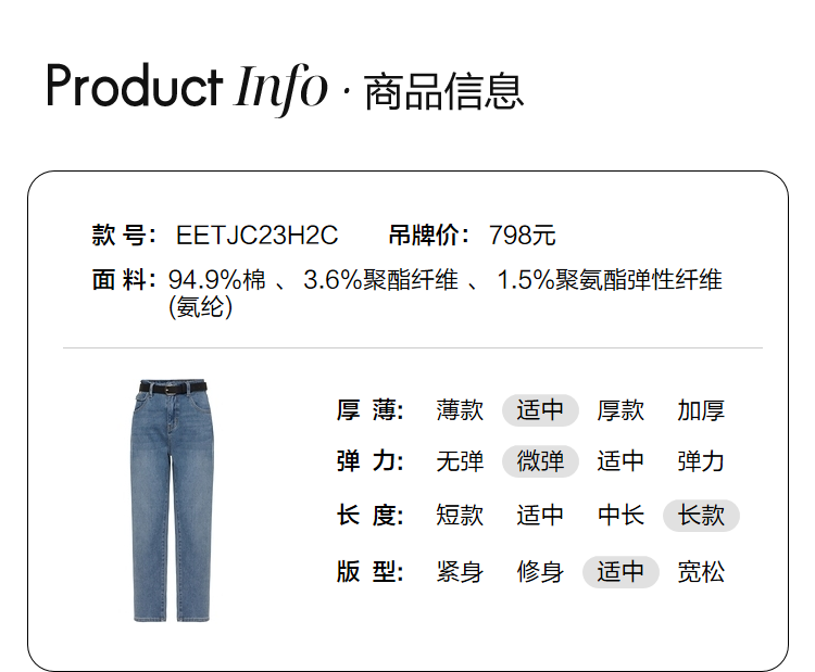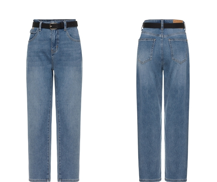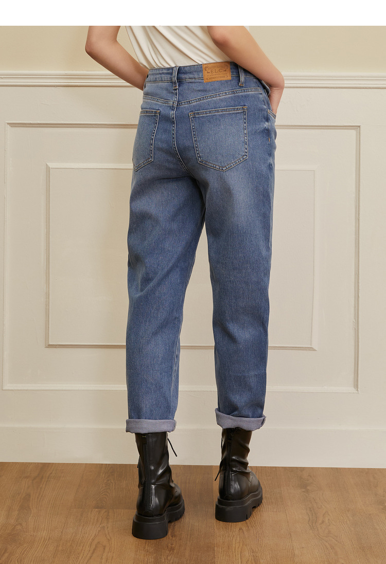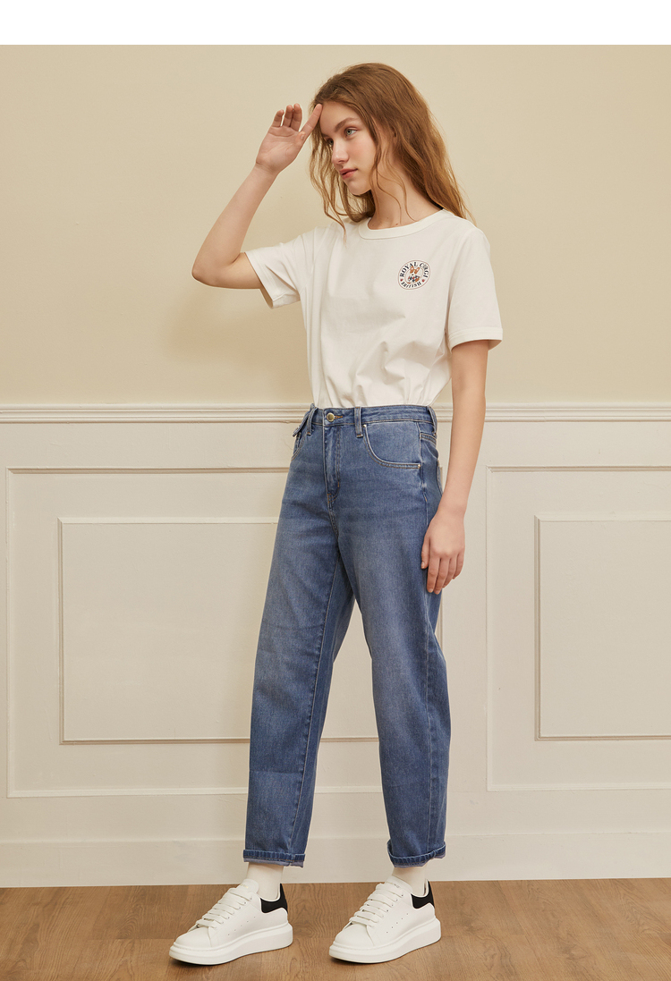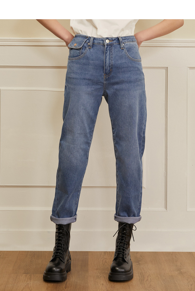 ELAND衣恋2022年春季新款时尚复古设计感高腰宽松显瘦牛仔裤女EETJC23H2C