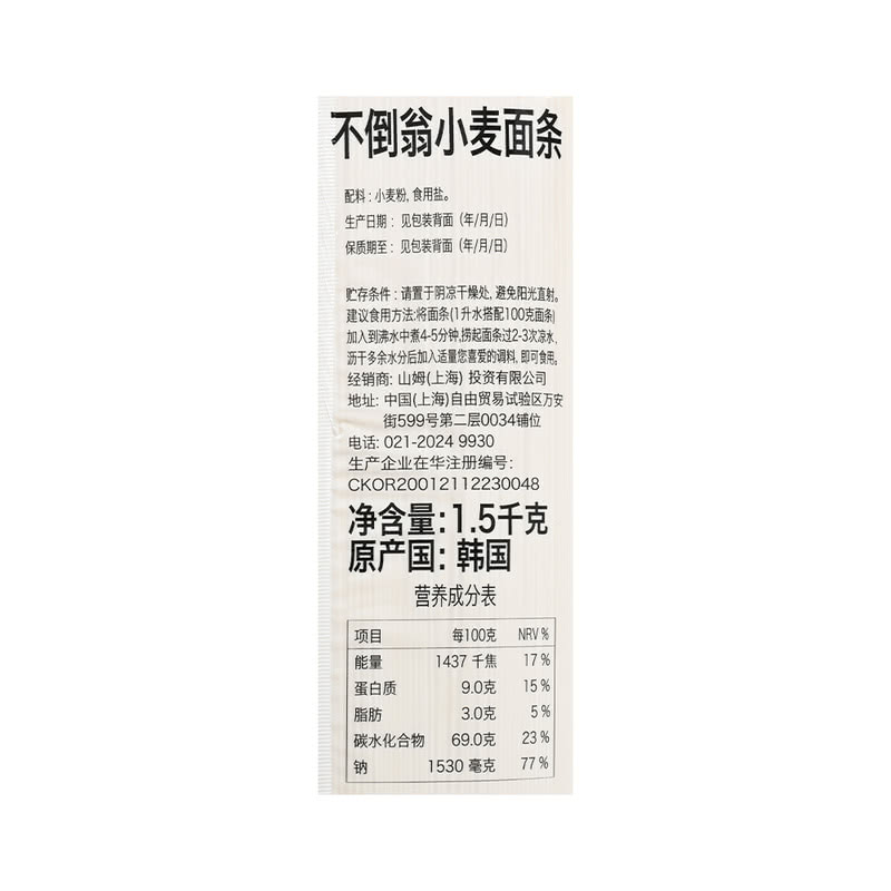 不倒翁韩国进口小麦面条1.5kg 山姆会员店商品非商品原因不支持退款