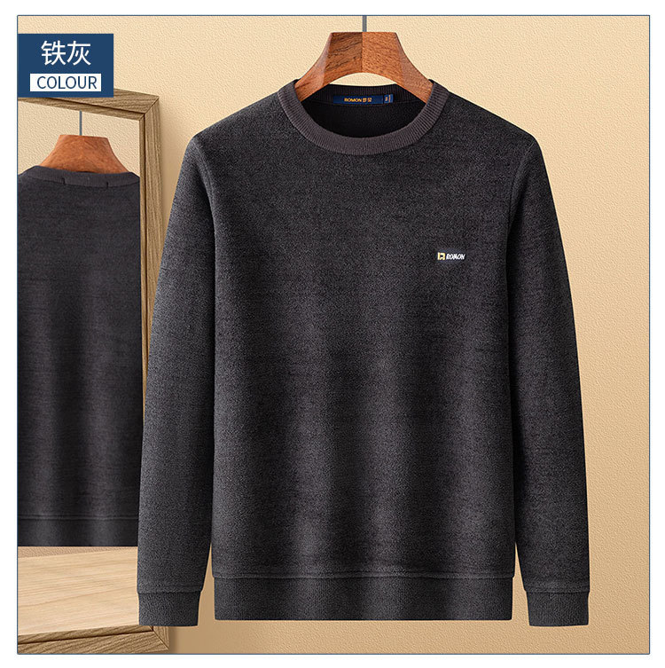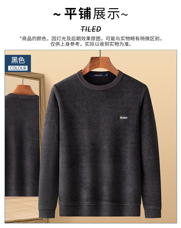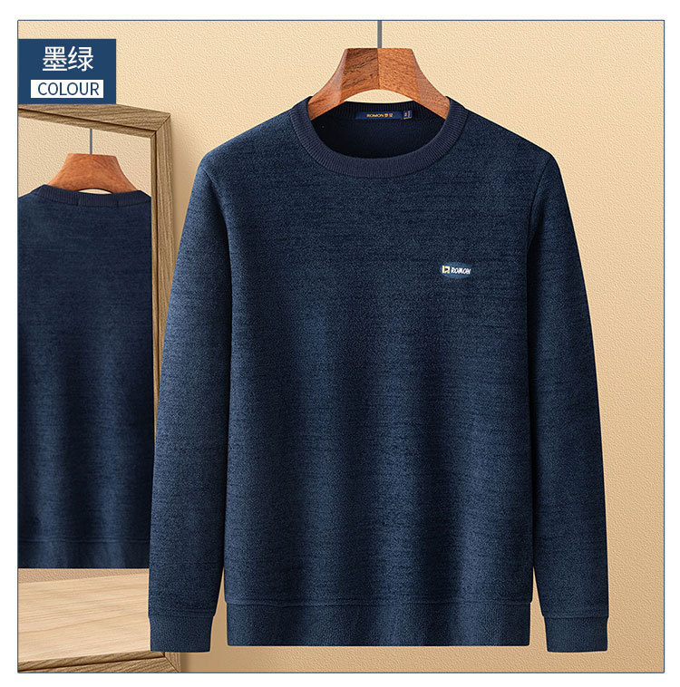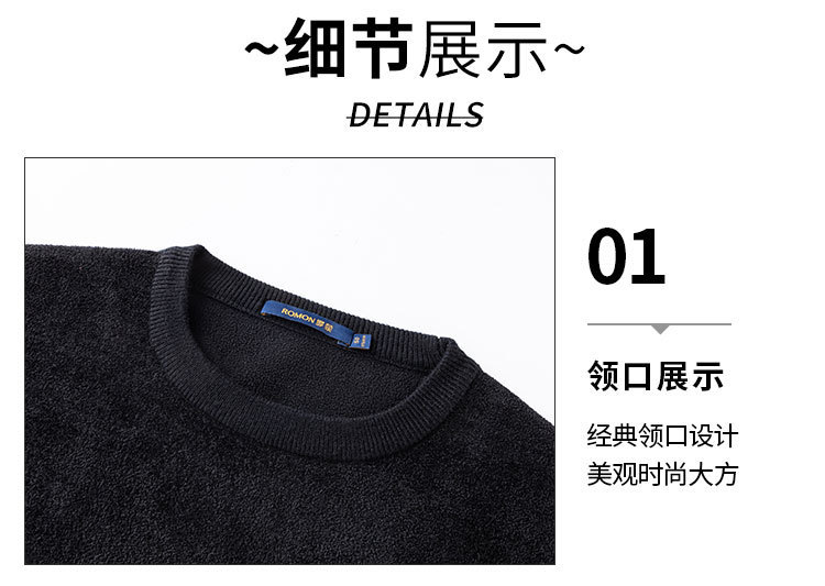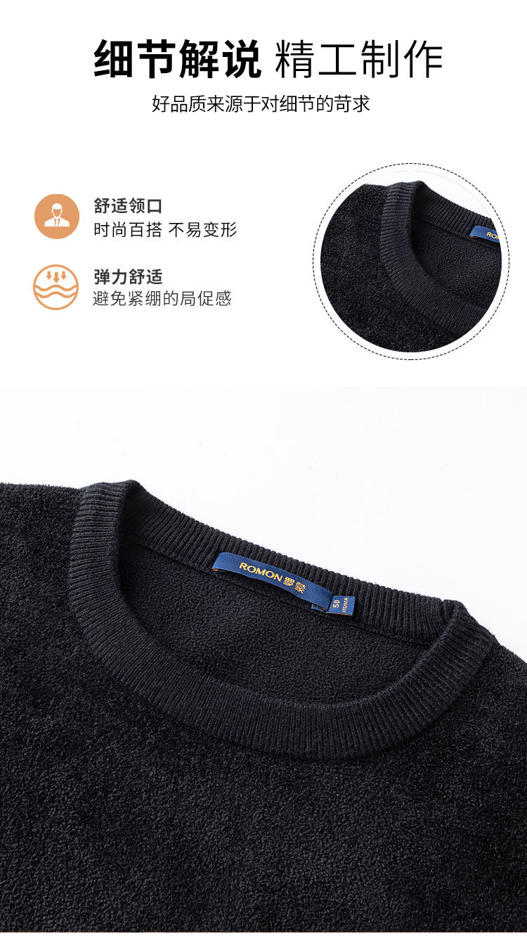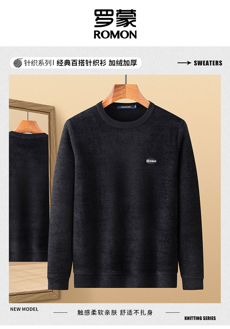 【加绒加厚】罗蒙男士冬季双面绒绣花加绒毛衣男保暖针织衫男士毛衣毛衫男