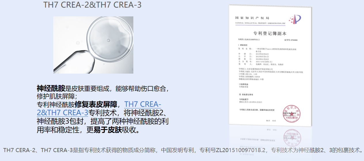 这个三部曲手膜蕴含专利技术获得的物质成分TH7 CERA-A, TH7 CERA-3,并添加5重透明质酸钠,沁润保湿,柔润修护,加入积雪草提取物和烟酰胺,满满的精华质感;
