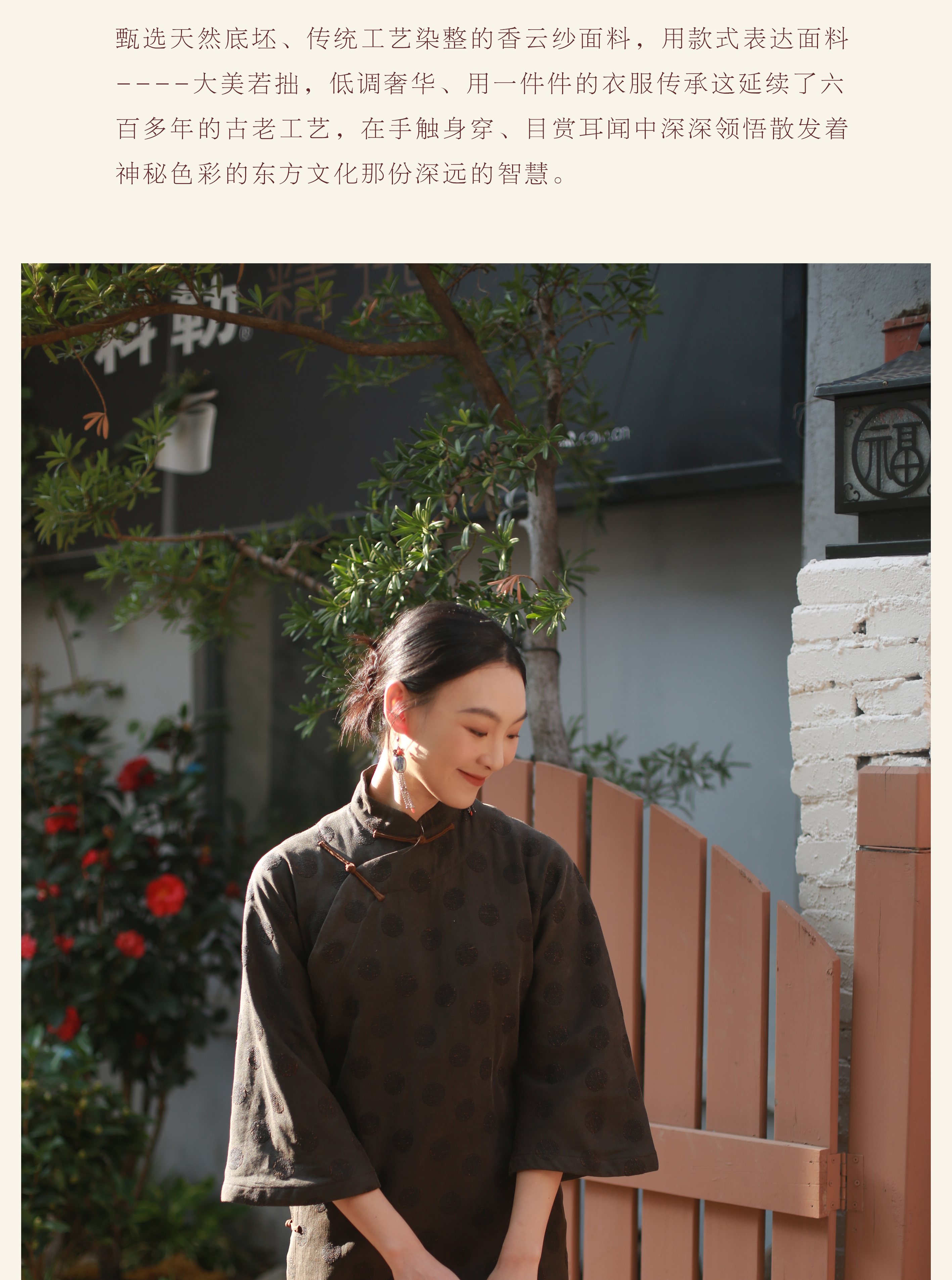 漫物记香云纱柞蚕丝喇叭袖连肩旗袍XYS-W030