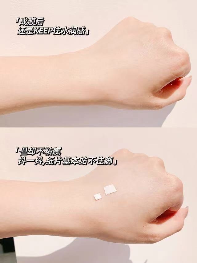 成膜后水润不粘腻,皮肤摸起来还软软弹弹。
