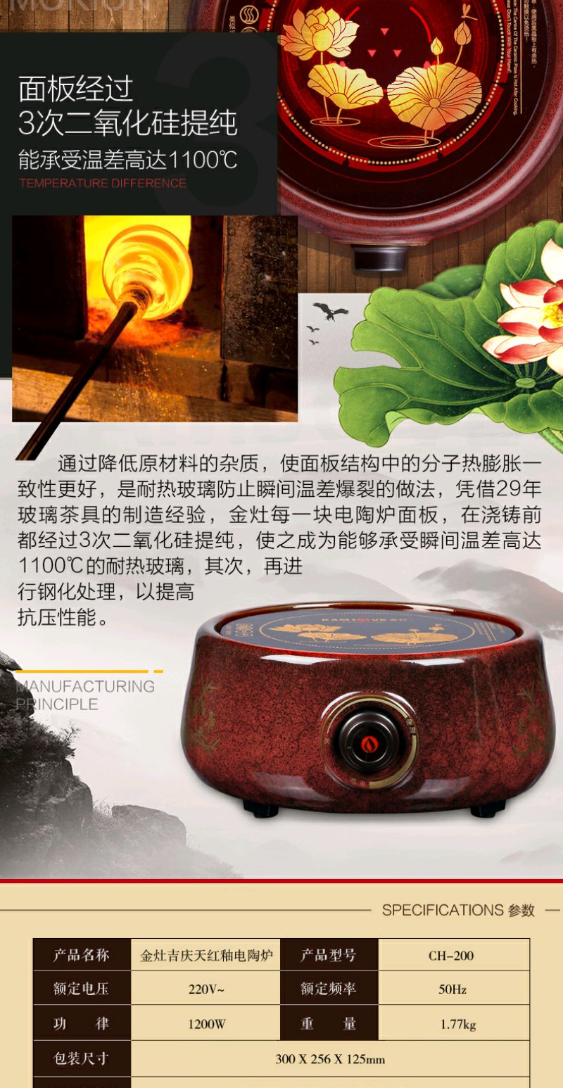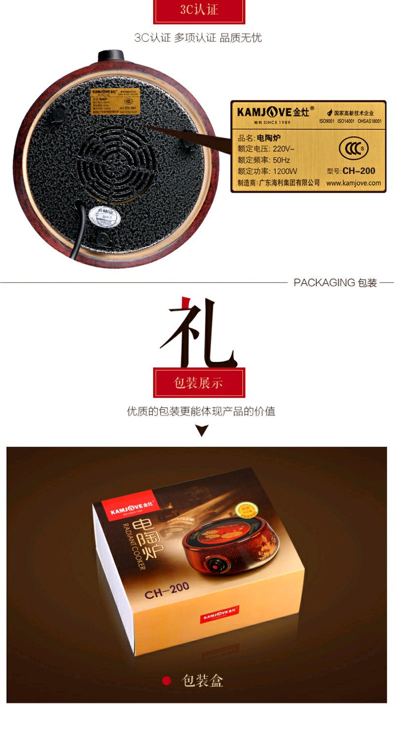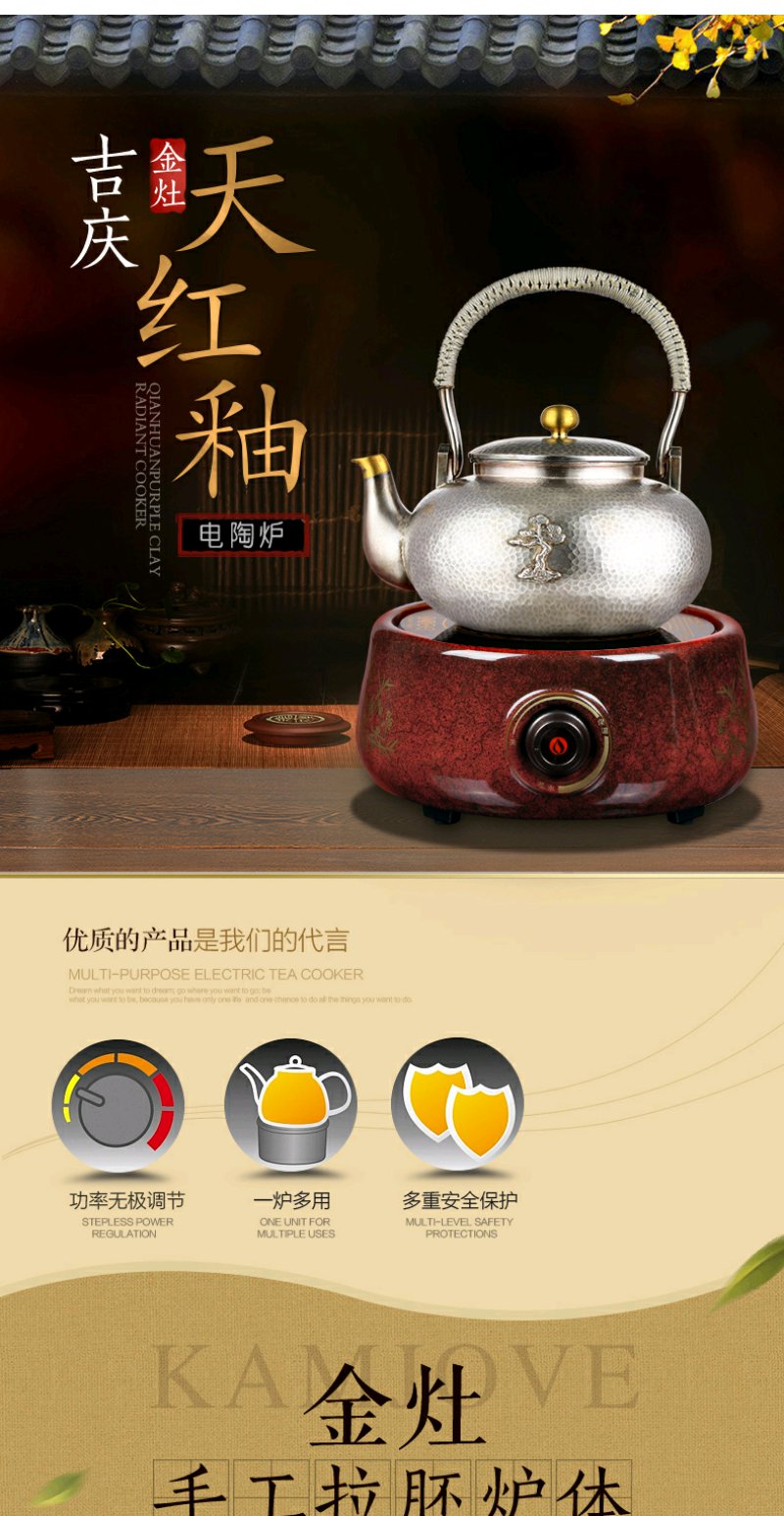金灶 CH200 电陶炉天红釉大功率电陶炉家用煮茶炉陶然炉玻璃壶适用