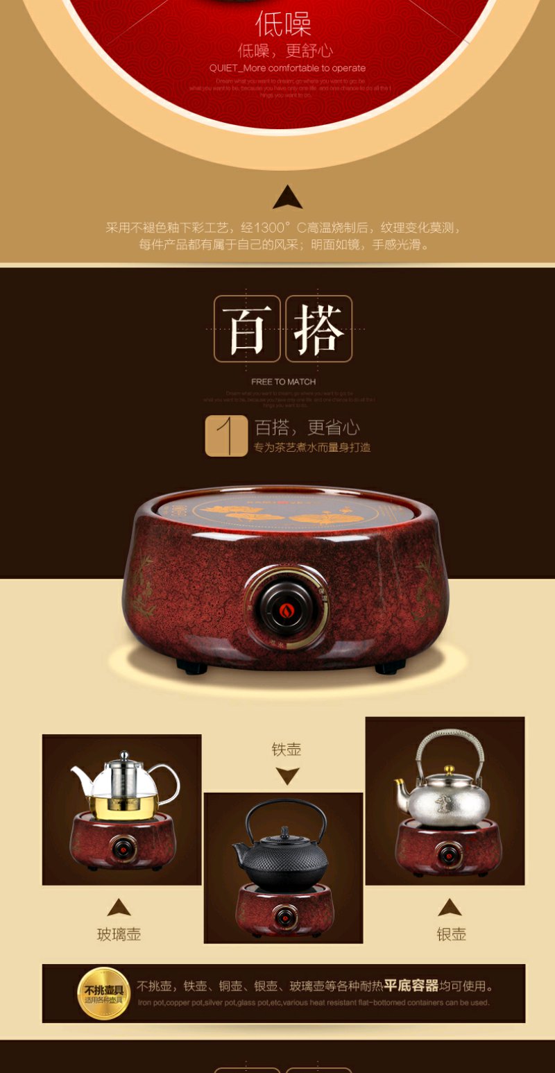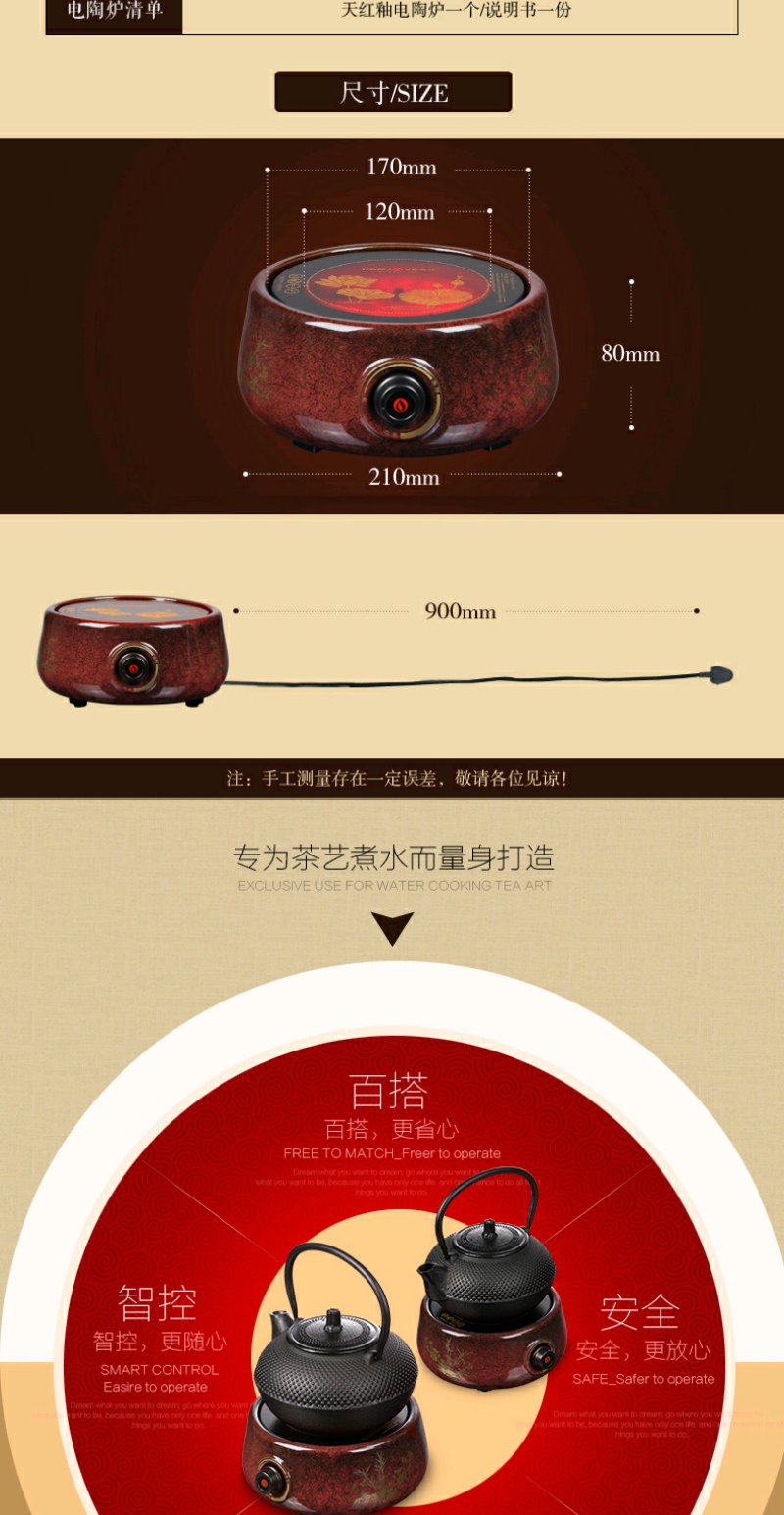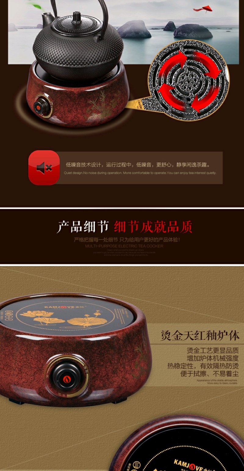 金灶 CH200 电陶炉天红釉大功率电陶炉家用煮茶炉陶然炉玻璃壶适用